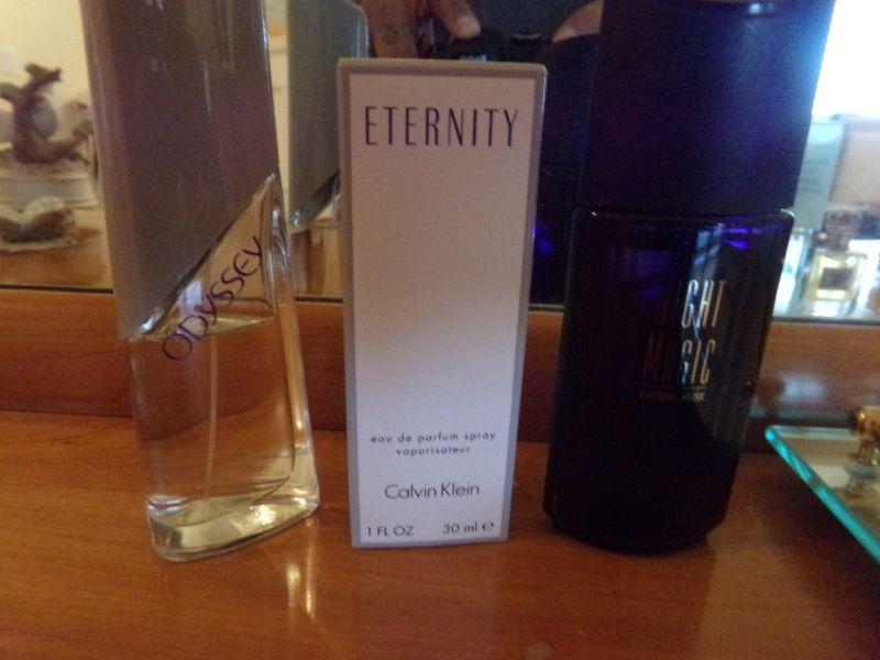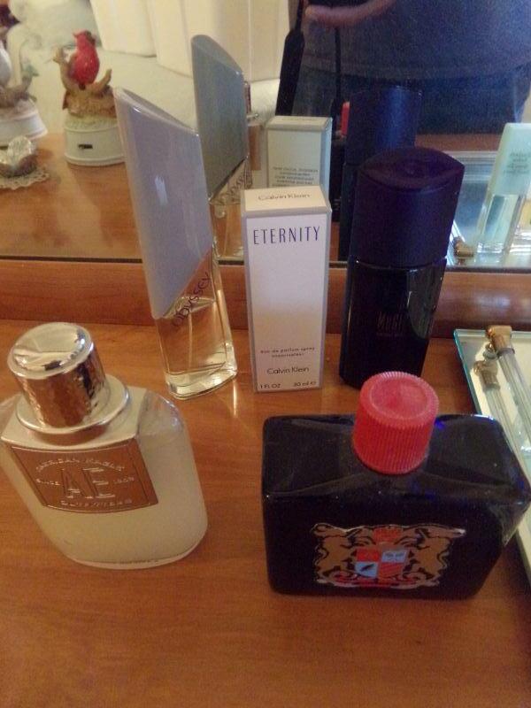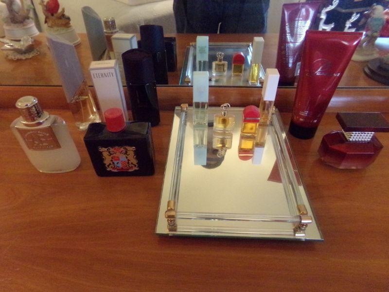 ETERNITY, ODYSSEY, AMERICAN EAGLE AND SEVERAL MORE PERFUMES PLUS MIRRORED TRAY ARE INCLUDED IN THIS LOT