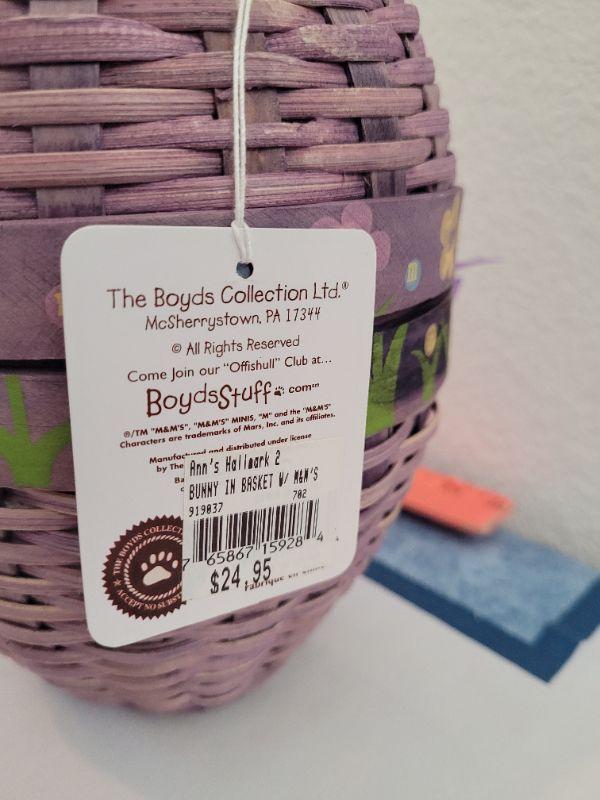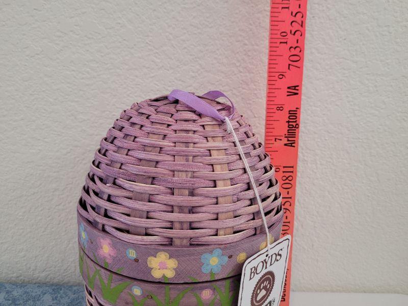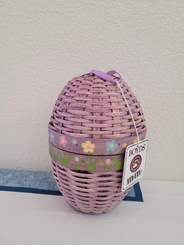 Lot 51: New Boyd's M&M Bear in Purple Wicker Egg