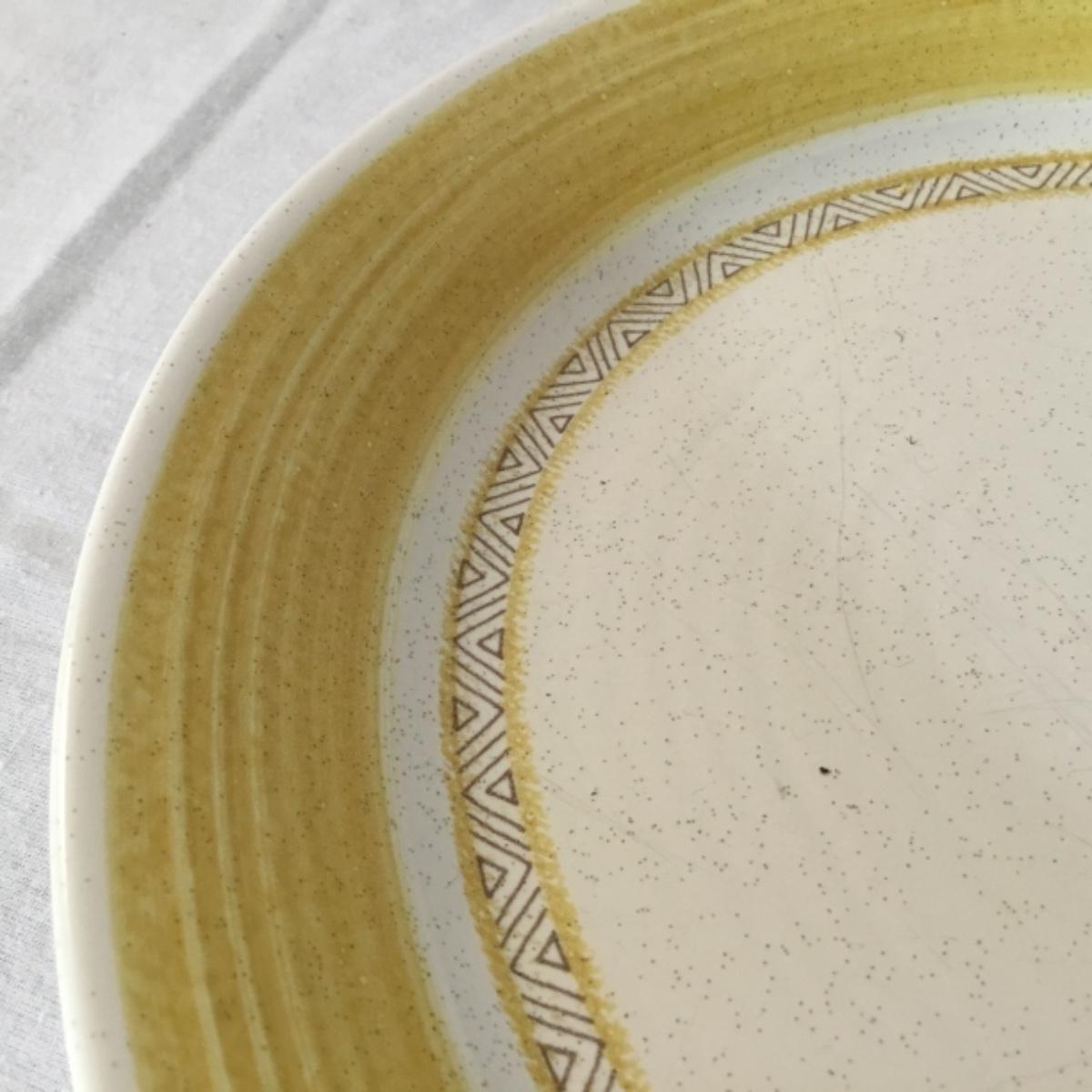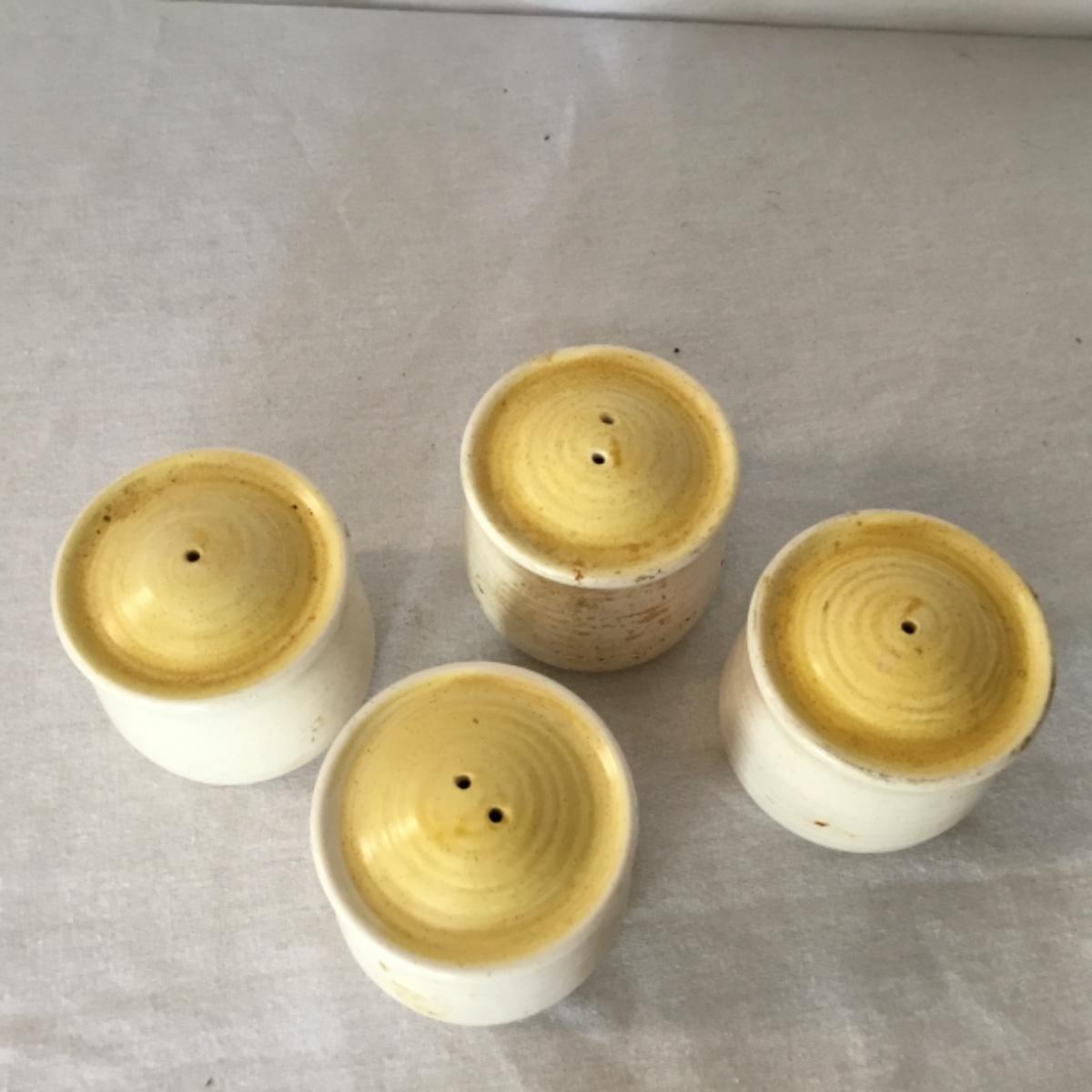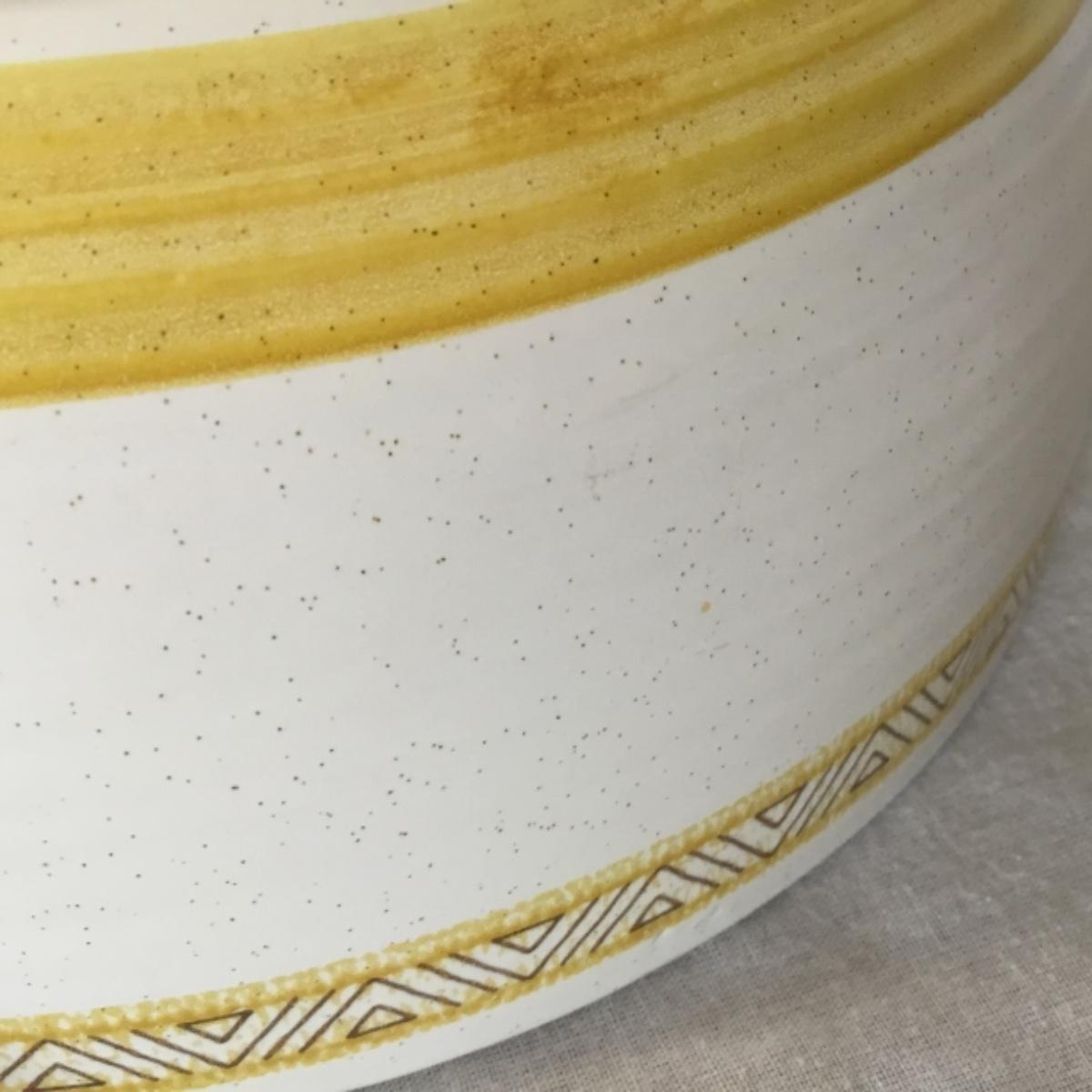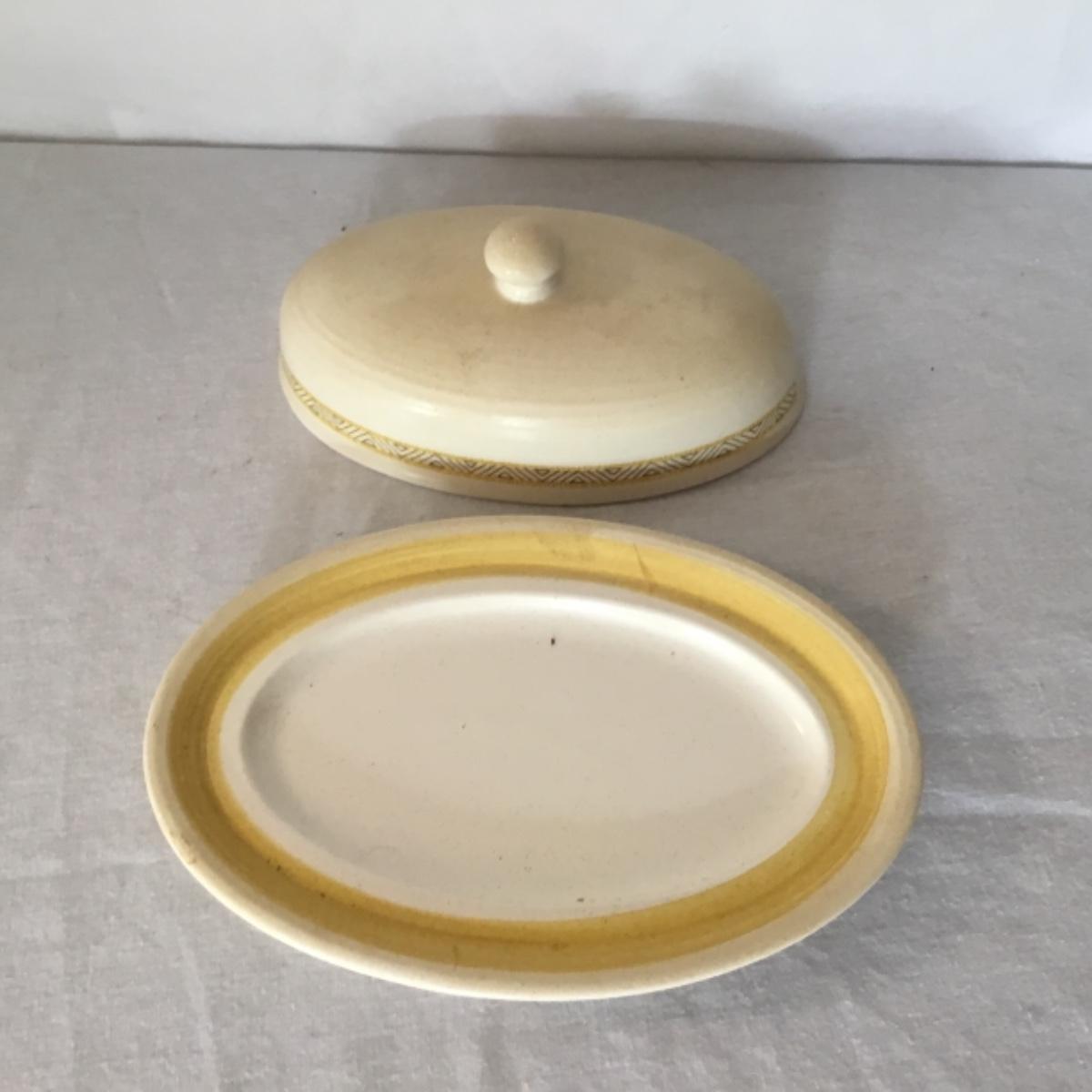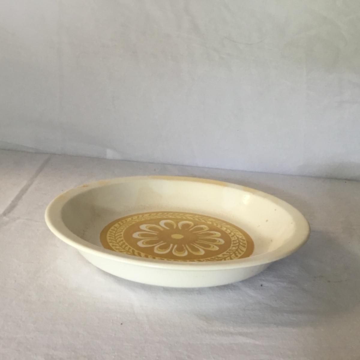 Adorable oven-safe Franciscan Earthware set will brighten and complete any kitchen! This lot includes 1 large bowl with a lid and handles, a diameter of 9.5", 2 smaller bowls with lids, and a butter dish with a lid. Bowls included in the lot are 1 large serving bowl, 4 large salad bowls, 3 medium/large bowls, 9 traditional cereal bowls with a diameter of 6.5" and 1 additional small bow. Plates in the lot include 2 serving platters that are 14" long, 15 dinner plates, 2 deeper serving plates that are NOT Franciscan but has similar design, 13 salad plates, and 24 teacup plates with diameters of 6.5". Lot includes tea/coffe items such as an 8.5" tall pitcher with handle and lid, 2 coffee mugs, and 17 teacups that have diameters of 4" and stand 3" tall. More pitchers without lids are included in this lot; 2 large that stands 8" tall, 1 medium, and 2 small pitchers. The last serving and hosting items in the lot are 2 chip & dip platters, 2 gravy bowls, and 4 salt and pepper shakers. The set is in fairly good condition considering age and use. See photos! Local pickup only.