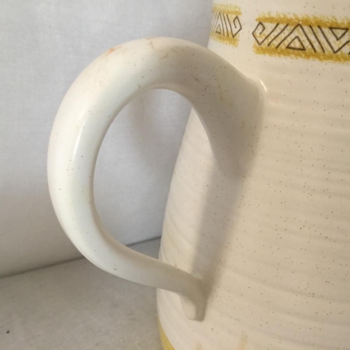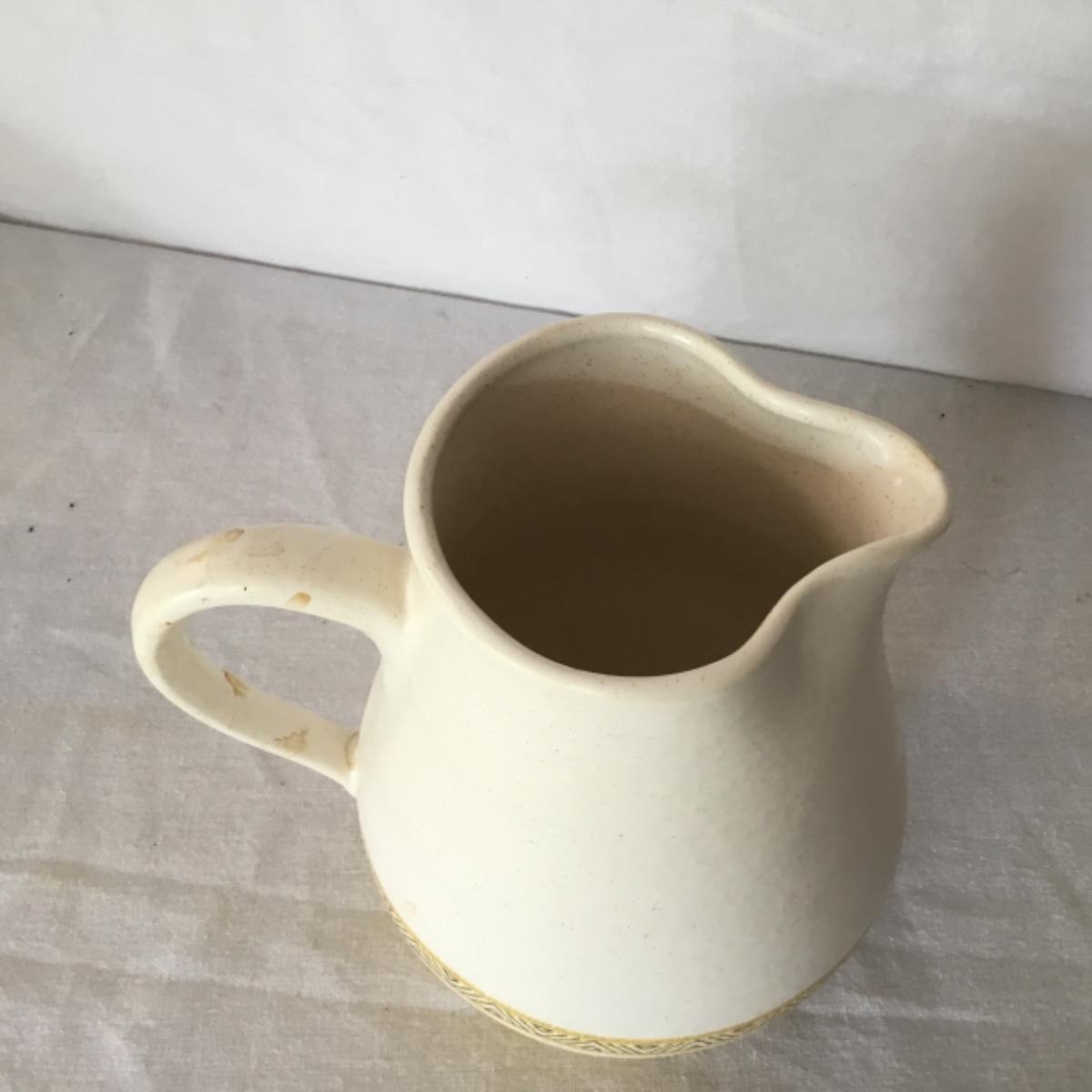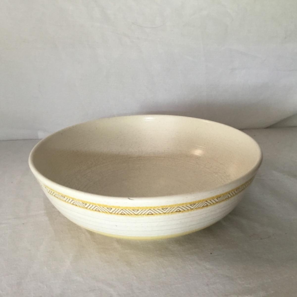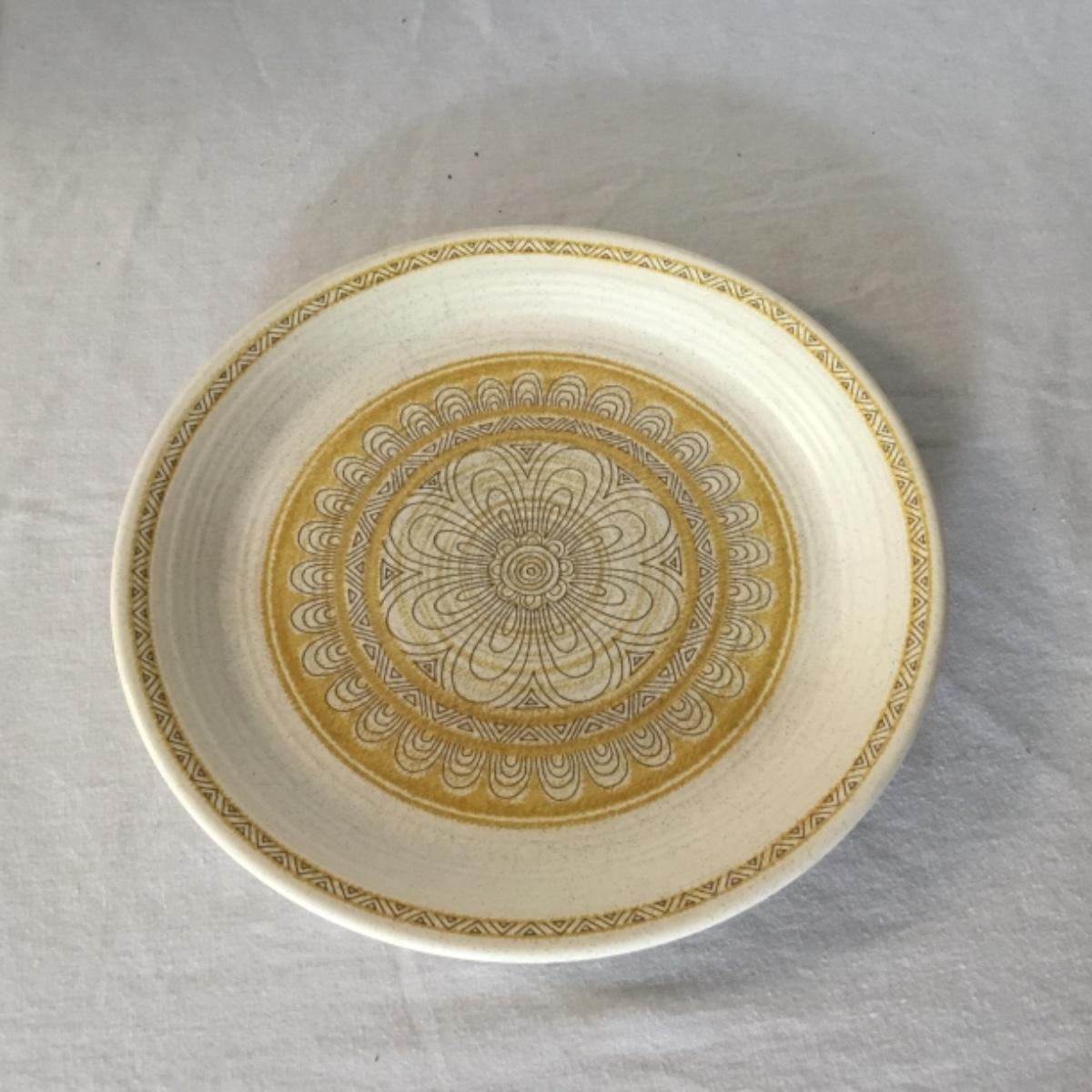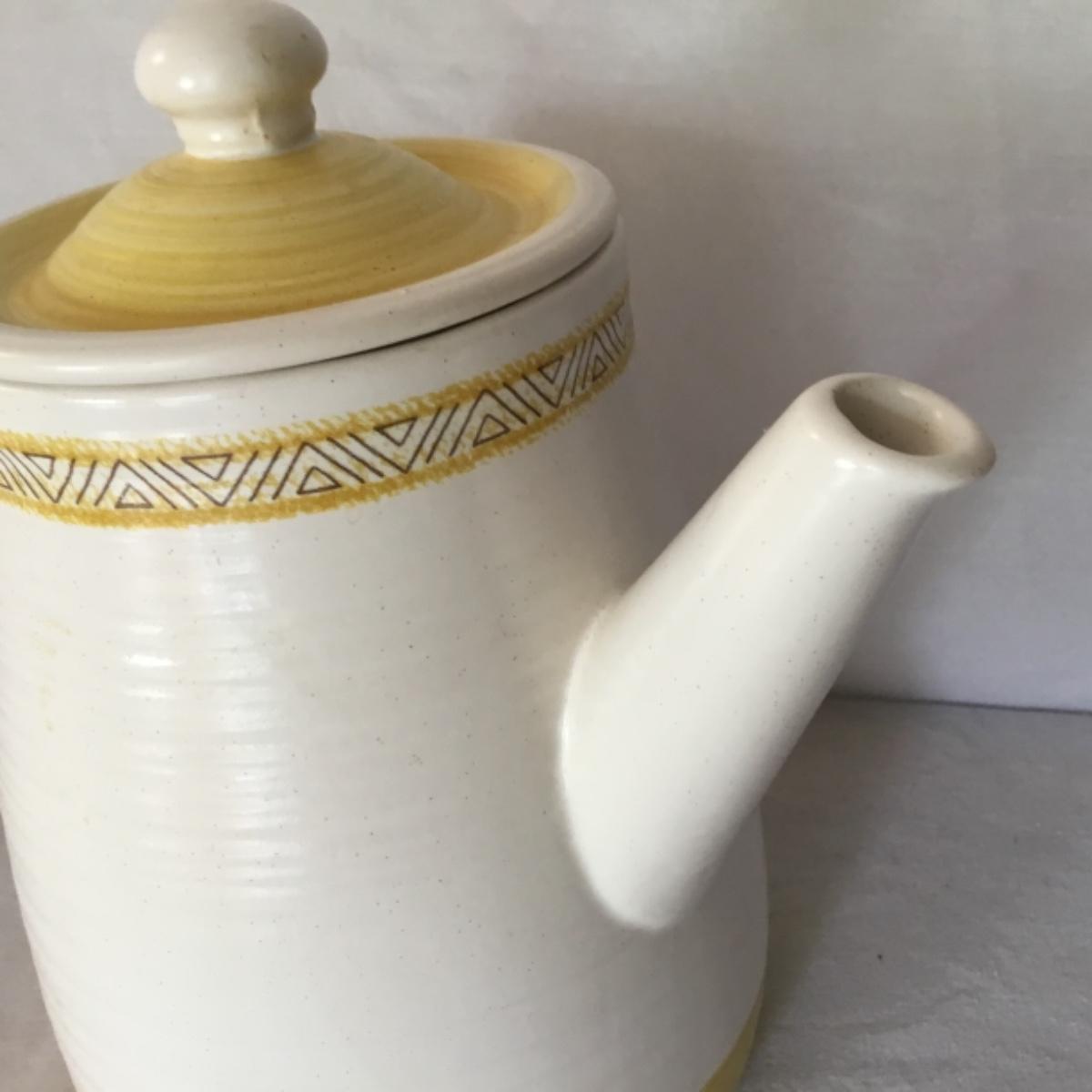 Adorable oven-safe Franciscan Earthware set will brighten and complete any kitchen! This lot includes 1 large bowl with a lid and handles, a diameter of 9.5", 2 smaller bowls with lids, and a butter dish with a lid. Bowls included in the lot are 1 large serving bowl, 4 large salad bowls, 3 medium/large bowls, 9 traditional cereal bowls with a diameter of 6.5" and 1 additional small bow. Plates in the lot include 2 serving platters that are 14" long, 15 dinner plates, 2 deeper serving plates that are NOT Franciscan but has similar design, 13 salad plates, and 24 teacup plates with diameters of 6.5". Lot includes tea/coffe items such as an 8.5" tall pitcher with handle and lid, 2 coffee mugs, and 17 teacups that have diameters of 4" and stand 3" tall. More pitchers without lids are included in this lot; 2 large that stands 8" tall, 1 medium, and 2 small pitchers. The last serving and hosting items in the lot are 2 chip & dip platters, 2 gravy bowls, and 4 salt and pepper shakers. The set is in fairly good condition considering age and use. See photos! Local pickup only.