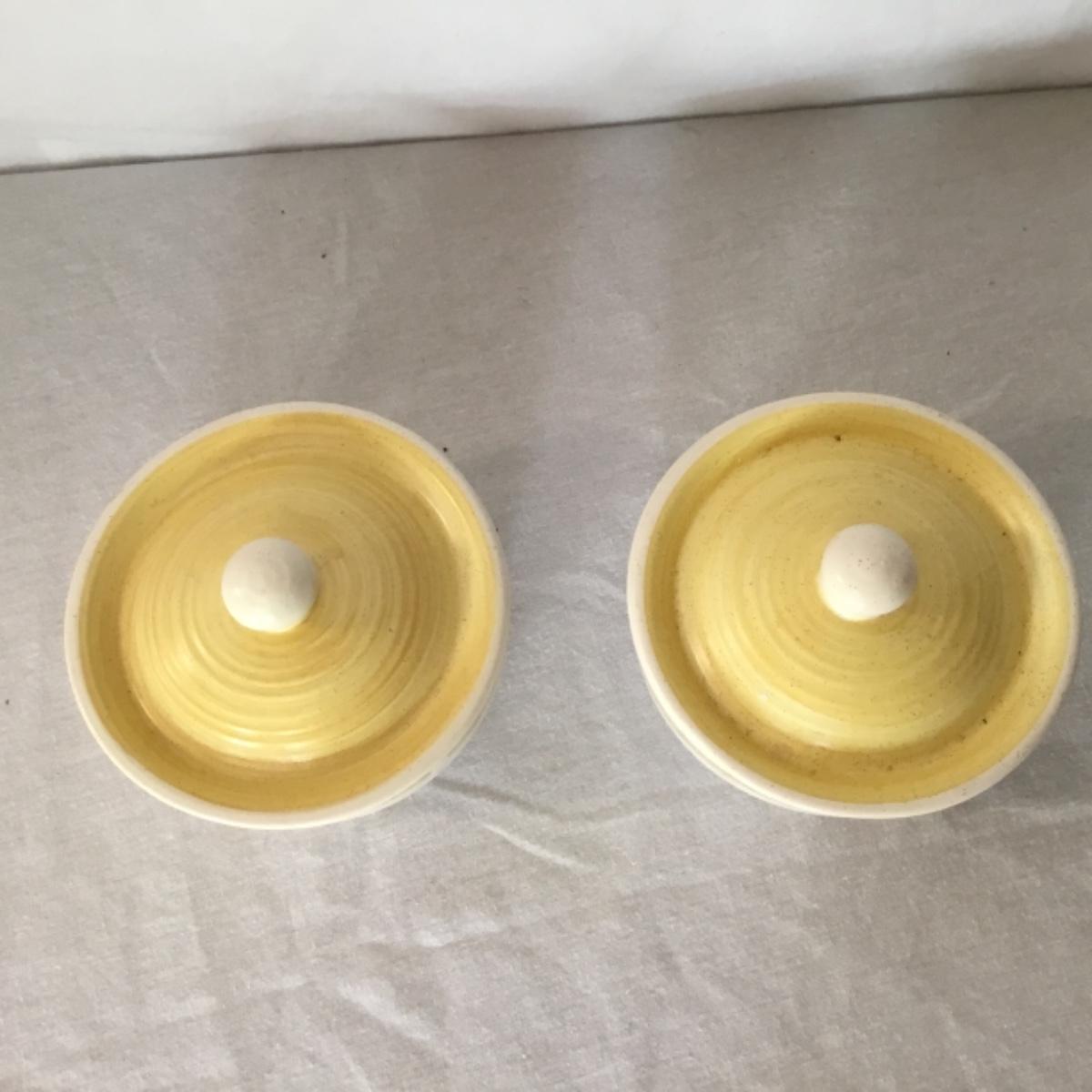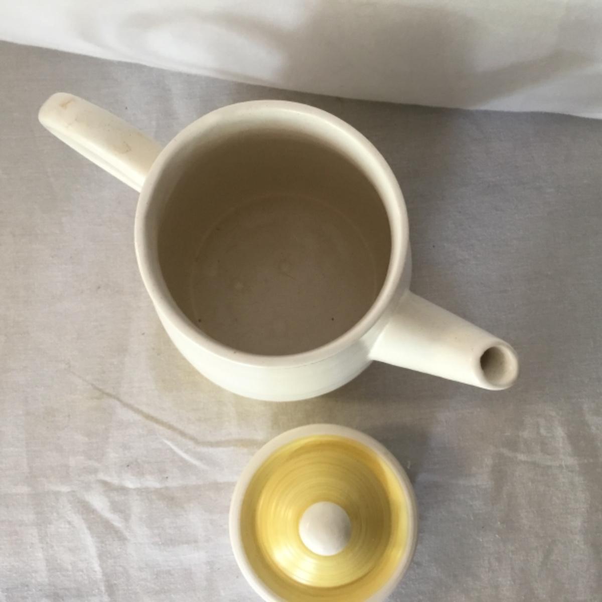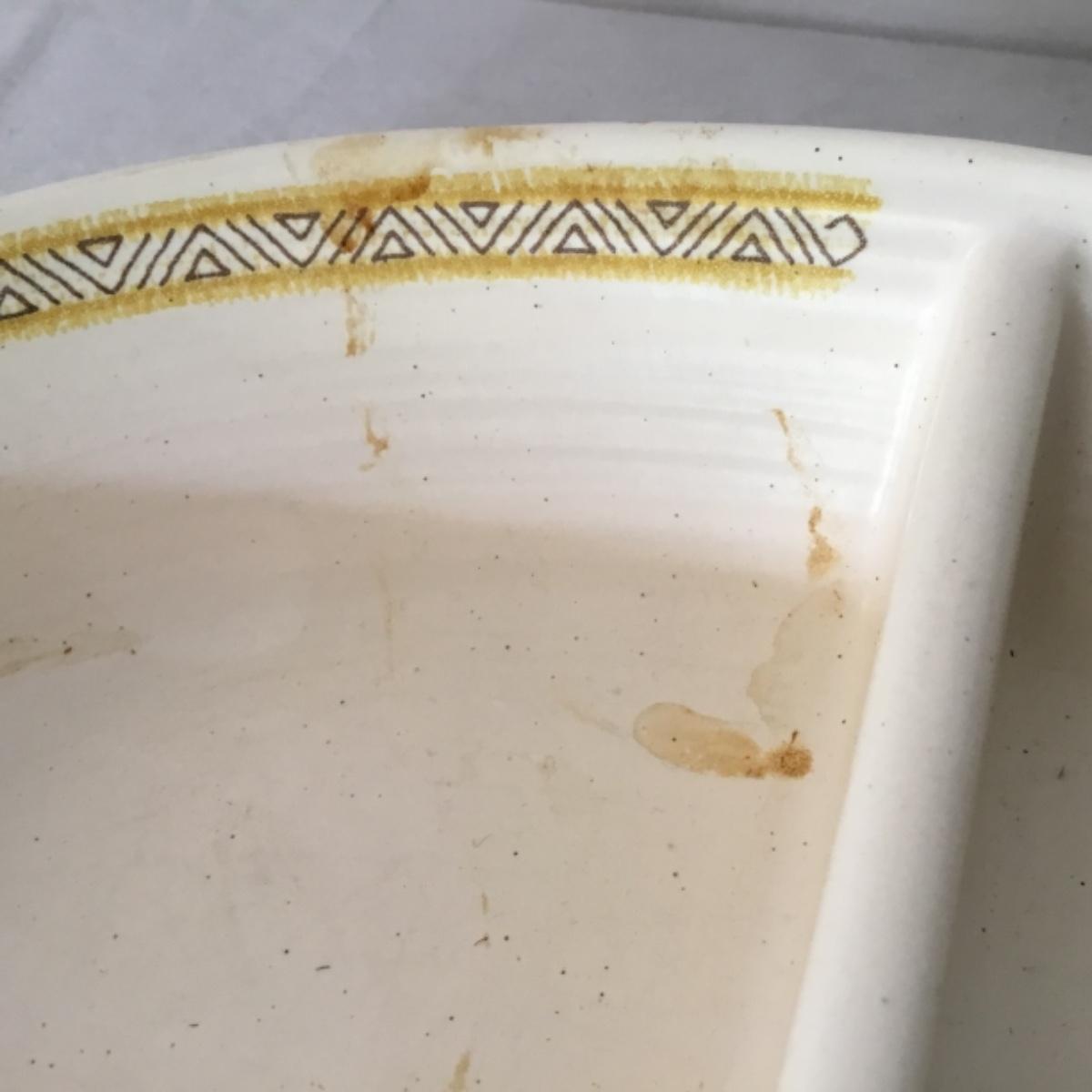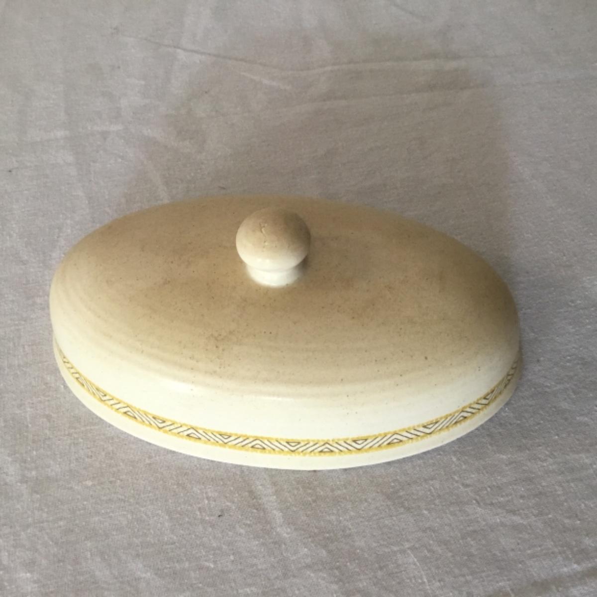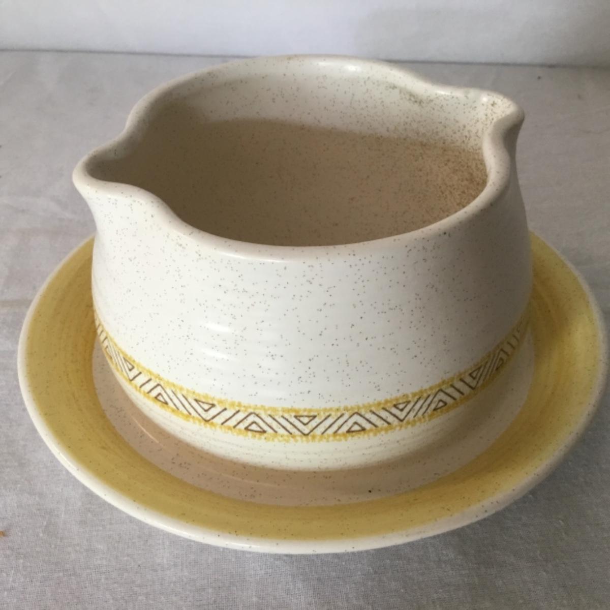 Adorable oven-safe Franciscan Earthware set will brighten and complete any kitchen! This lot includes 1 large bowl with a lid and handles, a diameter of 9.5", 2 smaller bowls with lids, and a butter dish with a lid. Bowls included in the lot are 1 large serving bowl, 4 large salad bowls, 3 medium/large bowls, 9 traditional cereal bowls with a diameter of 6.5" and 1 additional small bow. Plates in the lot include 2 serving platters that are 14" long, 15 dinner plates, 2 deeper serving plates that are NOT Franciscan but has similar design, 13 salad plates, and 24 teacup plates with diameters of 6.5". Lot includes tea/coffe items such as an 8.5" tall pitcher with handle and lid, 2 coffee mugs, and 17 teacups that have diameters of 4" and stand 3" tall. More pitchers without lids are included in this lot; 2 large that stands 8" tall, 1 medium, and 2 small pitchers. The last serving and hosting items in the lot are 2 chip & dip platters, 2 gravy bowls, and 4 salt and pepper shakers. The set is in fairly good condition considering age and use. See photos! Local pickup only.