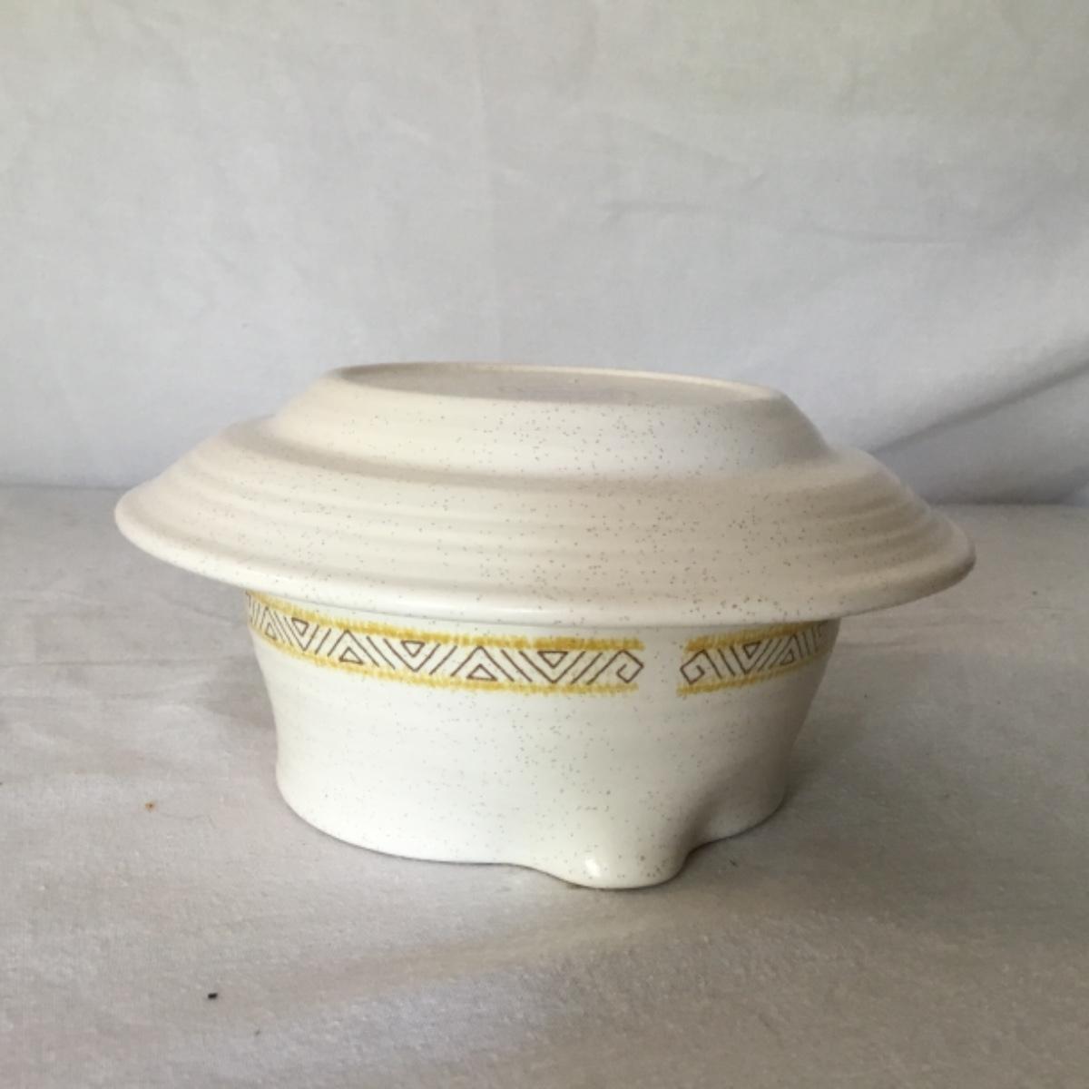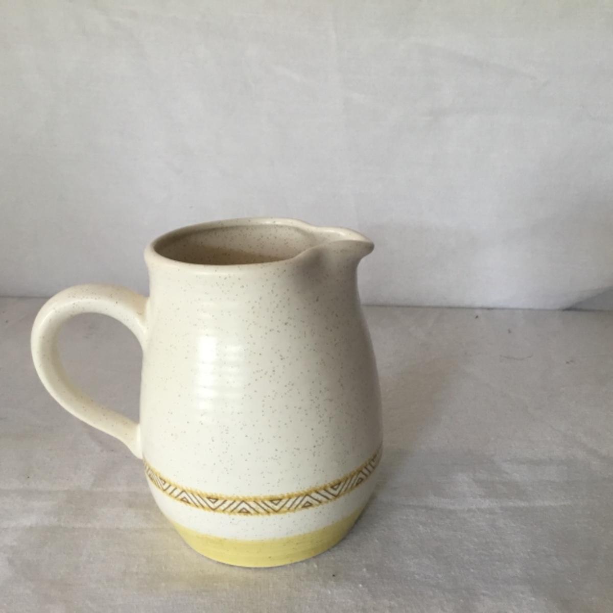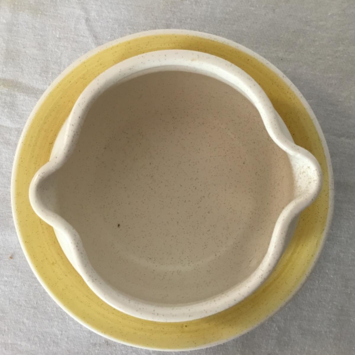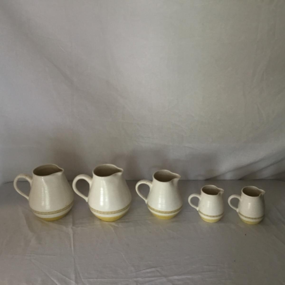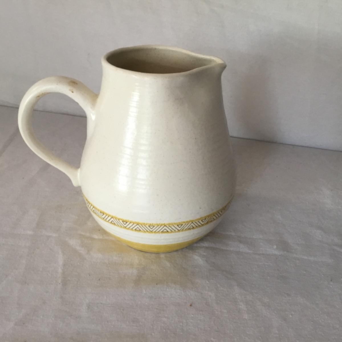 Adorable oven-safe Franciscan Earthware set will brighten and complete any kitchen! This lot includes 1 large bowl with a lid and handles, a diameter of 9.5", 2 smaller bowls with lids, and a butter dish with a lid. Bowls included in the lot are 1 large serving bowl, 4 large salad bowls, 3 medium/large bowls, 9 traditional cereal bowls with a diameter of 6.5" and 1 additional small bow. Plates in the lot include 2 serving platters that are 14" long, 15 dinner plates, 2 deeper serving plates that are NOT Franciscan but has similar design, 13 salad plates, and 24 teacup plates with diameters of 6.5". Lot includes tea/coffe items such as an 8.5" tall pitcher with handle and lid, 2 coffee mugs, and 17 teacups that have diameters of 4" and stand 3" tall. More pitchers without lids are included in this lot; 2 large that stands 8" tall, 1 medium, and 2 small pitchers. The last serving and hosting items in the lot are 2 chip & dip platters, 2 gravy bowls, and 4 salt and pepper shakers. The set is in fairly good condition considering age and use. See photos! Local pickup only.