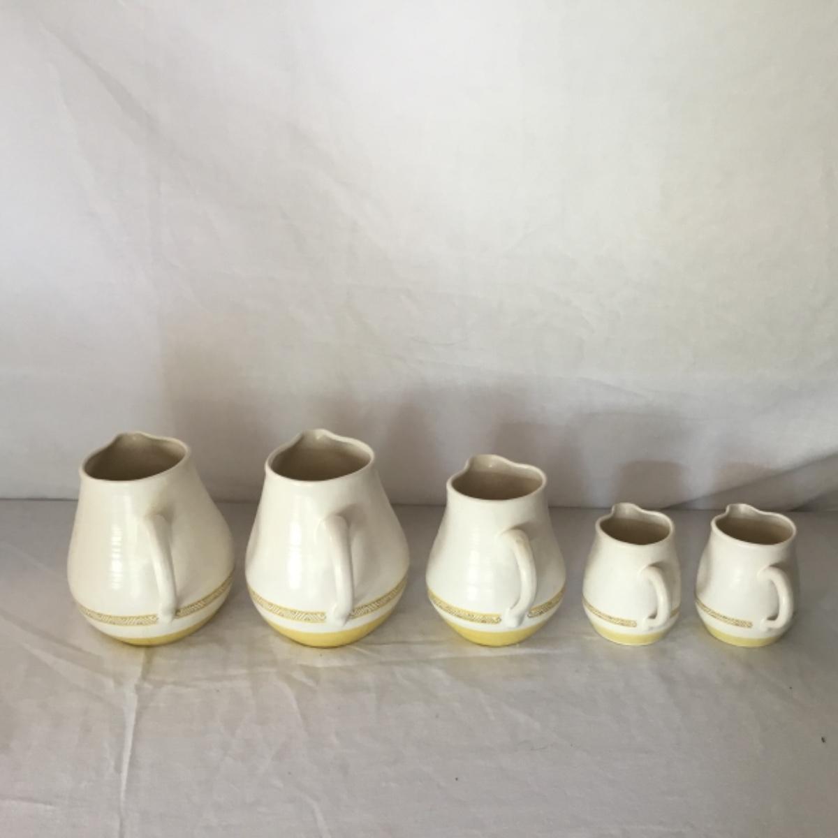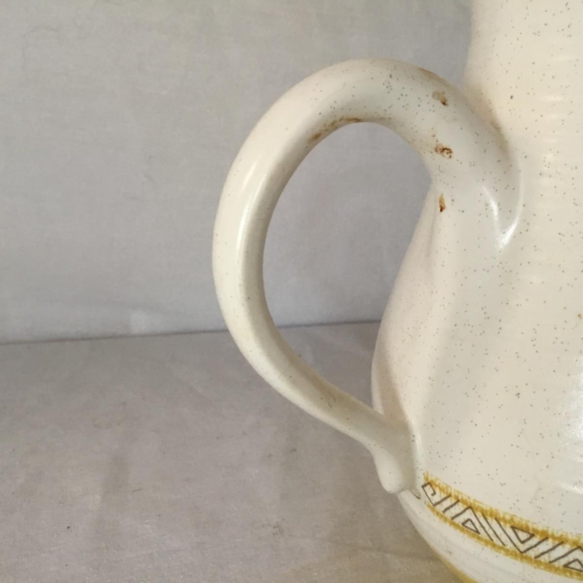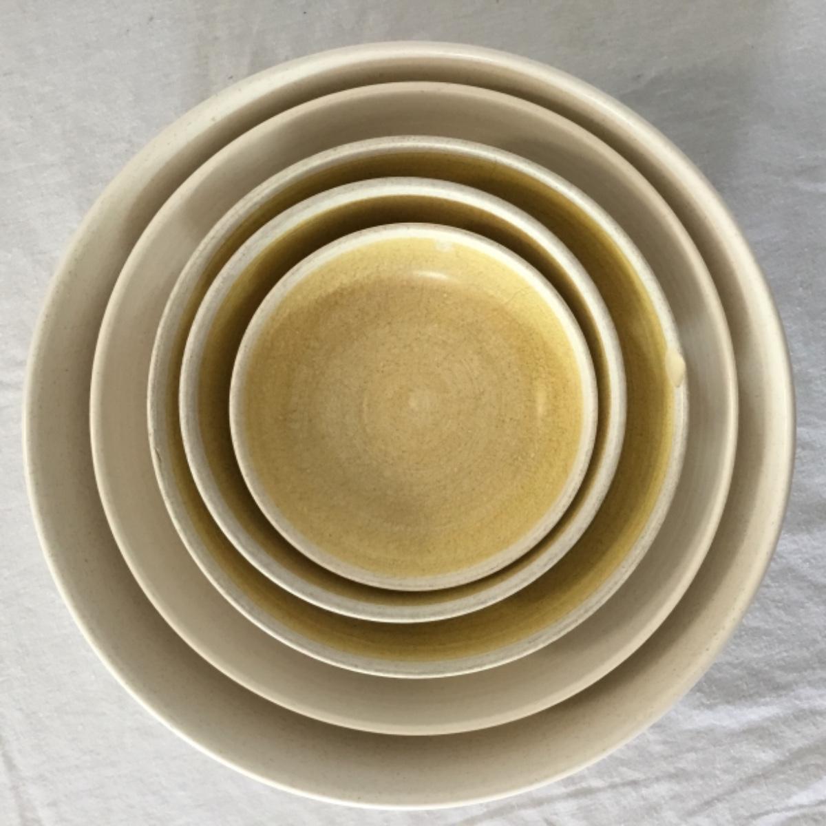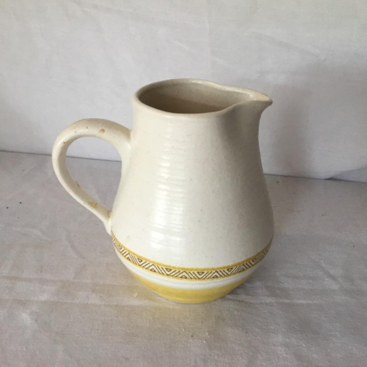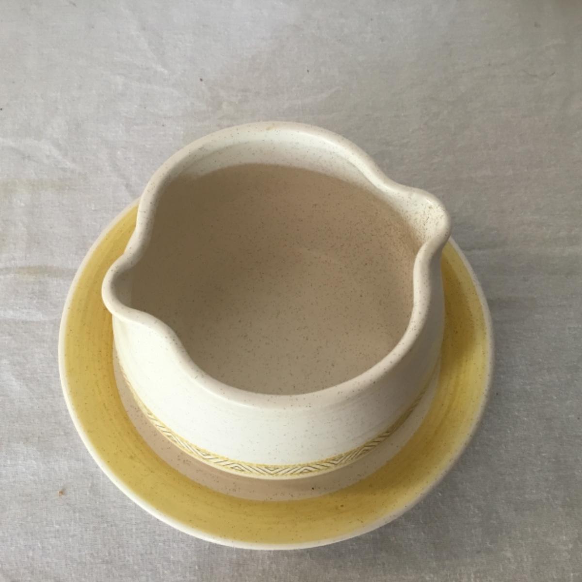 Adorable oven-safe Franciscan Earthware set will brighten and complete any kitchen! This lot includes 1 large bowl with a lid and handles, a diameter of 9.5", 2 smaller bowls with lids, and a butter dish with a lid. Bowls included in the lot are 1 large serving bowl, 4 large salad bowls, 3 medium/large bowls, 9 traditional cereal bowls with a diameter of 6.5" and 1 additional small bow. Plates in the lot include 2 serving platters that are 14" long, 15 dinner plates, 2 deeper serving plates that are NOT Franciscan but has similar design, 13 salad plates, and 24 teacup plates with diameters of 6.5". Lot includes tea/coffe items such as an 8.5" tall pitcher with handle and lid, 2 coffee mugs, and 17 teacups that have diameters of 4" and stand 3" tall. More pitchers without lids are included in this lot; 2 large that stands 8" tall, 1 medium, and 2 small pitchers. The last serving and hosting items in the lot are 2 chip & dip platters, 2 gravy bowls, and 4 salt and pepper shakers. The set is in fairly good condition considering age and use. See photos! Local pickup only.