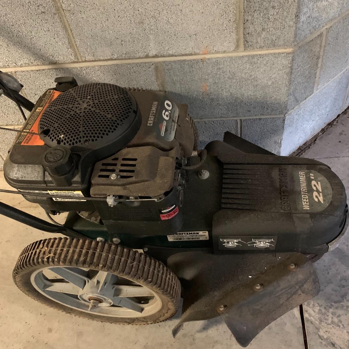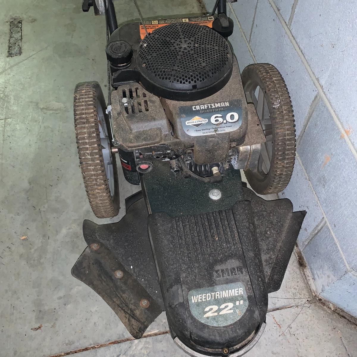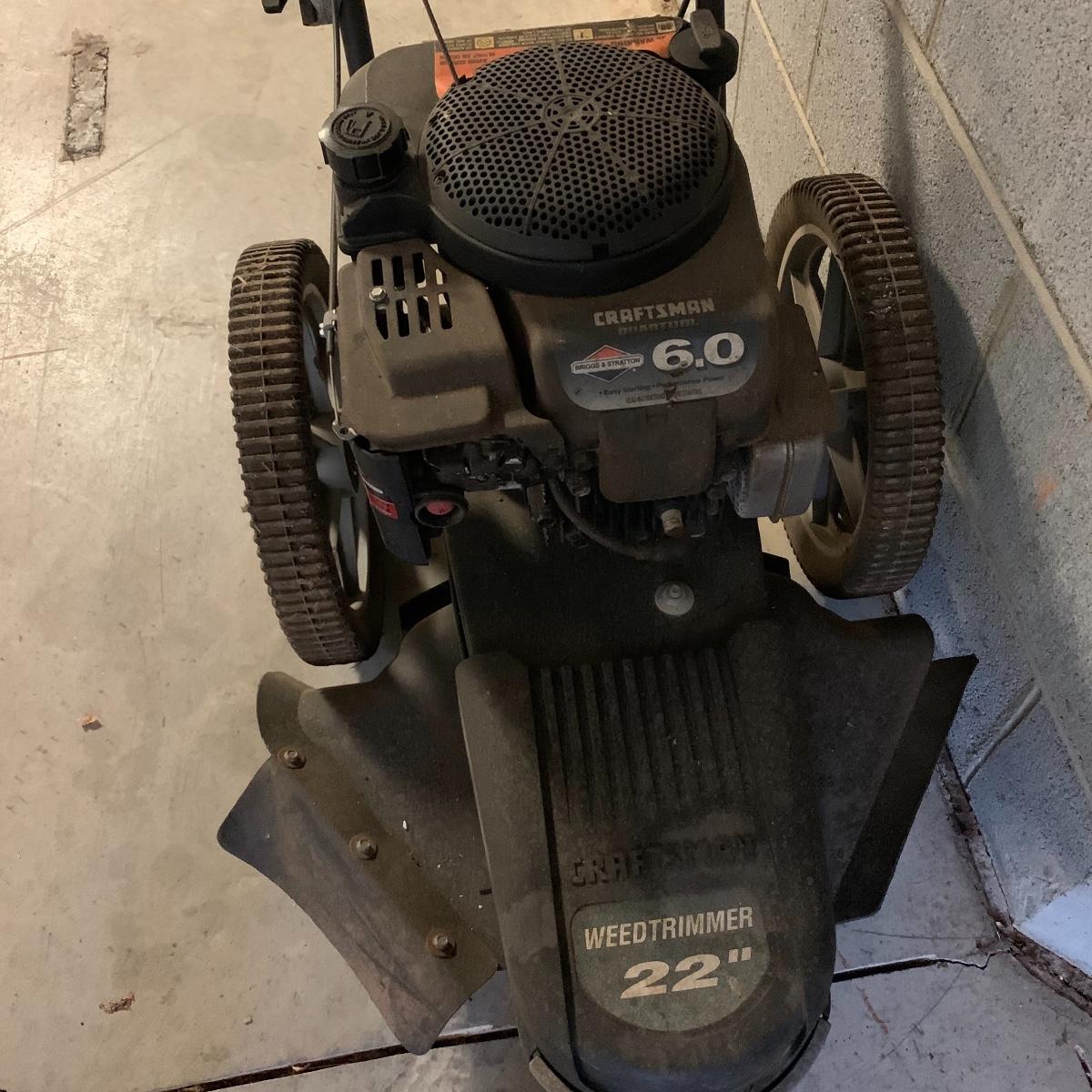 This lot includes one Crafstman Walker model # 917-773700 22in Weed Trimmer with a 6 HP Briggs & Stratton motor. The weed trimmer is a bit dirty yet should be easy to clean. Cannot confirm it works as it has no gas but turns over when you pull starter cable. It measures about 20in x 28in x 19in without the handle and about 20in x 53in x 41in with the handle. Local pick up only.