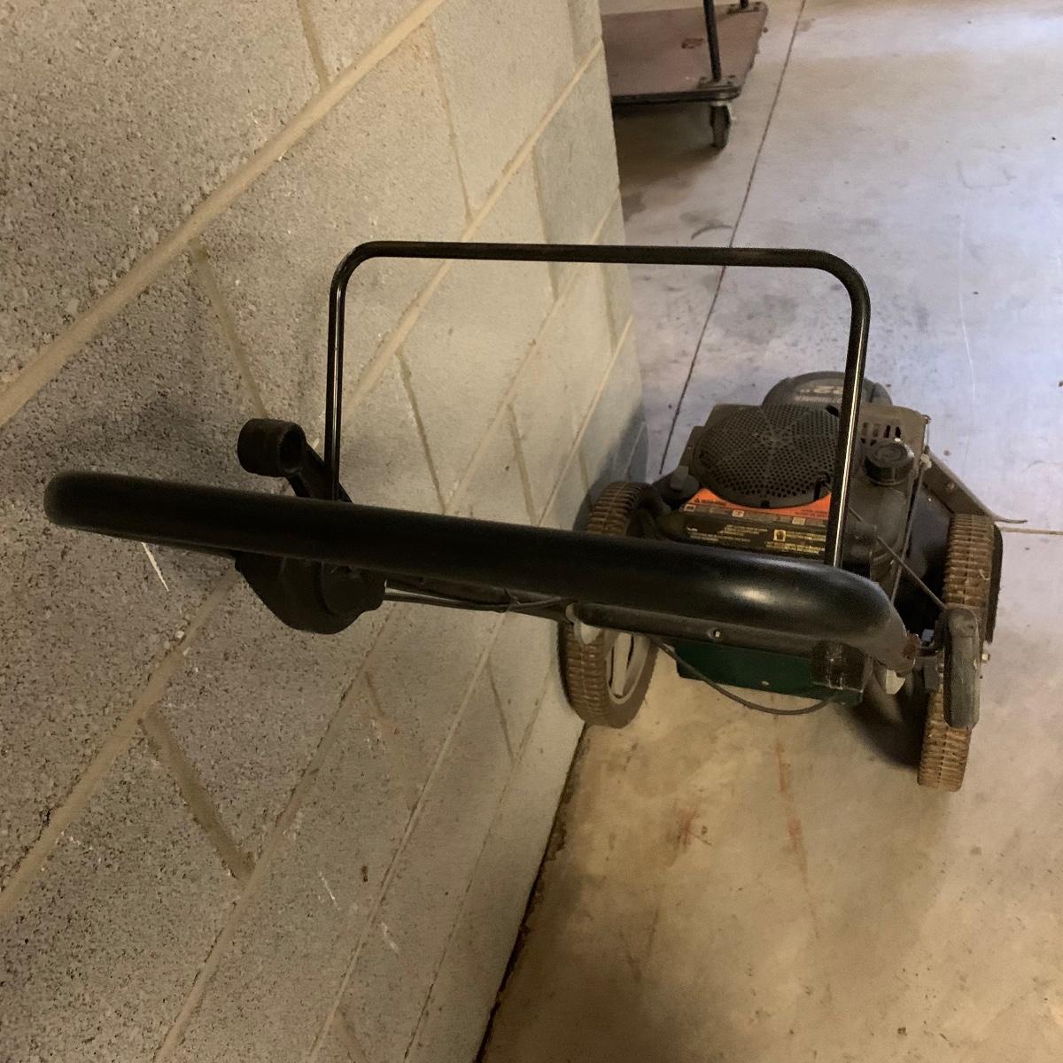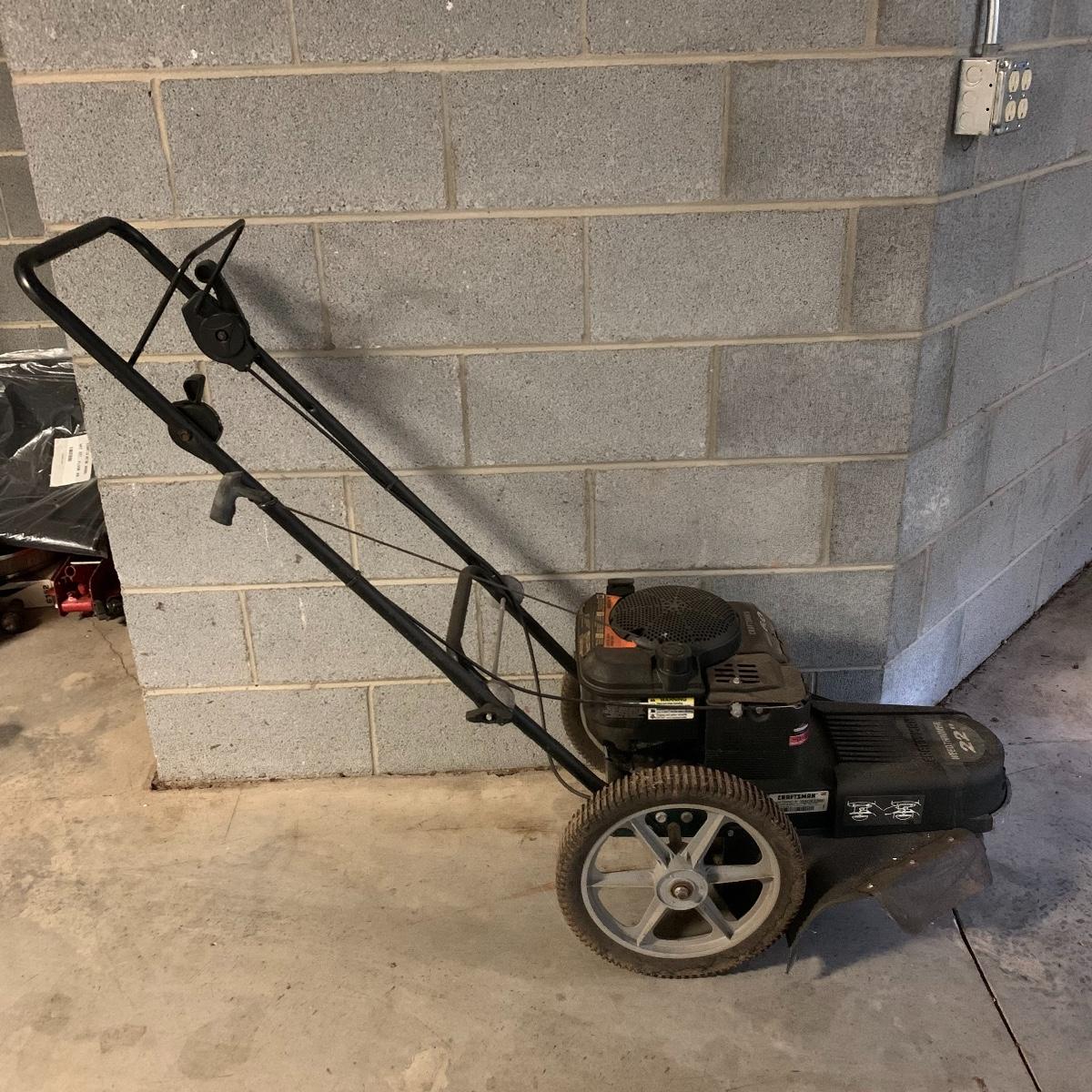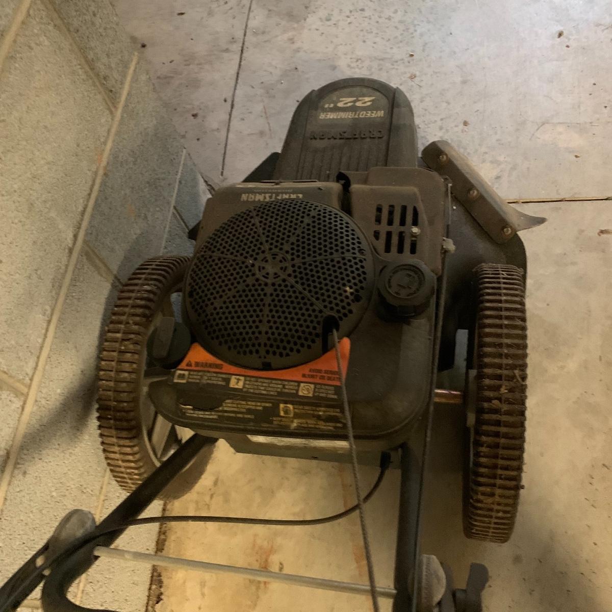This lot includes one Crafstman Walker model # 917-773700 22in Weed Trimmer with a 6 HP Briggs & Stratton motor. The weed trimmer is a bit dirty yet should be easy to clean. Cannot confirm it works as it has no gas but turns over when you pull starter cable. It measures about 20in x 28in x 19in without the handle and about 20in x 53in x 41in with the handle. Local pick up only.