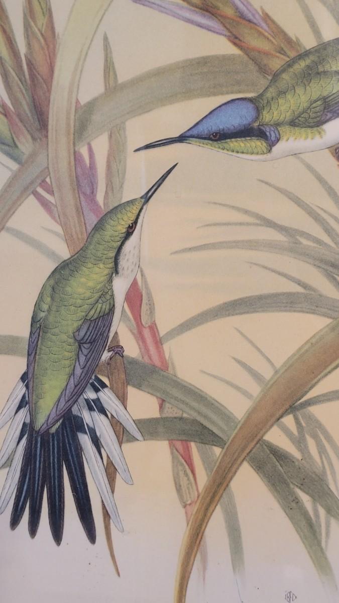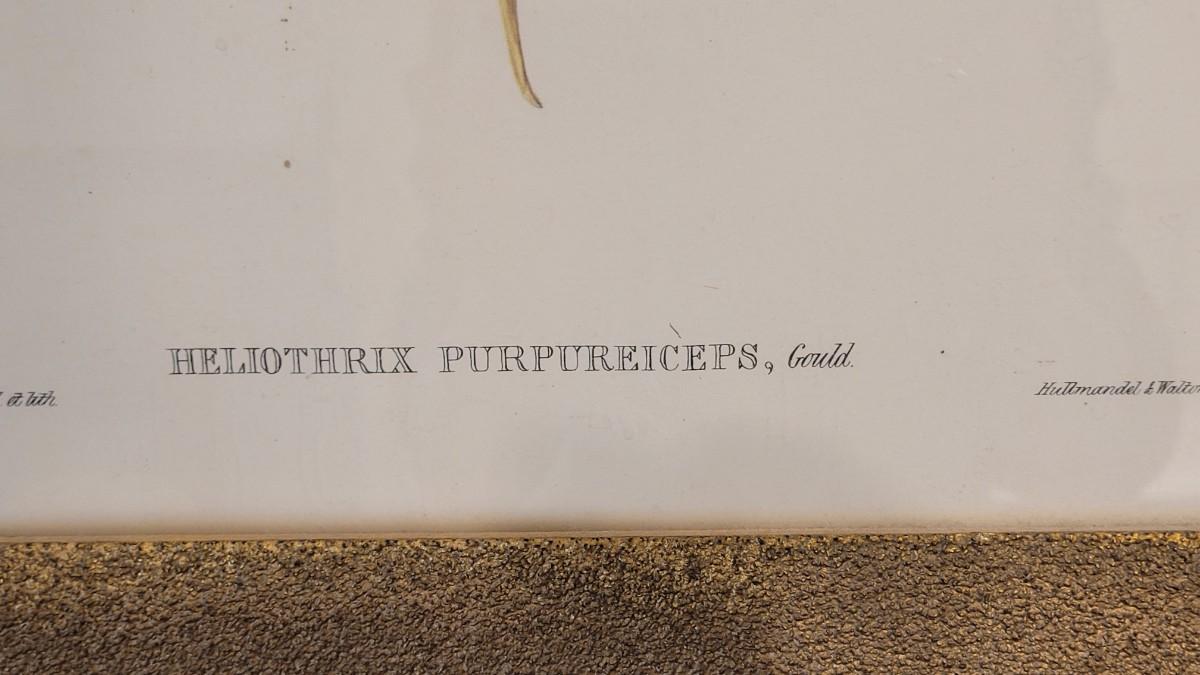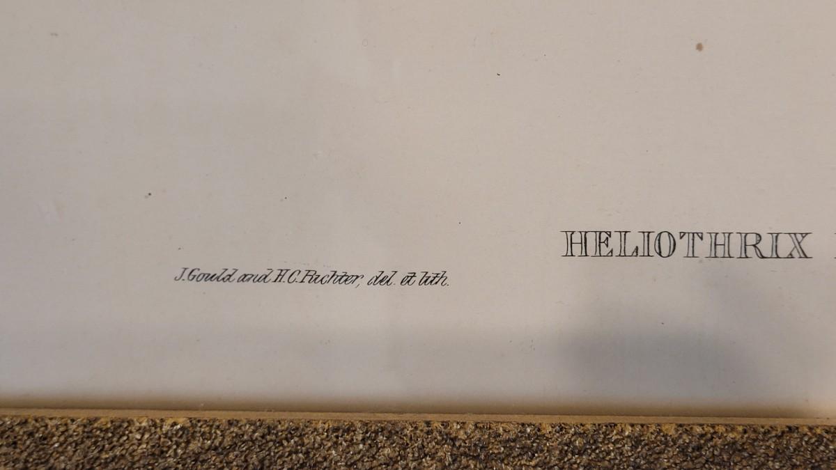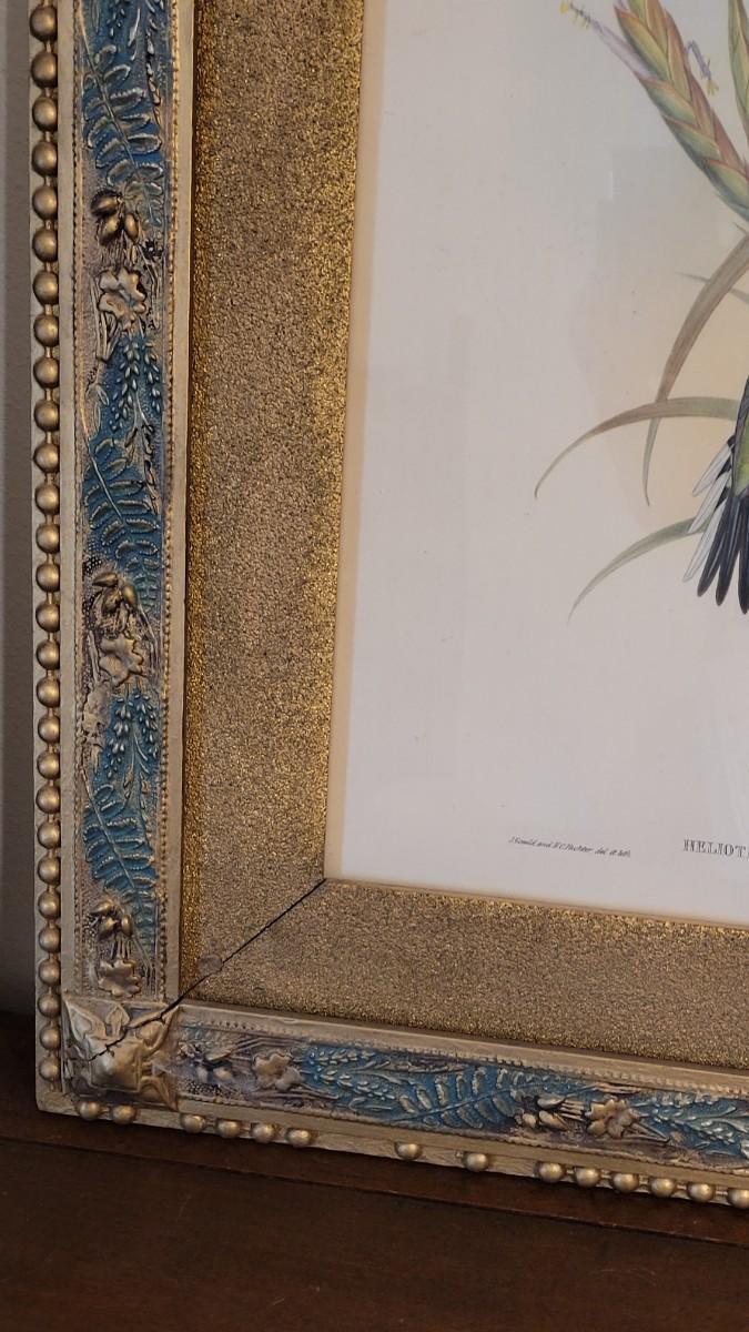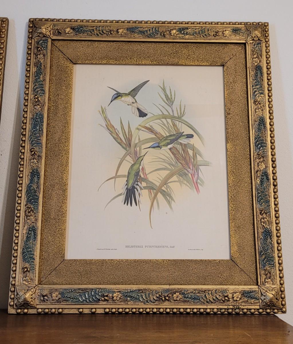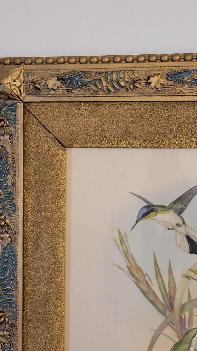 Lot 51: Antique Hand Colored Gould & Richter Bird Lithograph in an Antique Wood Blue & Gilt Frame