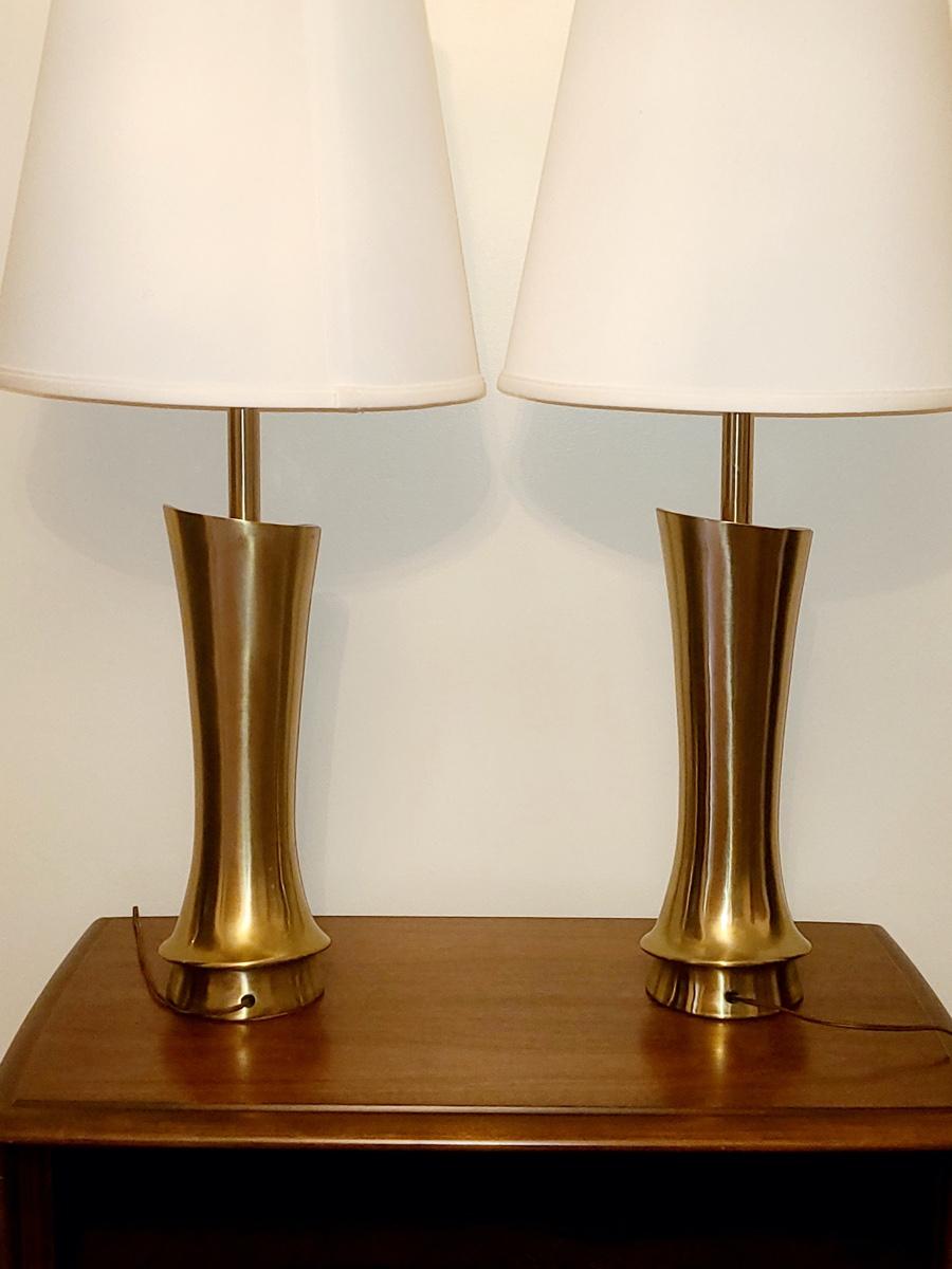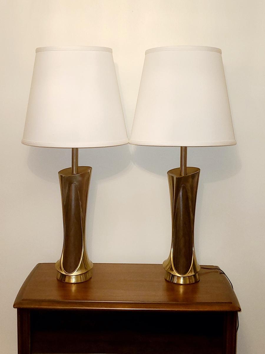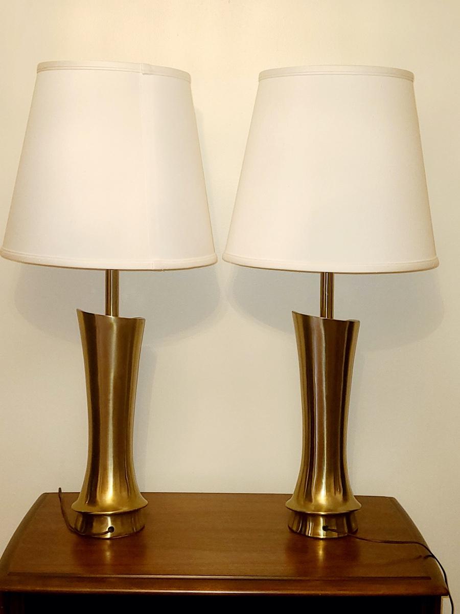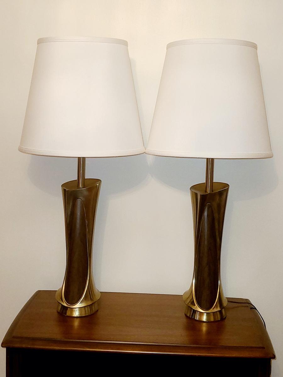 Lot 515: Vintage MCM Lamps (Brass and Teak in Design)