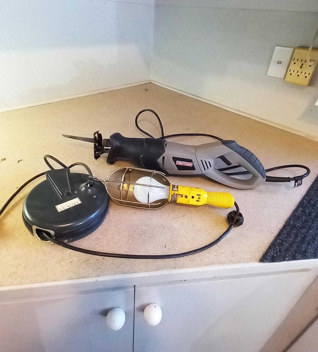 CRAFTSMAN COMPACT RECIPROCATING SAW- MECHANICS HANGING LIGHT & HANGING RETRACTABLE EXTENSION CORD BY MONTGOMERY WARDS