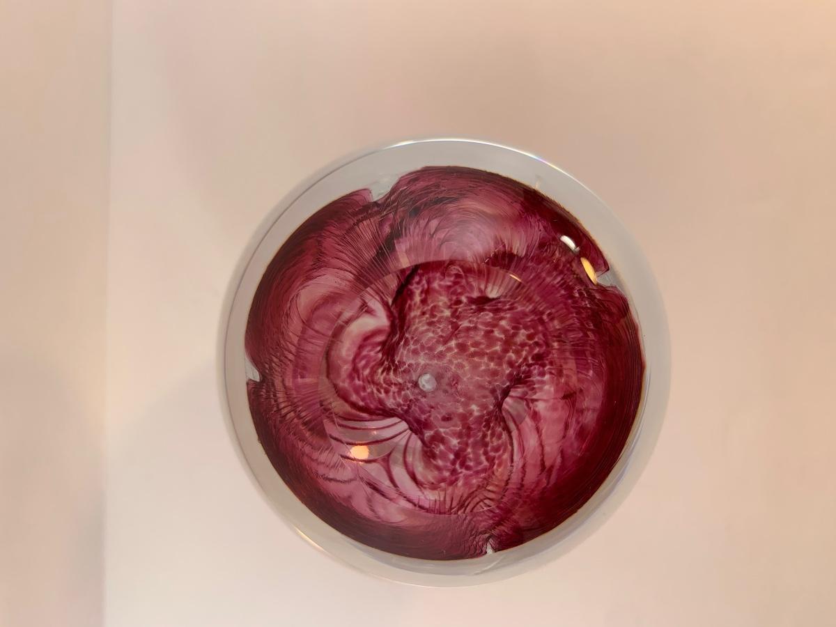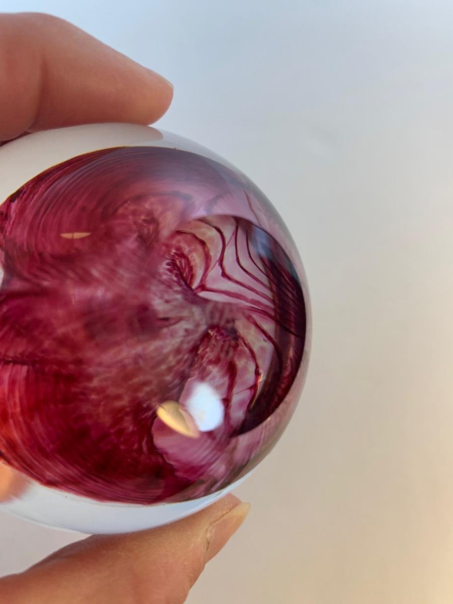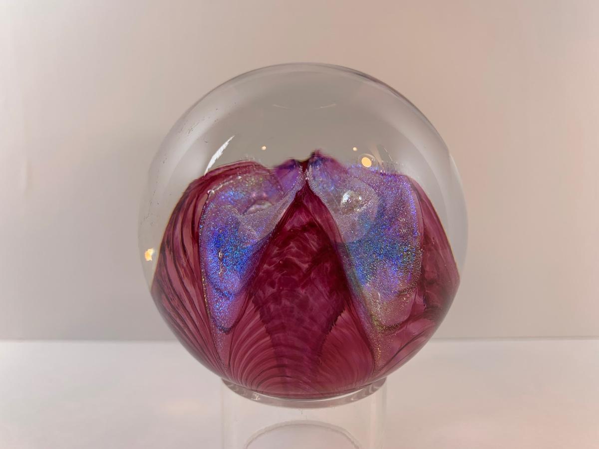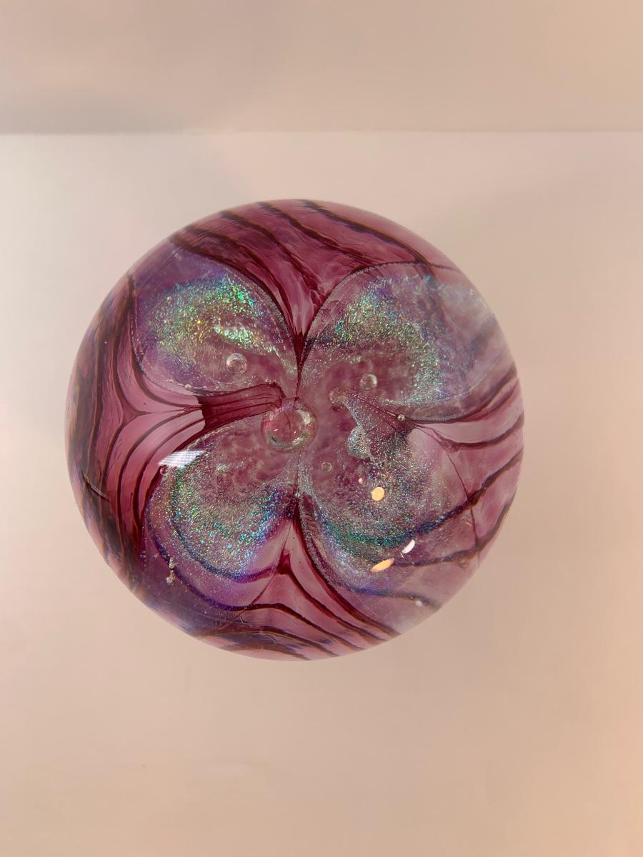 1995 GES feather pulled with glitter flower in center, signed on bottom "GES 95", 2 1/2" x 2 1/2"