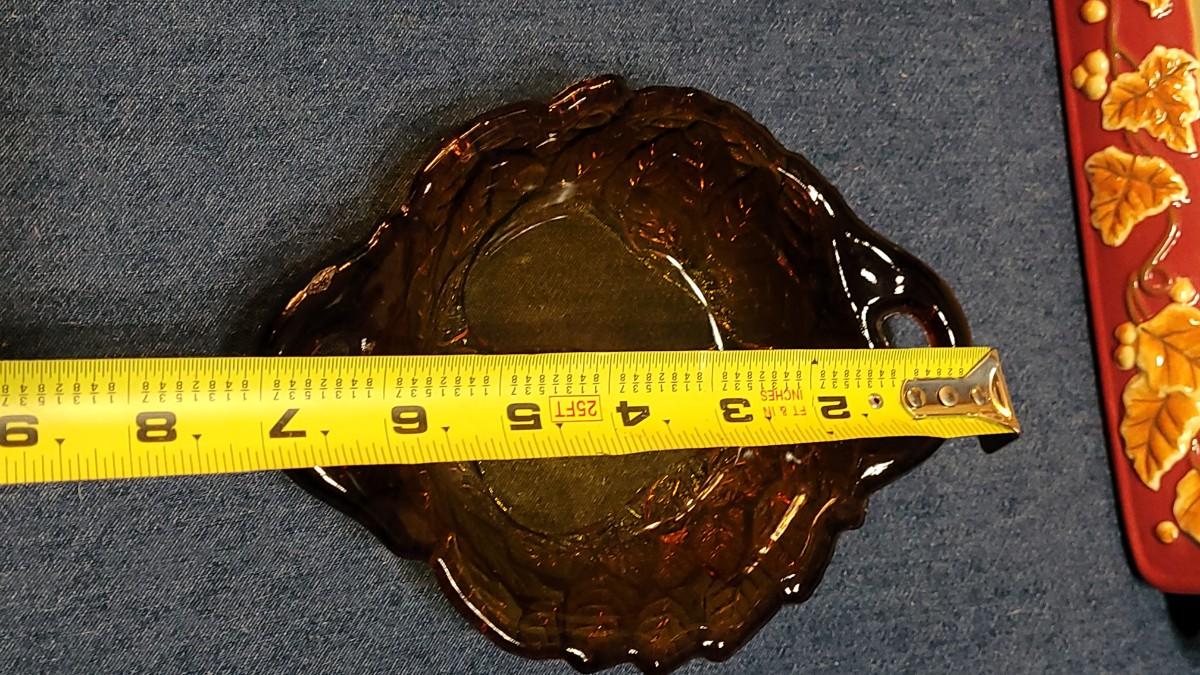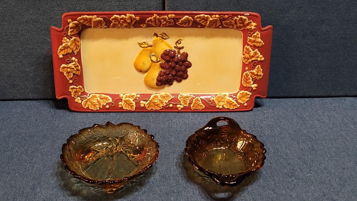 Lot 51: Fall Theme Platter and (2) TIARA Amber Glass Dishes