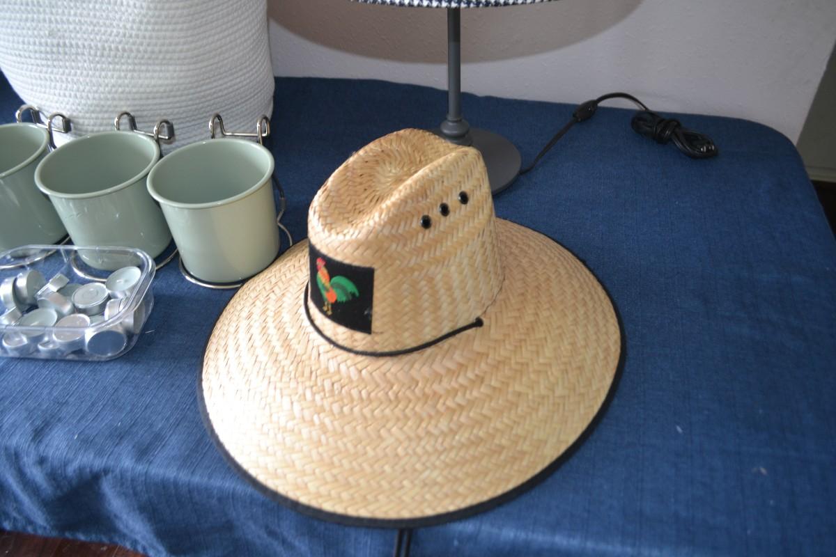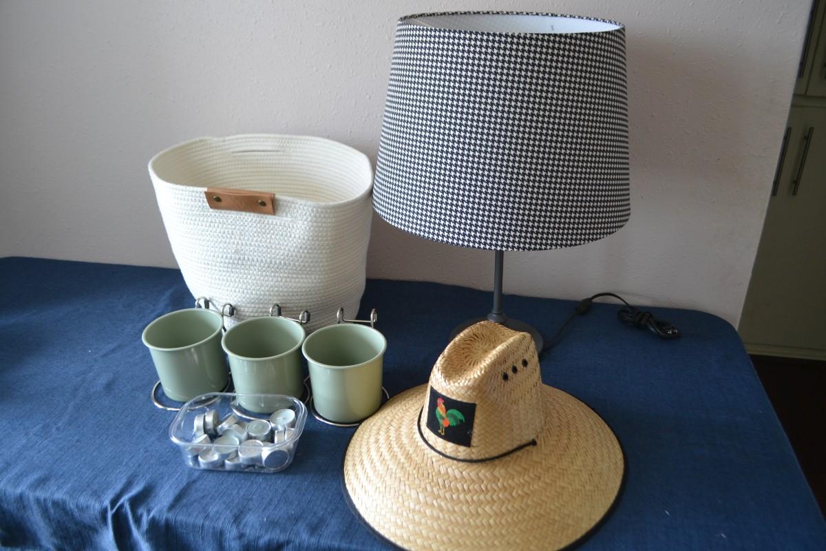 HOME DECOR ITEM, TABLE LAMP AND SUN HAT