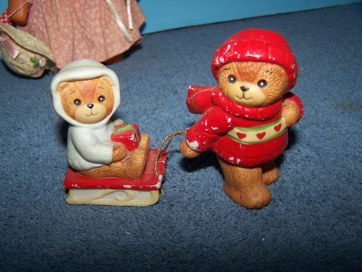 LOT 51 ADORABLE COLLECTABLE LUCY & ME BEARS.. SOME PAINT WEAR TO THE SLED PIECES..