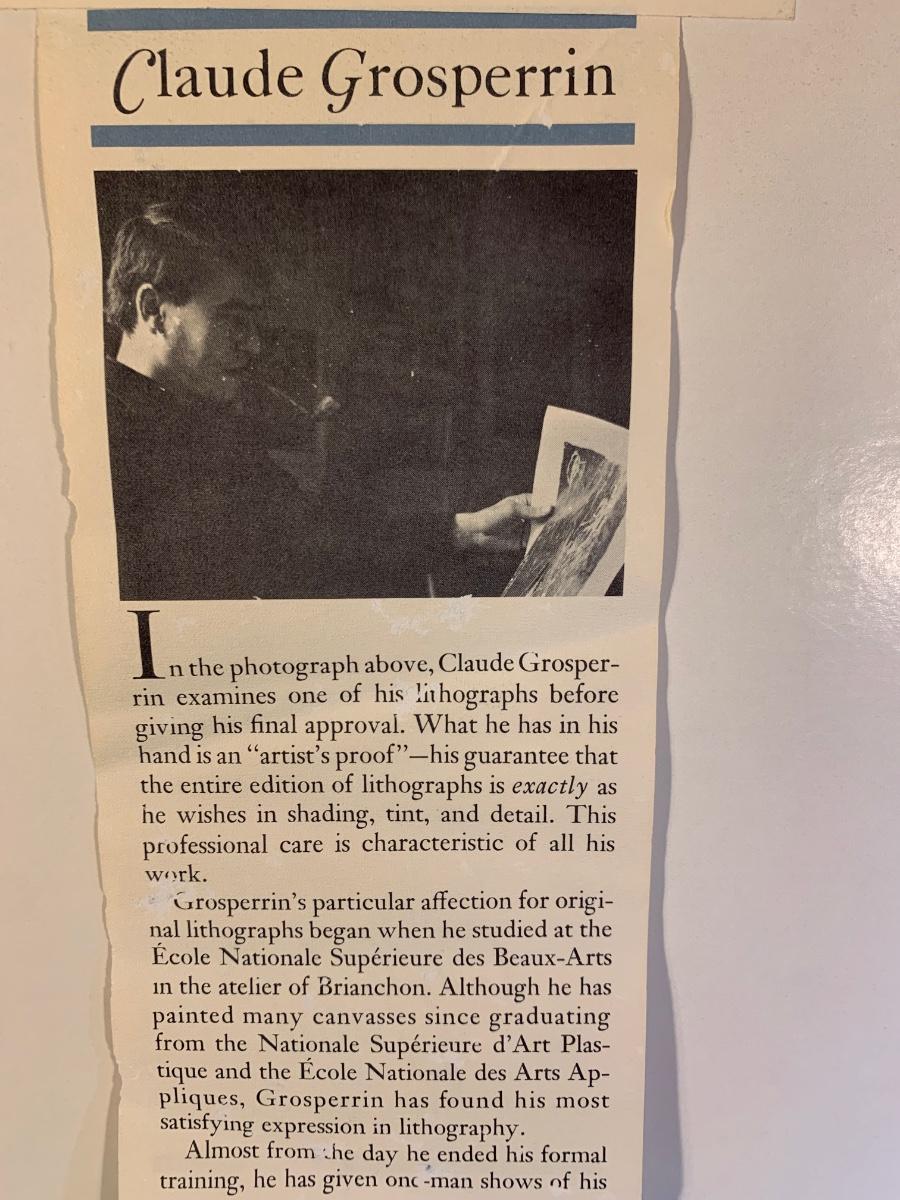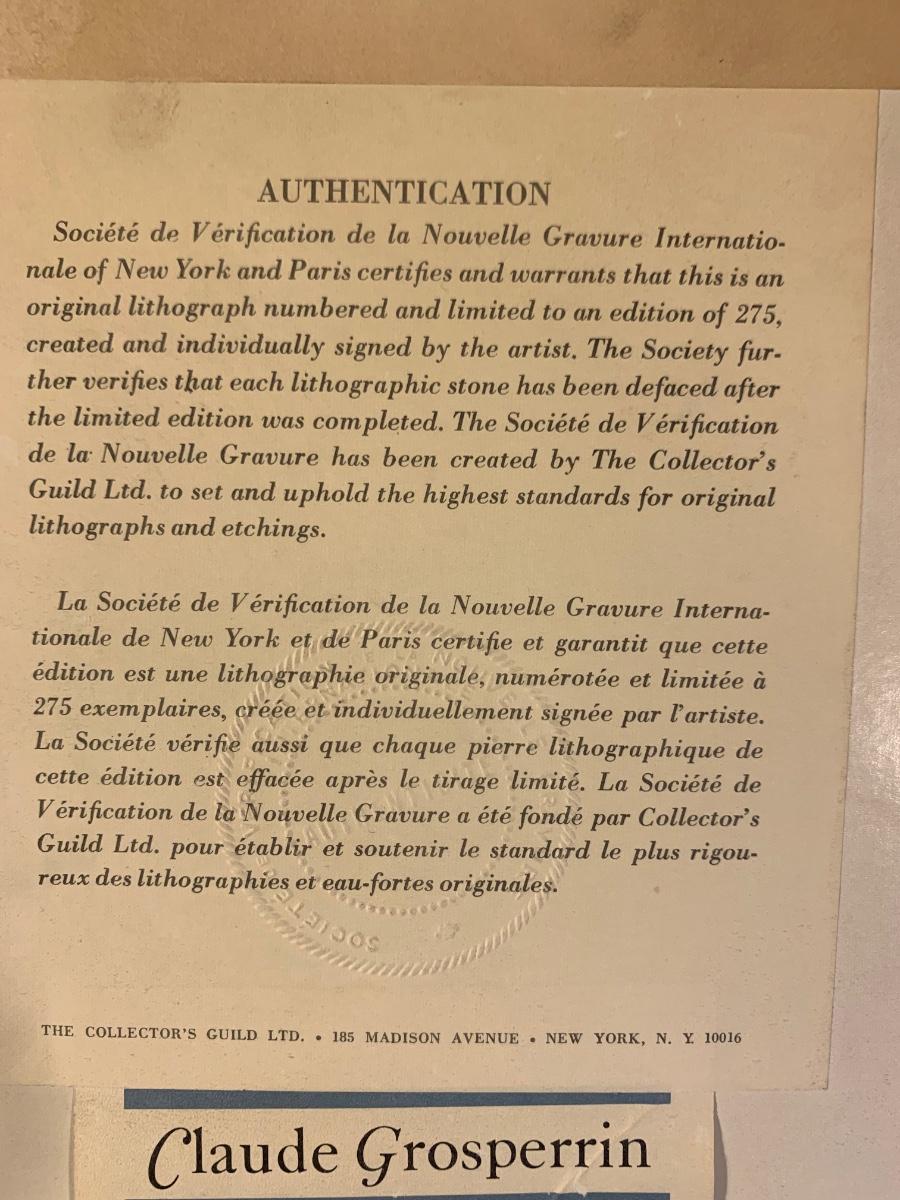 Lot 51. Claude Grosperrin French Estate Signed Lithograph