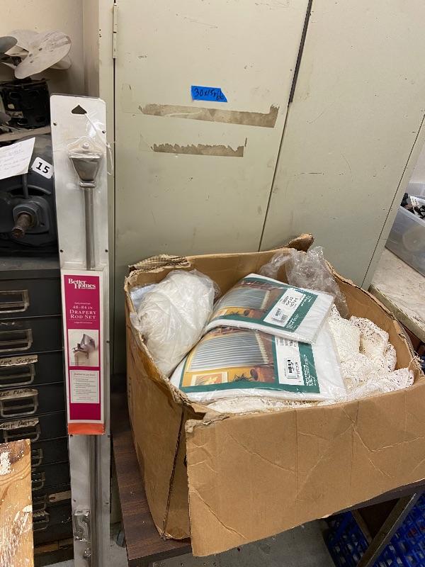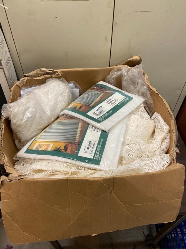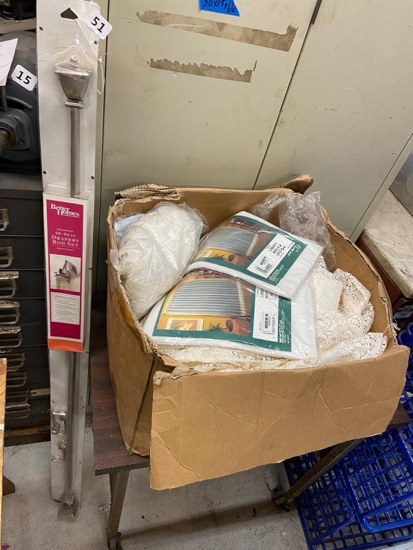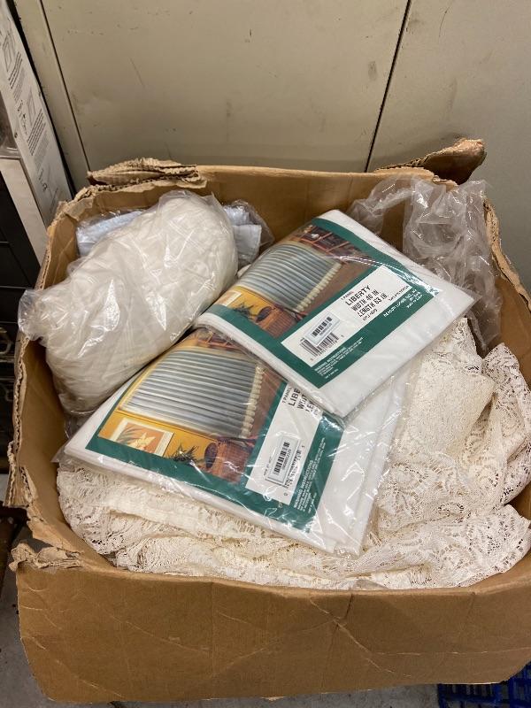 Box of lace curtains, new liberty curtains 40x63, and new Better Homes and Garden curtain rod 48-84 inches.