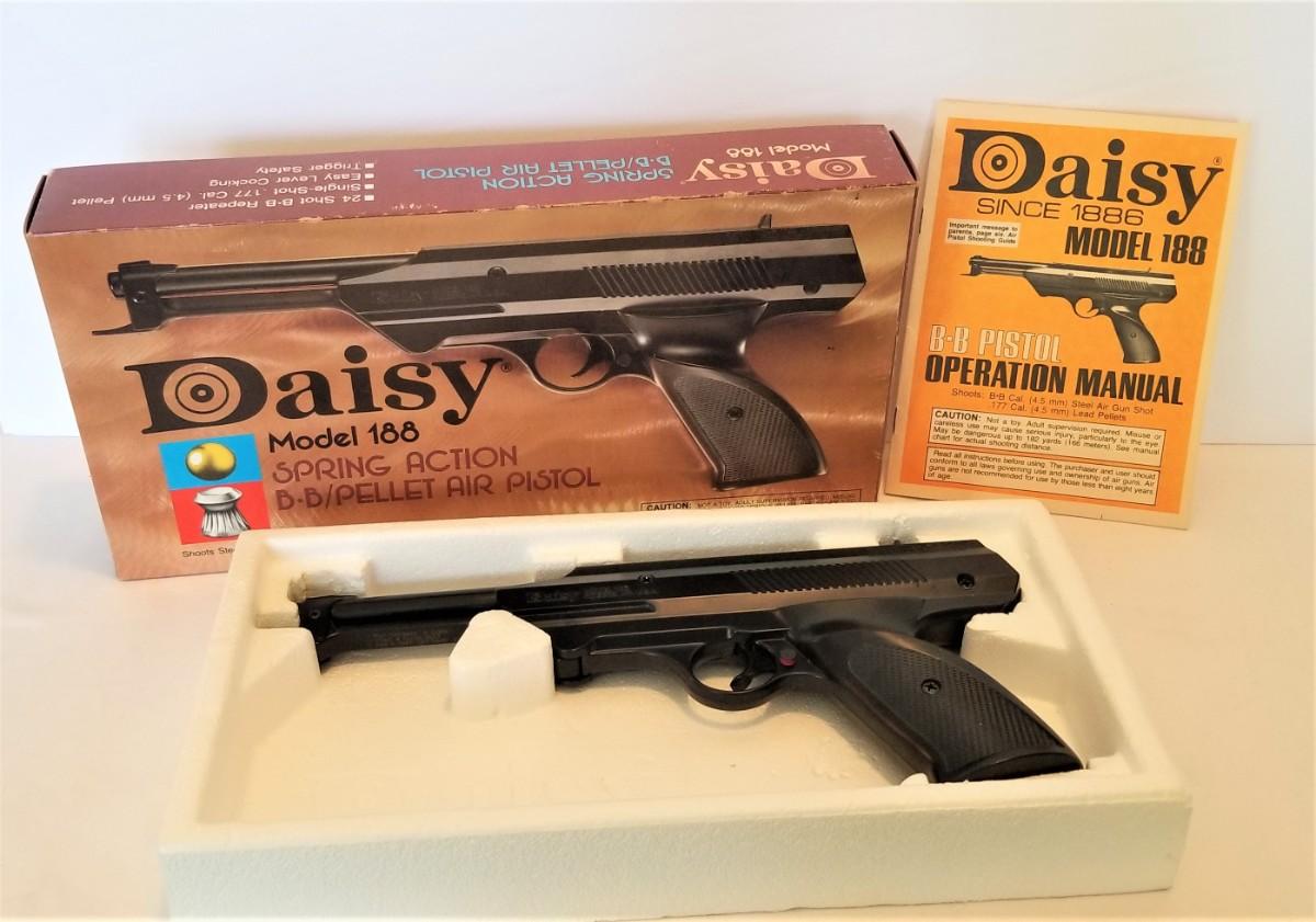Daisy Model 188 Spring Action BB/Pellet pistol in box. 24 shot repeater - booklet included.