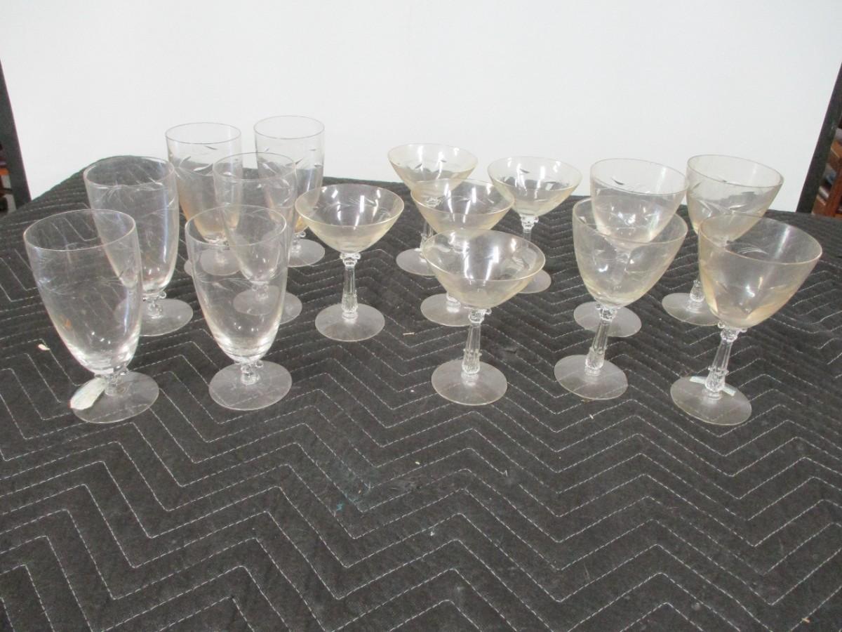 Lot 51 - Engraved Crystal Glasses - Duncan & Miller 1900 - 1920's
