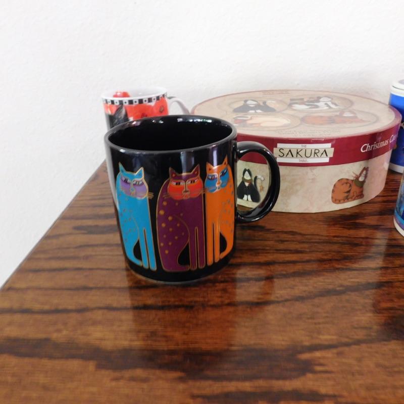 LOT 51 Four Cat Mugs, Four Cat Salad Plates