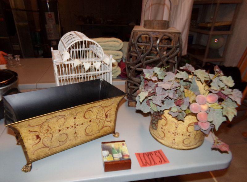 METAL PLANTER, TWIG LANTERN, FAUX BIRD CAGE, METAL WALL POCKET, GLASS COASTERS