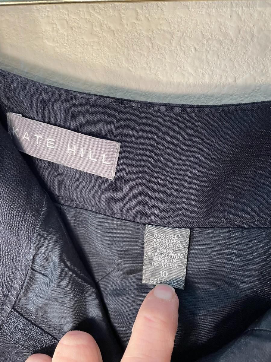 Kate Hill black slacks, size 10, 55% linen & 45% viscose.