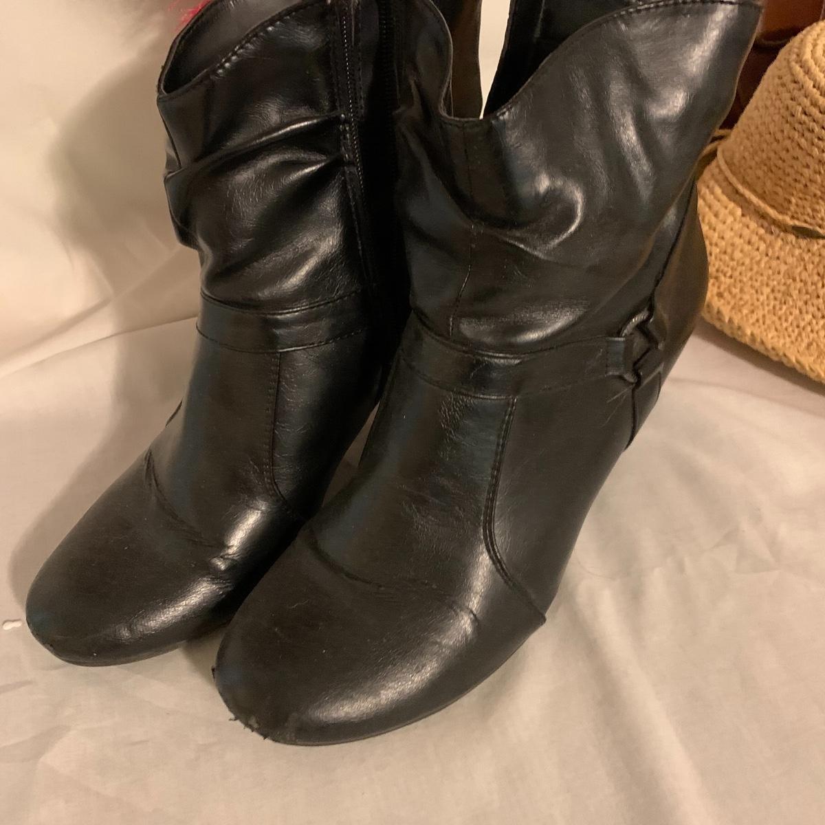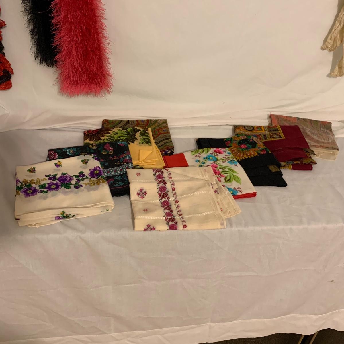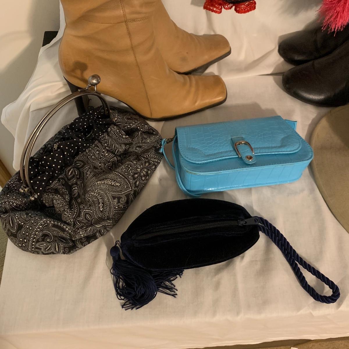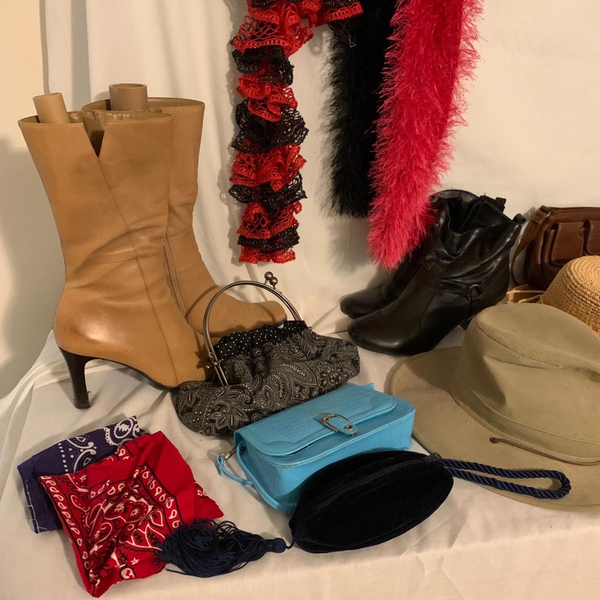 Lot includes two pairs of ladies boots, the tan taller ones are Size 9.5 and the short black are size 10. Four hats in the lot with the best being the Henschel Hat in a size medium. Approximately nine wool scarves with lovely patterns and floral designs and gloves of all lengths and color will give you plenty of options to accessorize. Gloves appear to be a size 8, but only one is marked. A few formal and every day purses completes the lot. You have great options if you get this lot. Shipping available.
