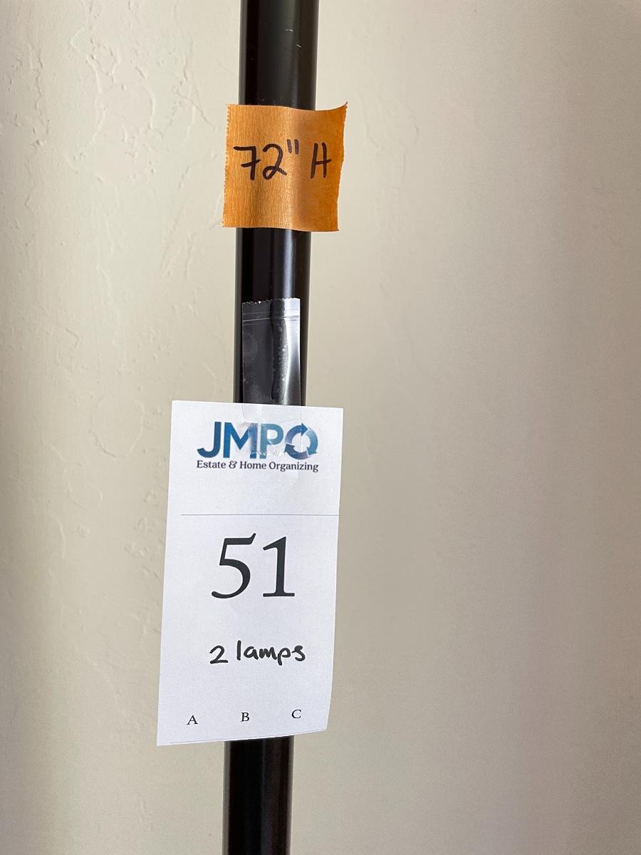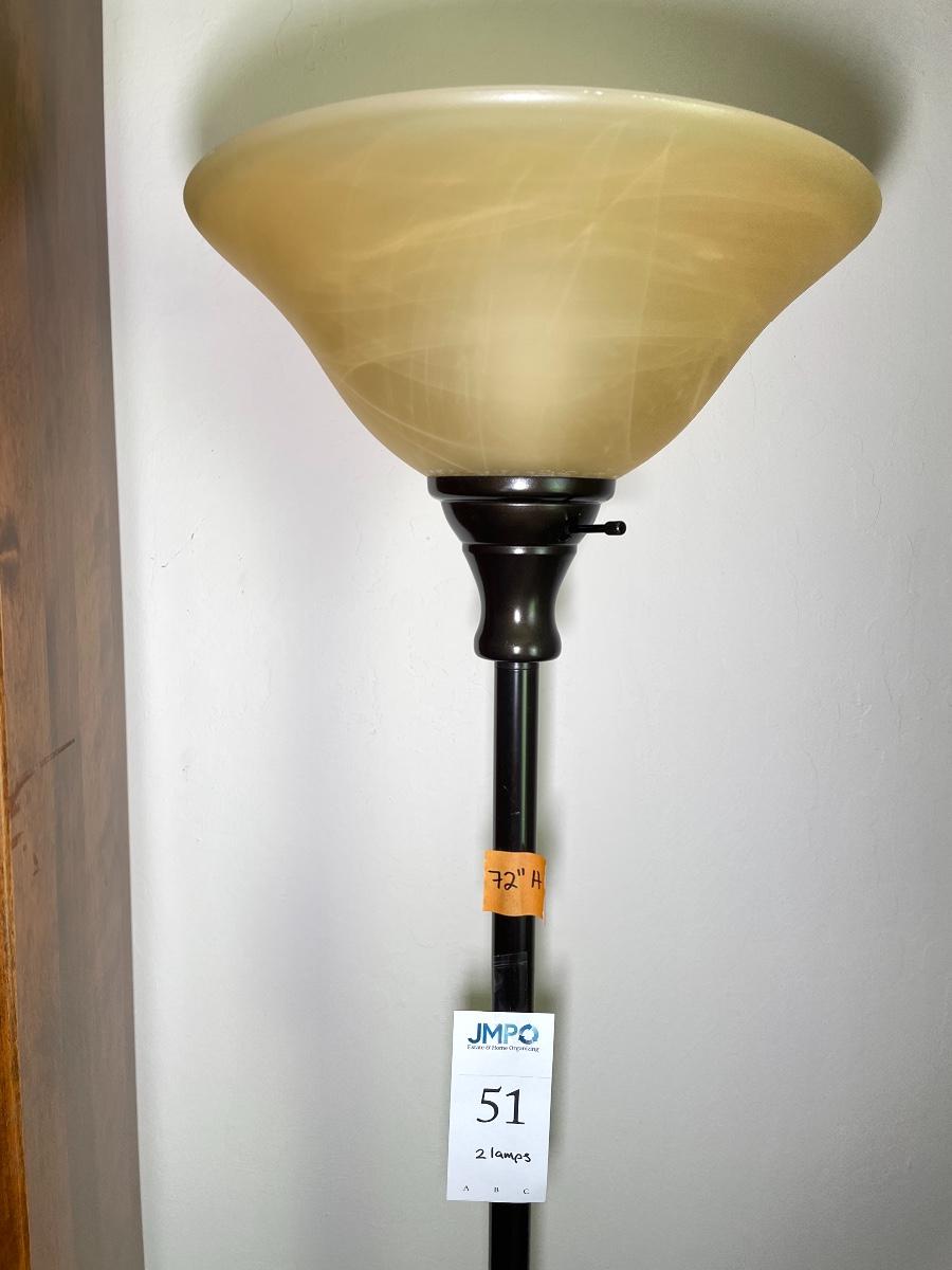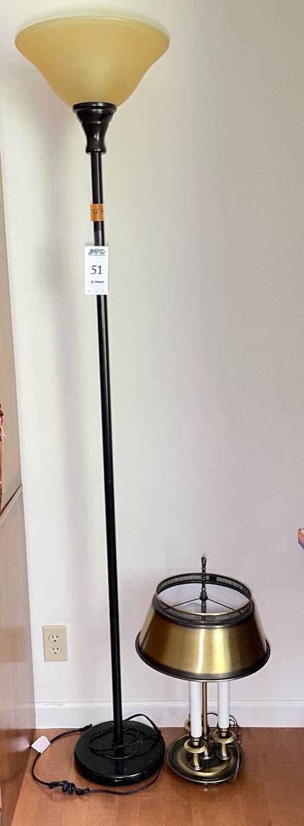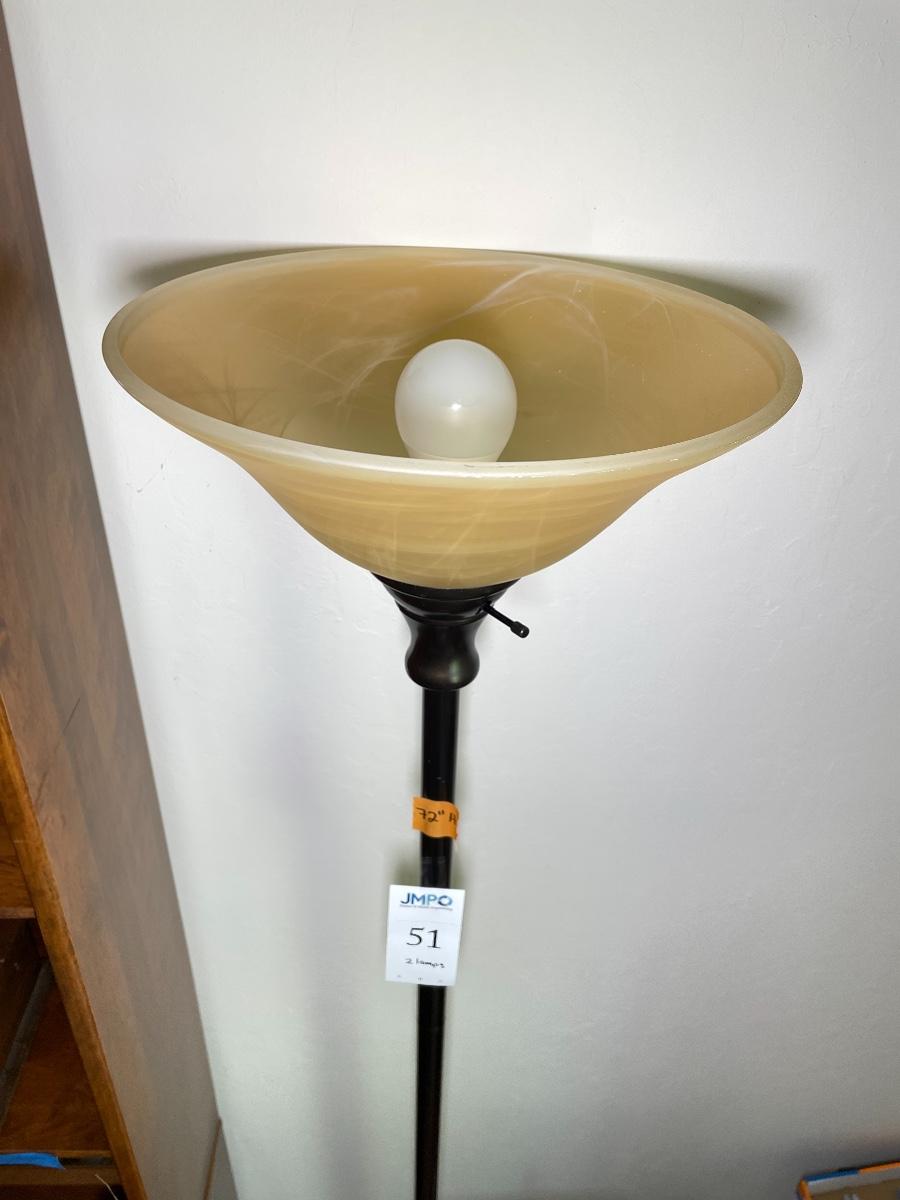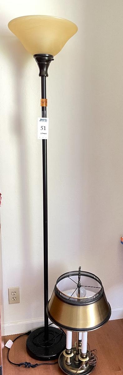 Lot 51- Lamps; Floor lamp 72”H, table lamp 25”H. Lamps tested and worked.
