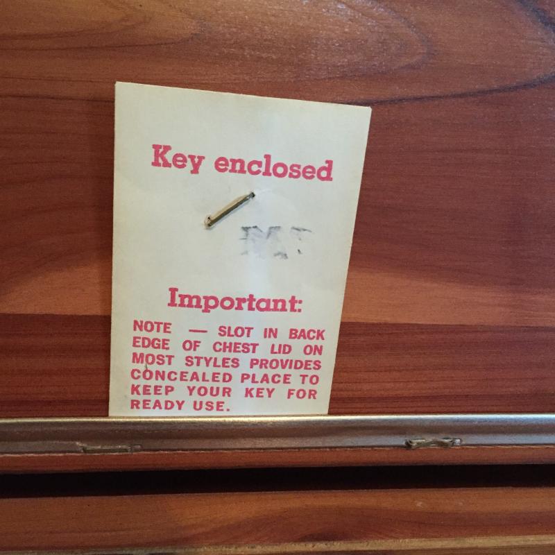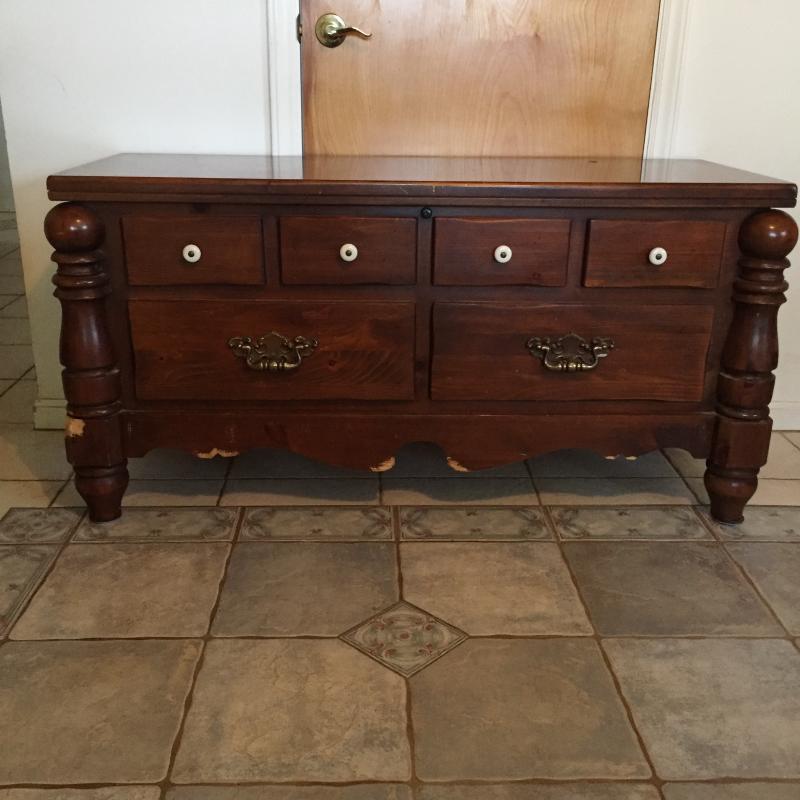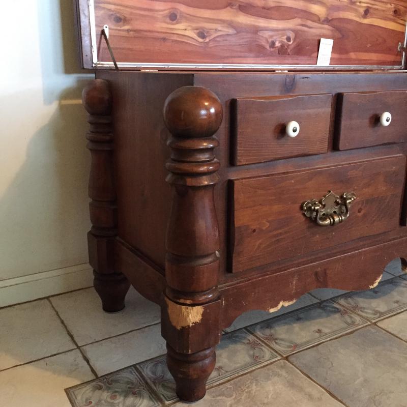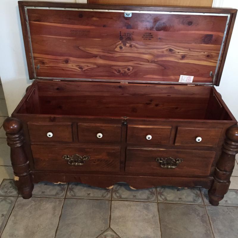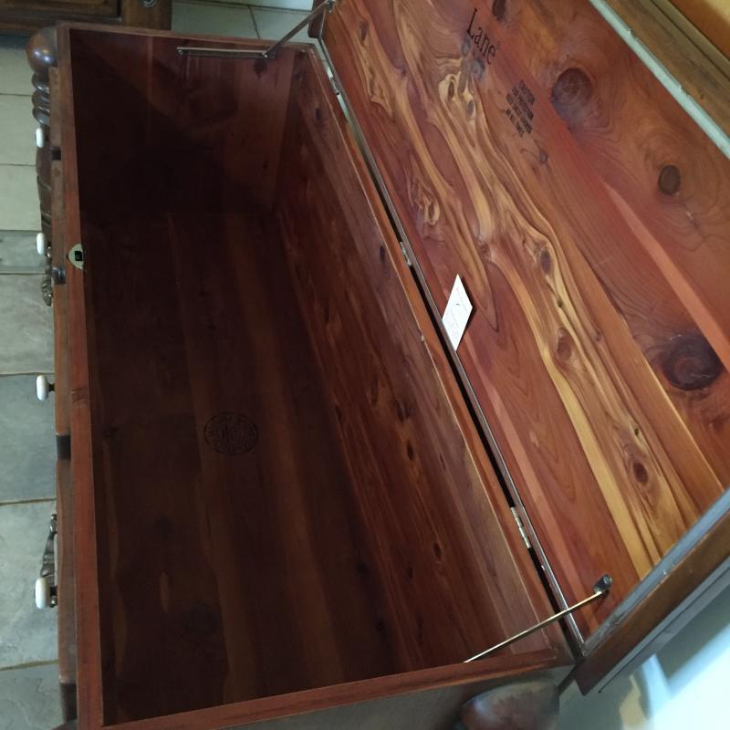 Lovely robust cedar-lined trunk. Great to store all your heirlooms. Trunk measures 50.5” x 19.25” x 26” and has some gouges. See pics. Local pickup only.