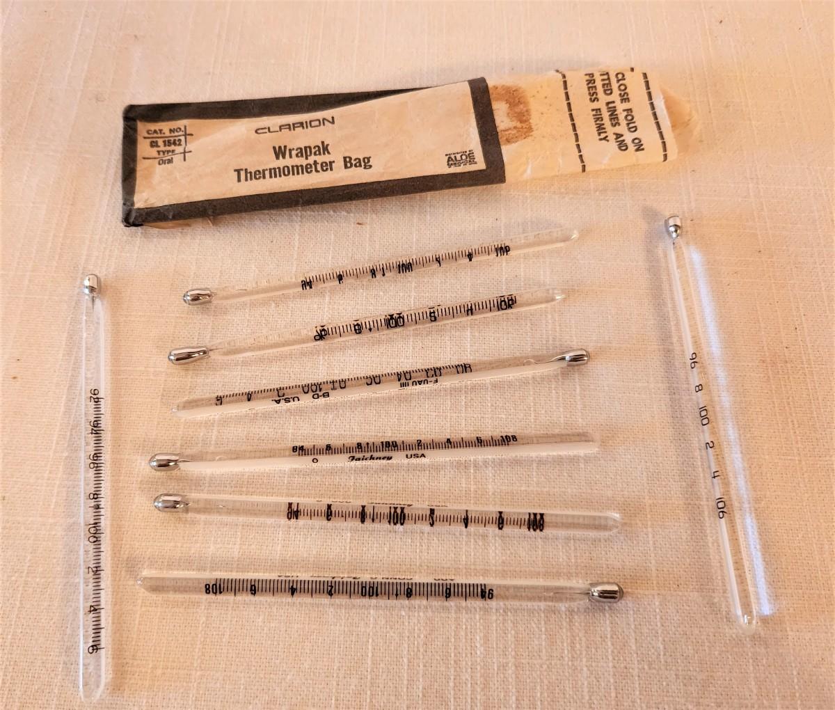 You get all you see here log of 8 vintage mercury thermometers - each about 4.5" long.