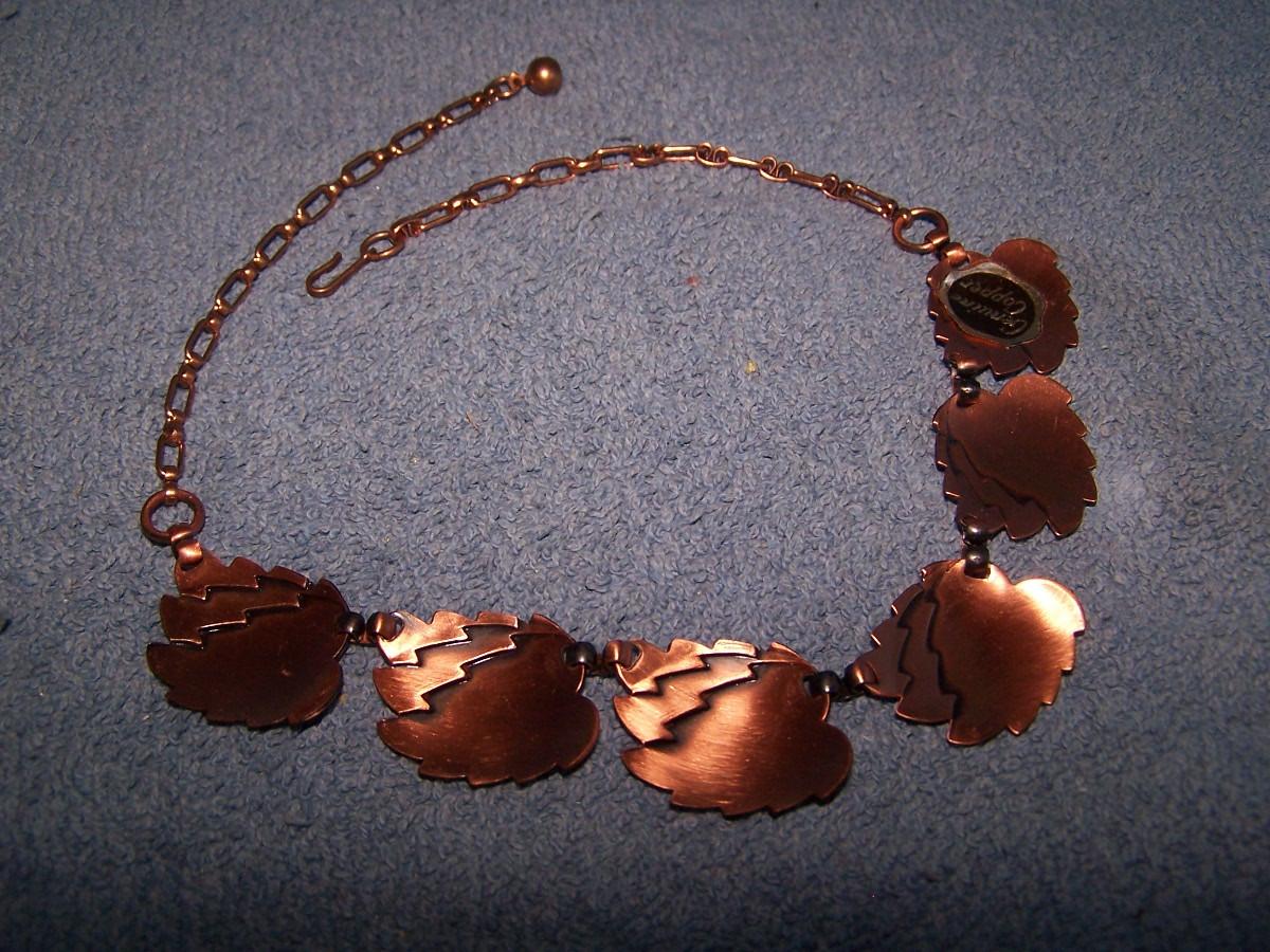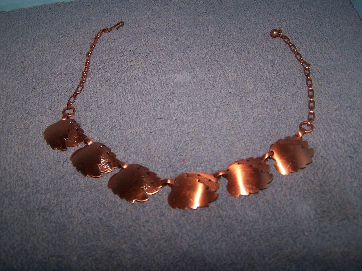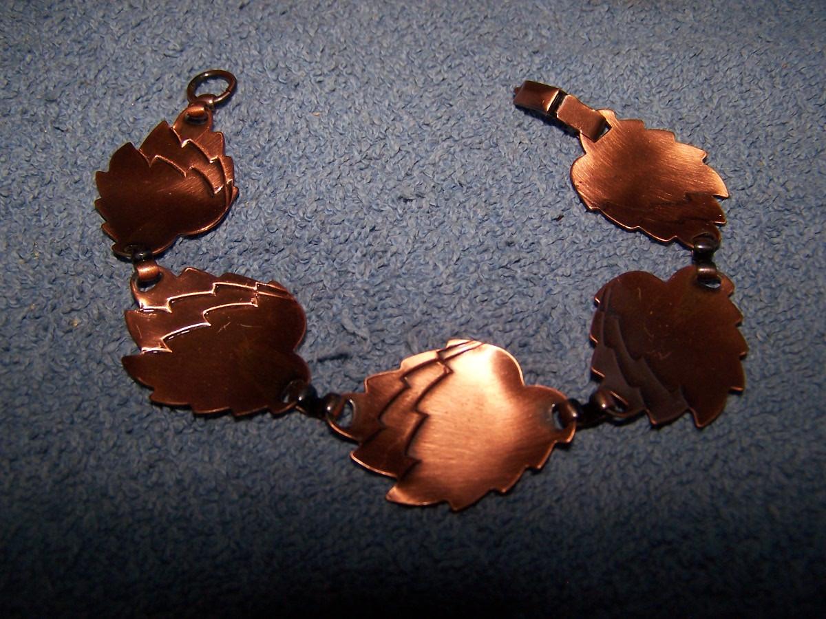 THIS IS A LOVELY VINTAGE COPPER LEAVES SET!!! UNMARKED.. BRACELET-7 3/4'', PAIR PINS-1 7/8'' ACROSS.. LIGHT WEAR..
