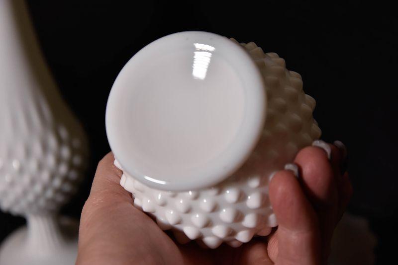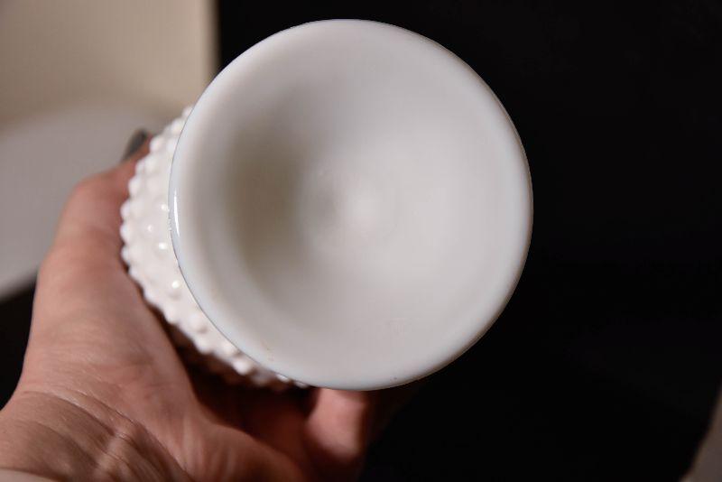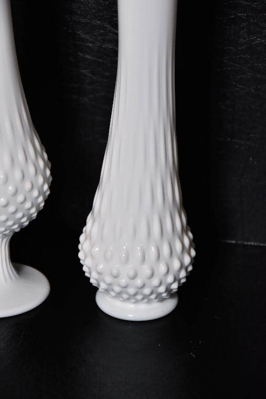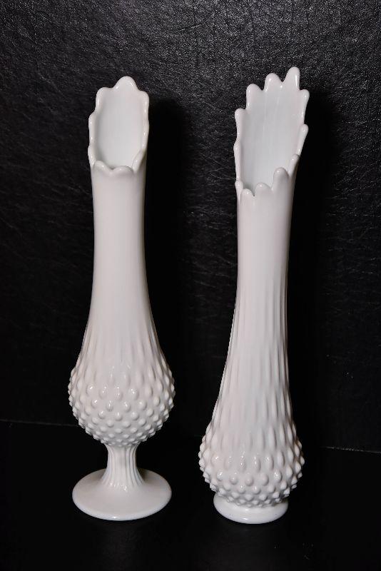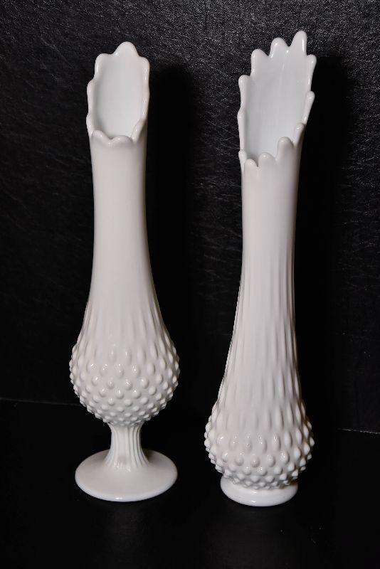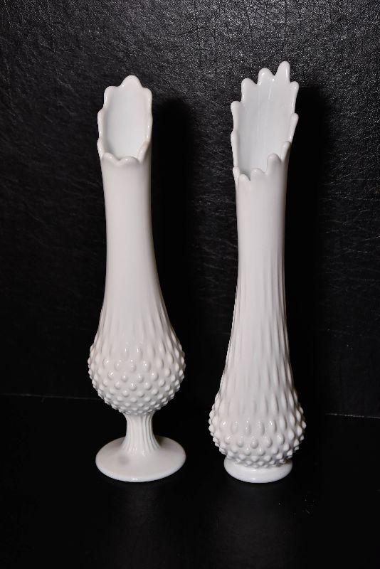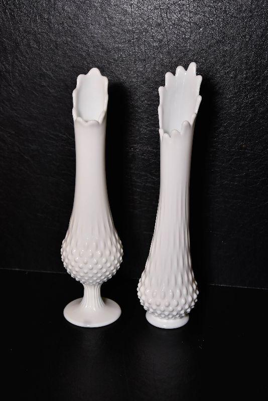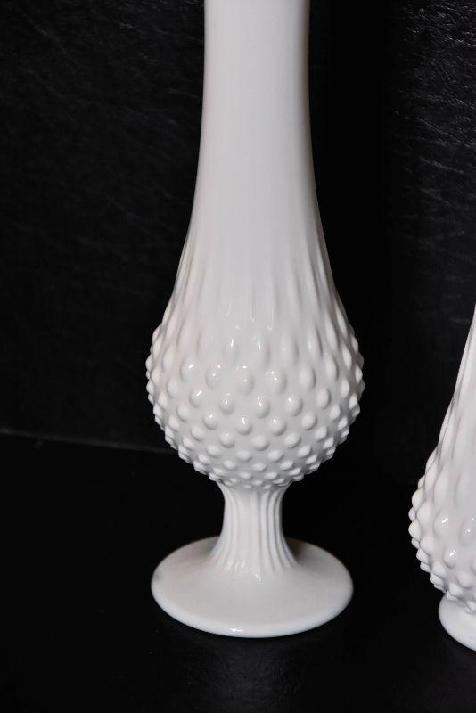 Lot 51: Pair of White Milk glass Hobnail Bud Vases
