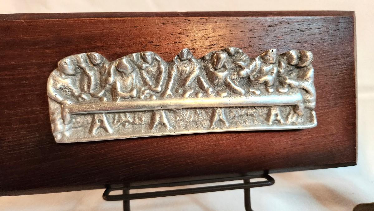 Lot #51 Pewter Last Supper Plaque with St. Cecilia Figure