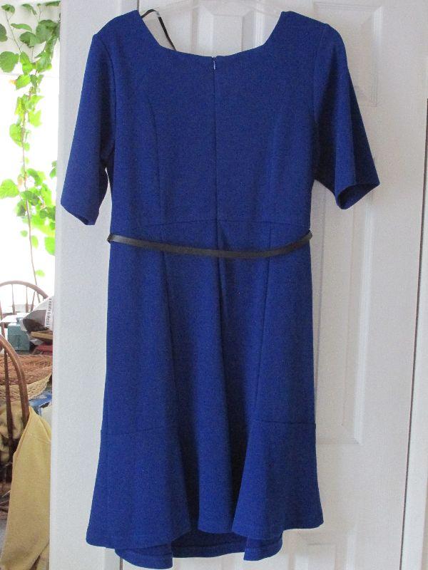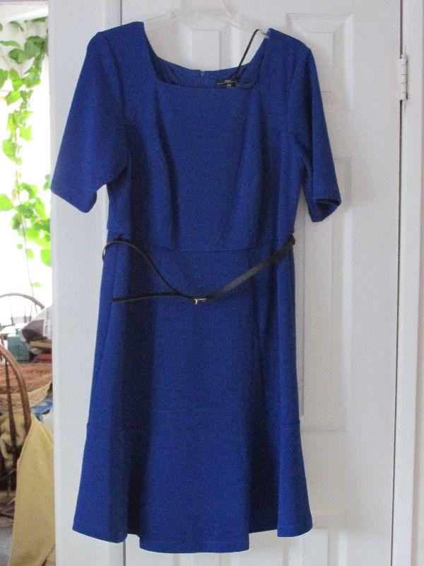 Blue R & K Dress with black belt. Size 16 Women.