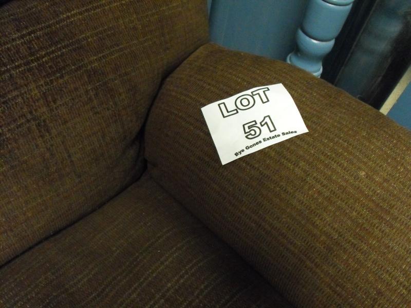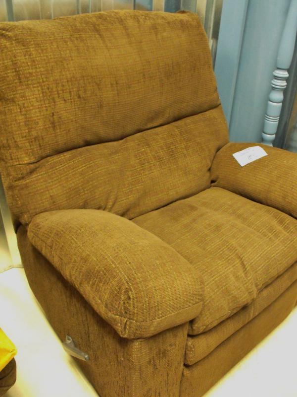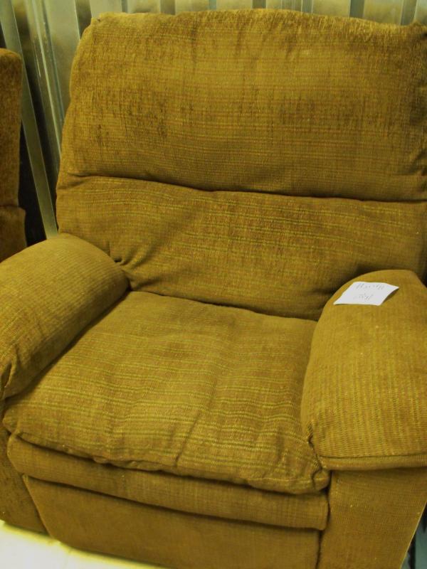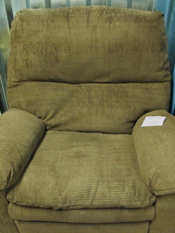 The 1st picture shows the chairs real color the following 3 pictures do not show this recliners true color. It is brown and in good condition