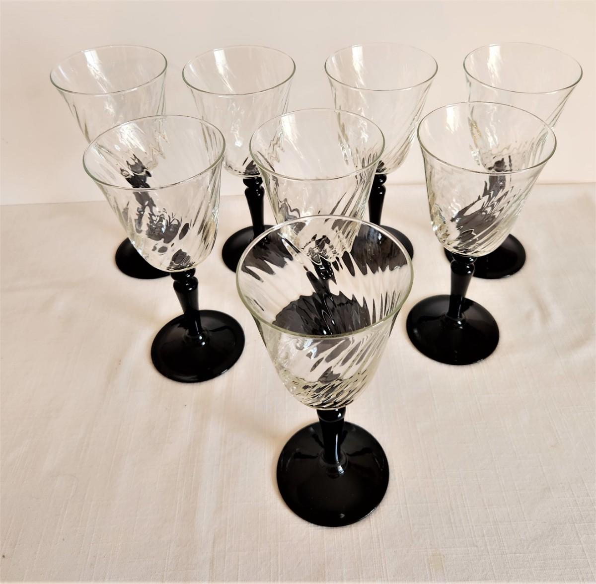 These 8 wine glasses have black bases and are great "go-withs" for that Mikasa set that was in the auction earlier (Lot #40). Each stands 7" tall - all in good condition.