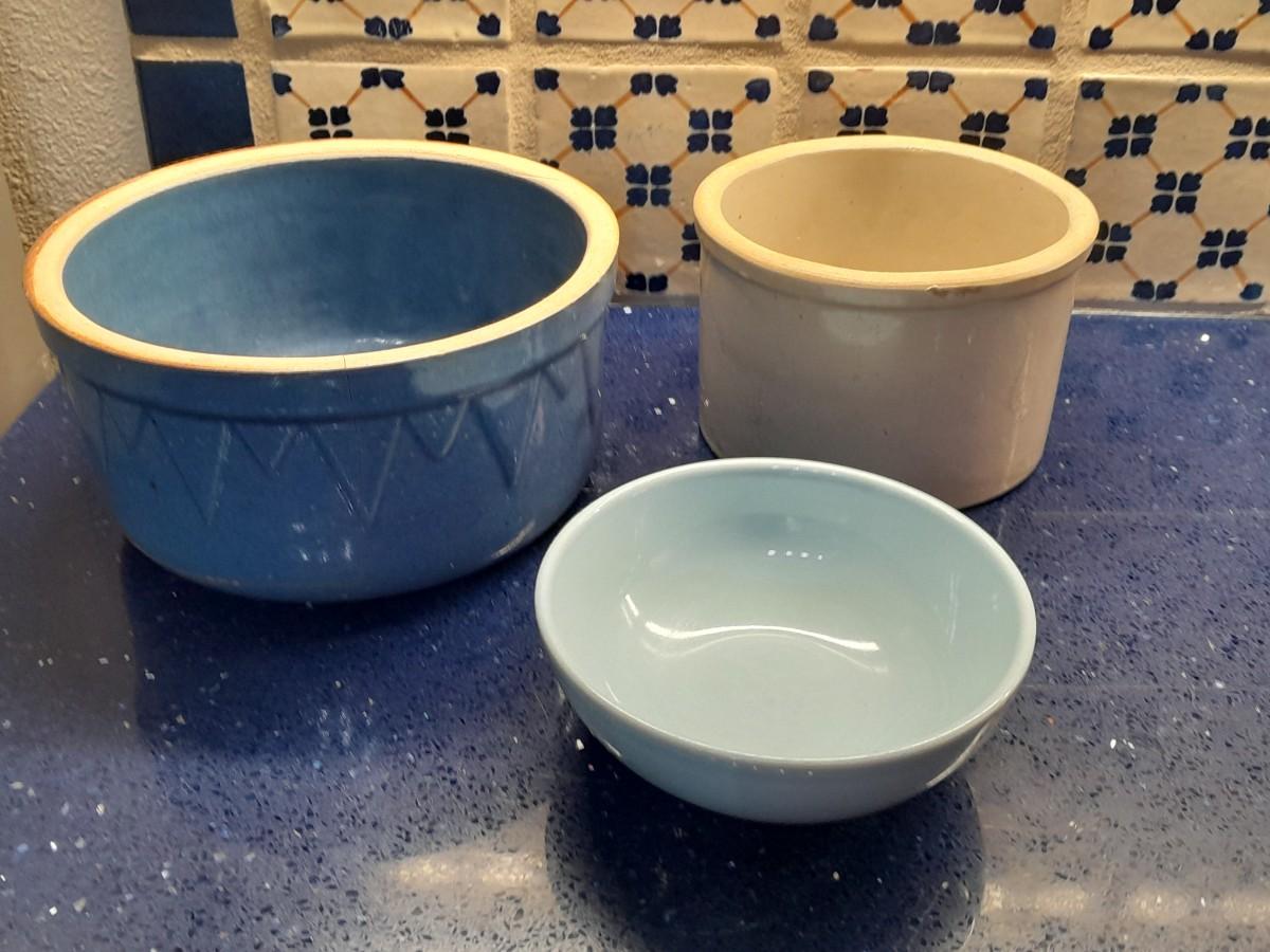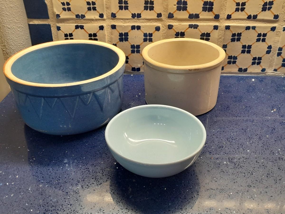 TWO CROCK WARE PIECES AND A NICE BOWL