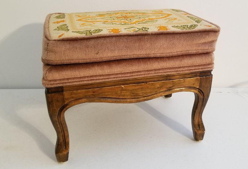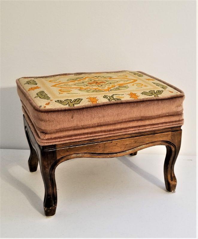 Lot #51  Vintage Fruitwood Needlepoint Stool