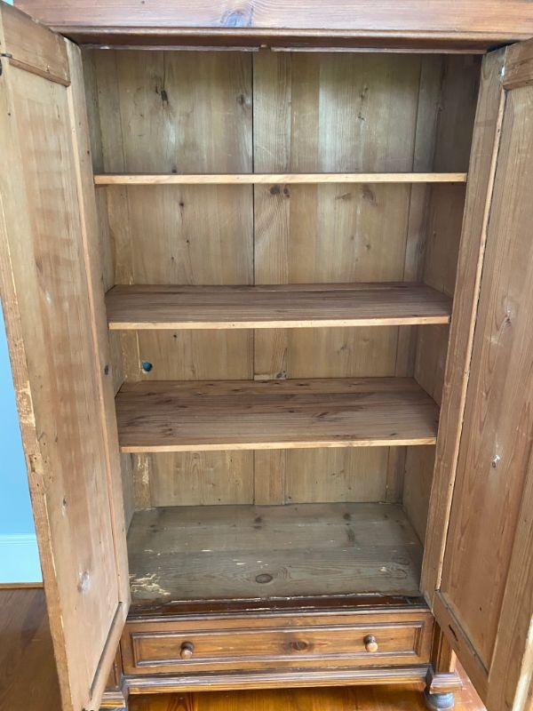 Vintage Pine Cabinet with Shelves measures 5'9" tall x 3'3" wide x 19" deep