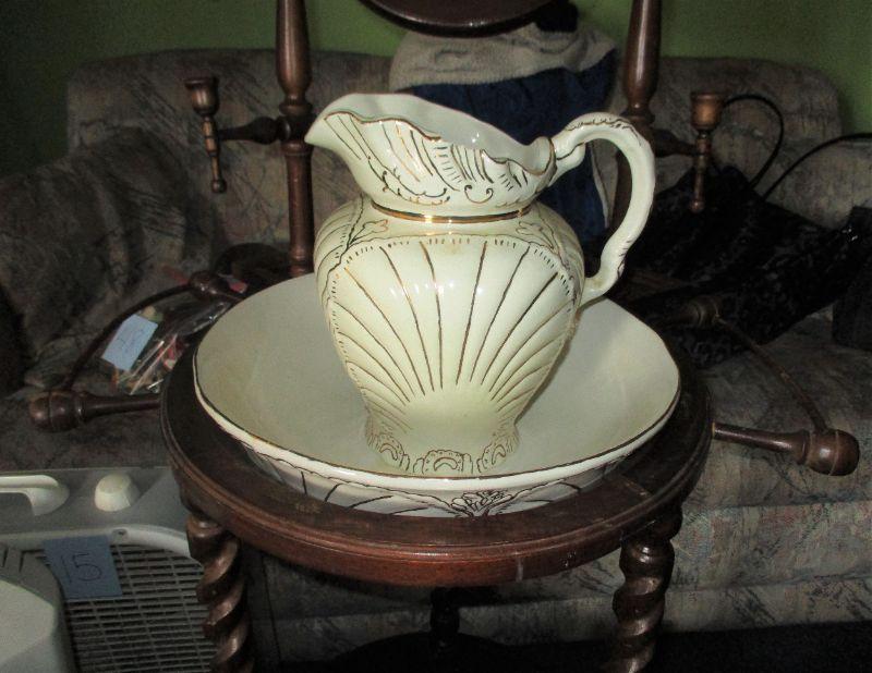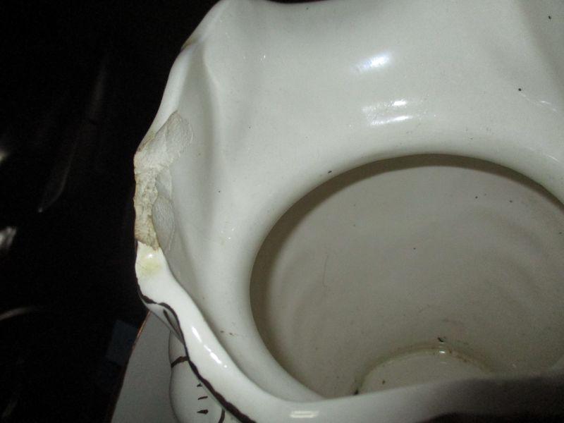 UPDATE: After the auction was posted, we found the pitcher that goes with the basin. Please see the additional pictures. There is a chip on the inside of the pitcher.