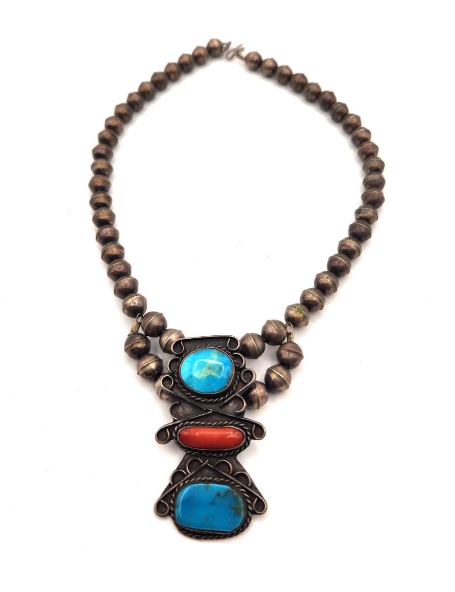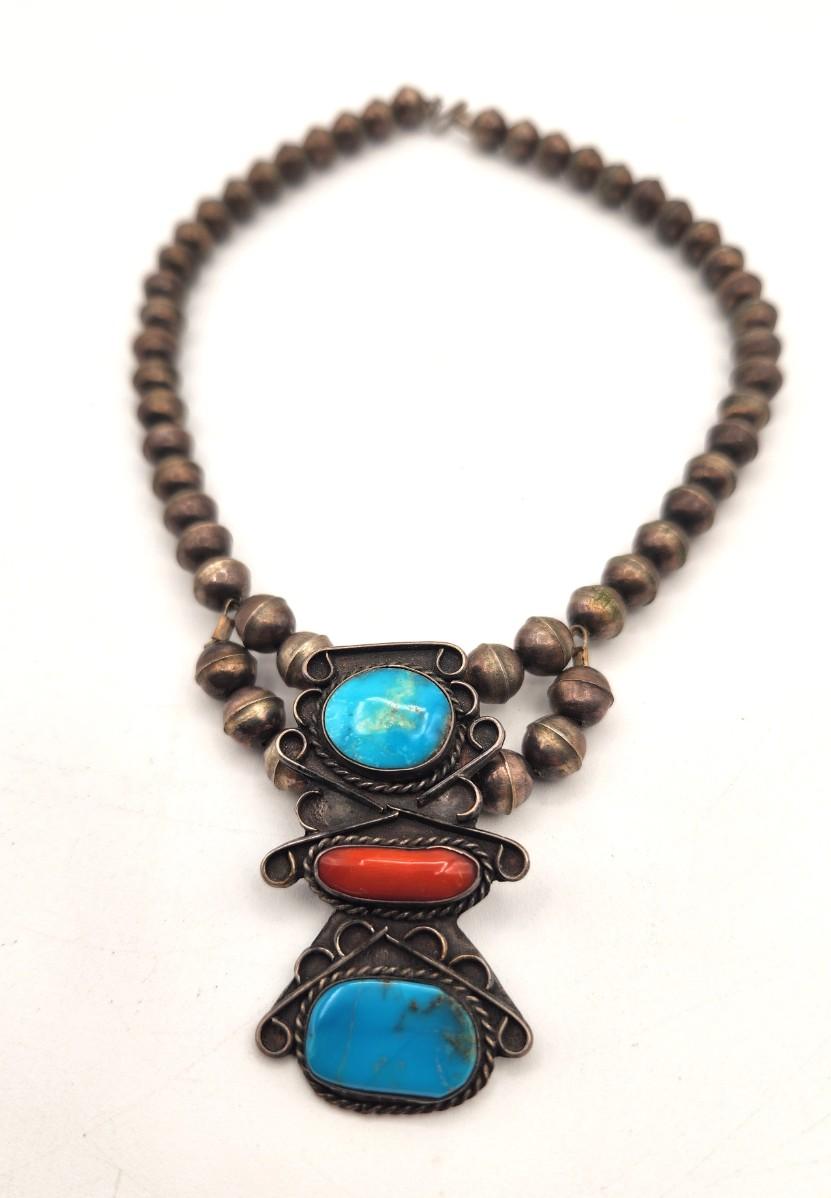 Lot #51 Vintage Southwest Style (likely Native American Necklace - Turquoise/Carnelian