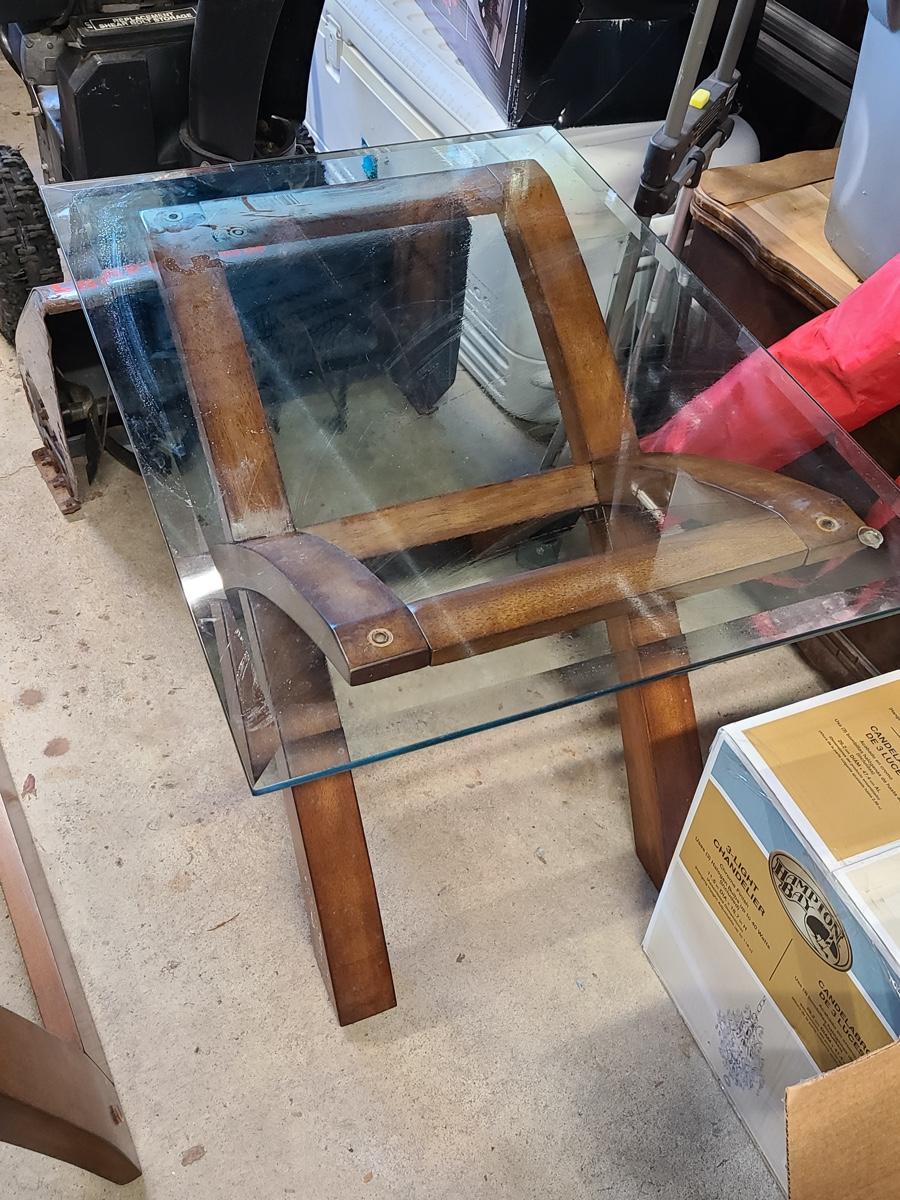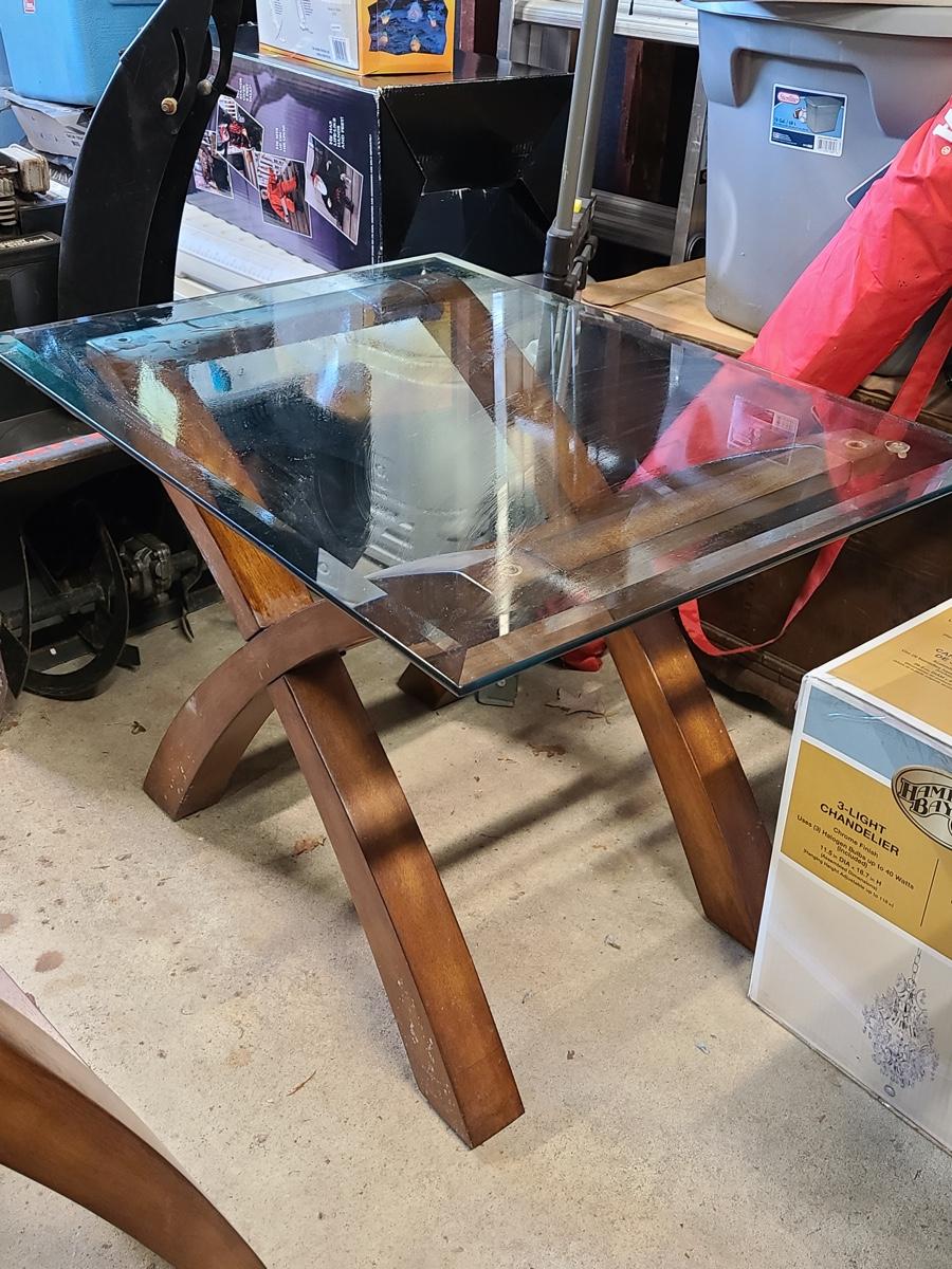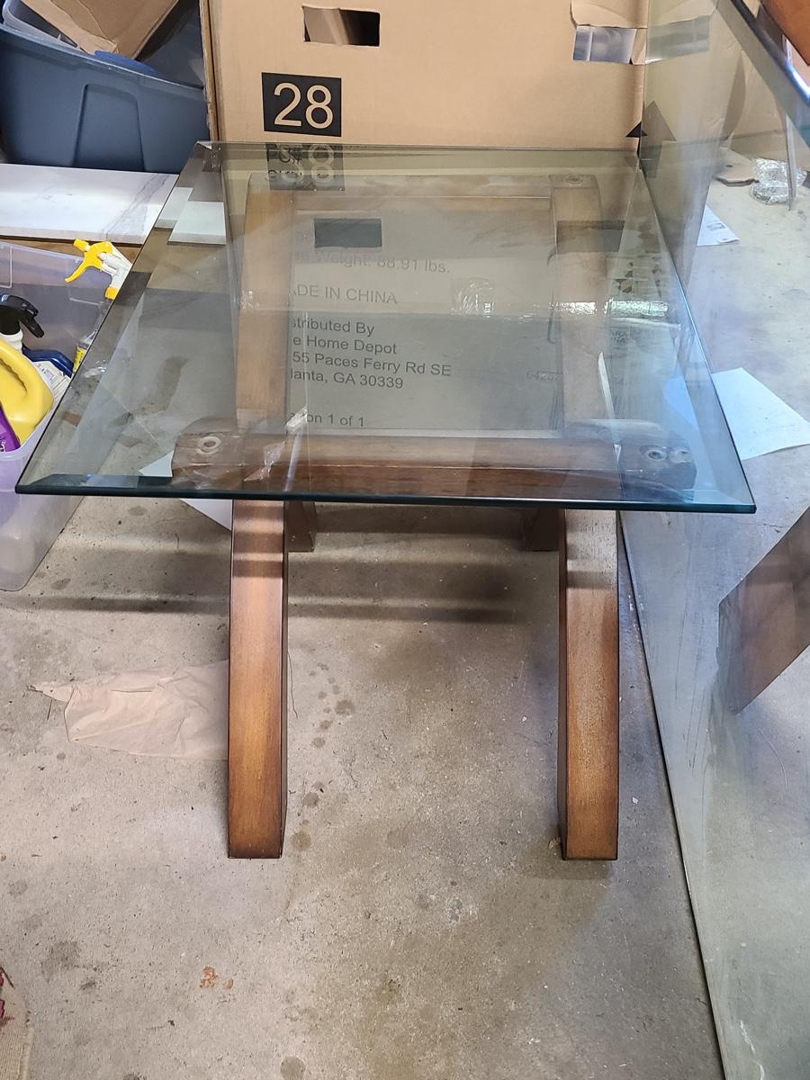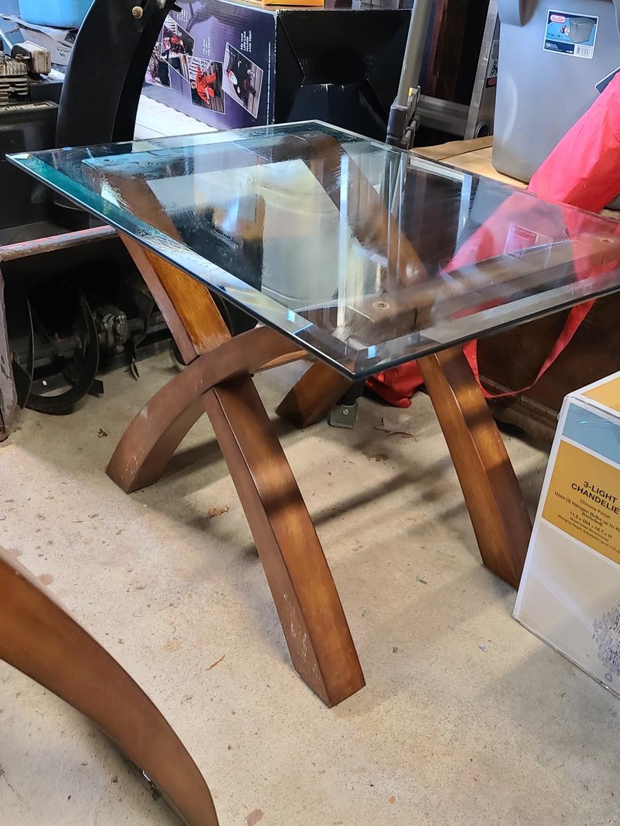 This lovely set is glass topped and comes with a dining table and two endtables. These have been stored in the garage and may need a light cleaning. Nice lines, and unique design! Please see all pictures. The pictures show condition, measurements if taken, and what is included in the lot. Due to the large amount that we photograph and the time frame, we are not always able to take measurements. All items unless noted, are pre-owned and have been used. If you purchased furniture, you must bring help. We do not allow one person to carry large furniture out on their own. Bring help, tools and a truck for the safety of our client’s homes, and your personal safety. Company policy. Thank you