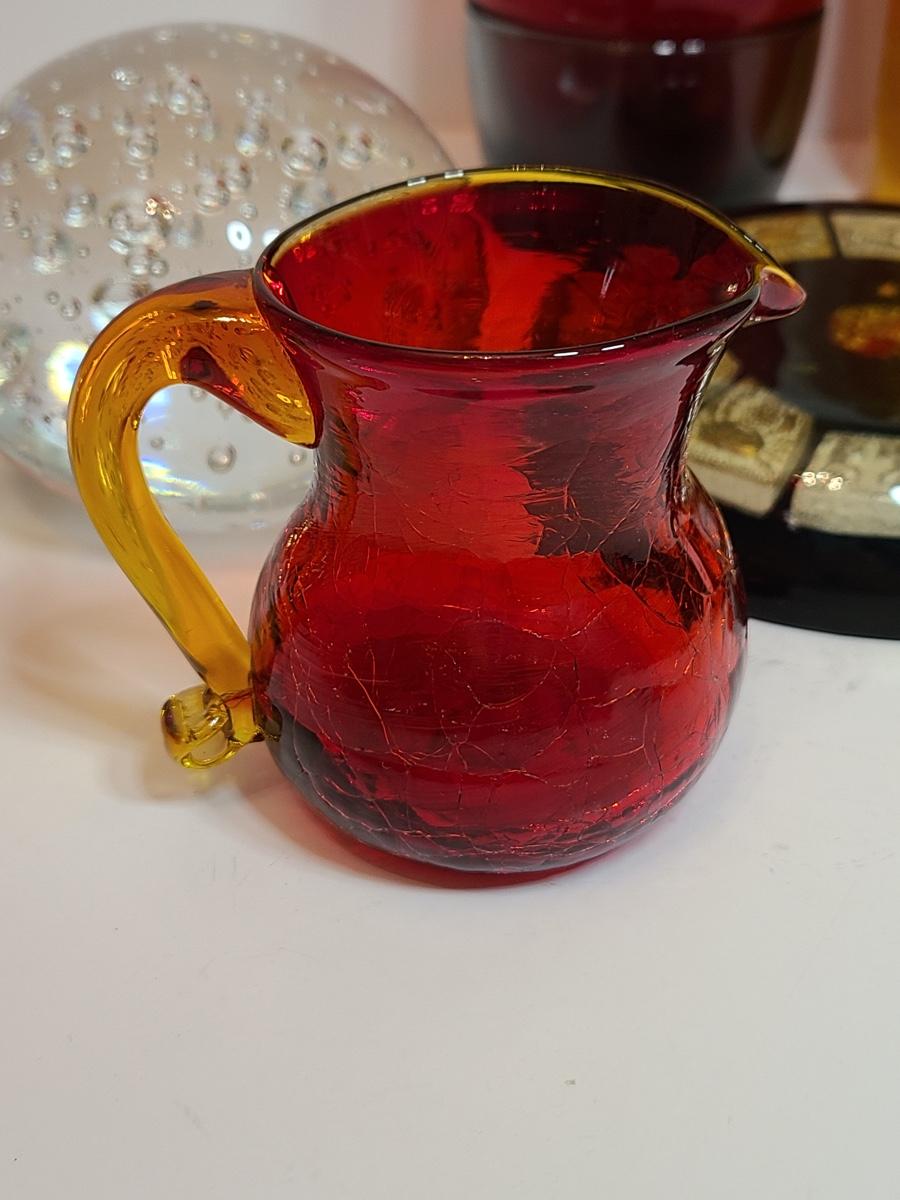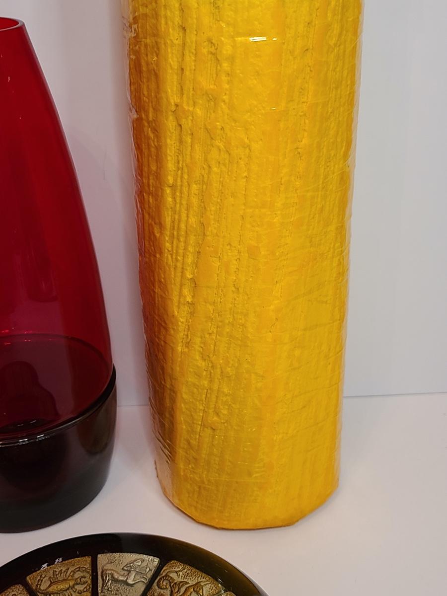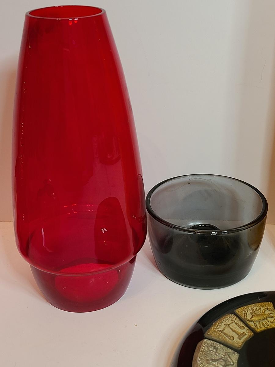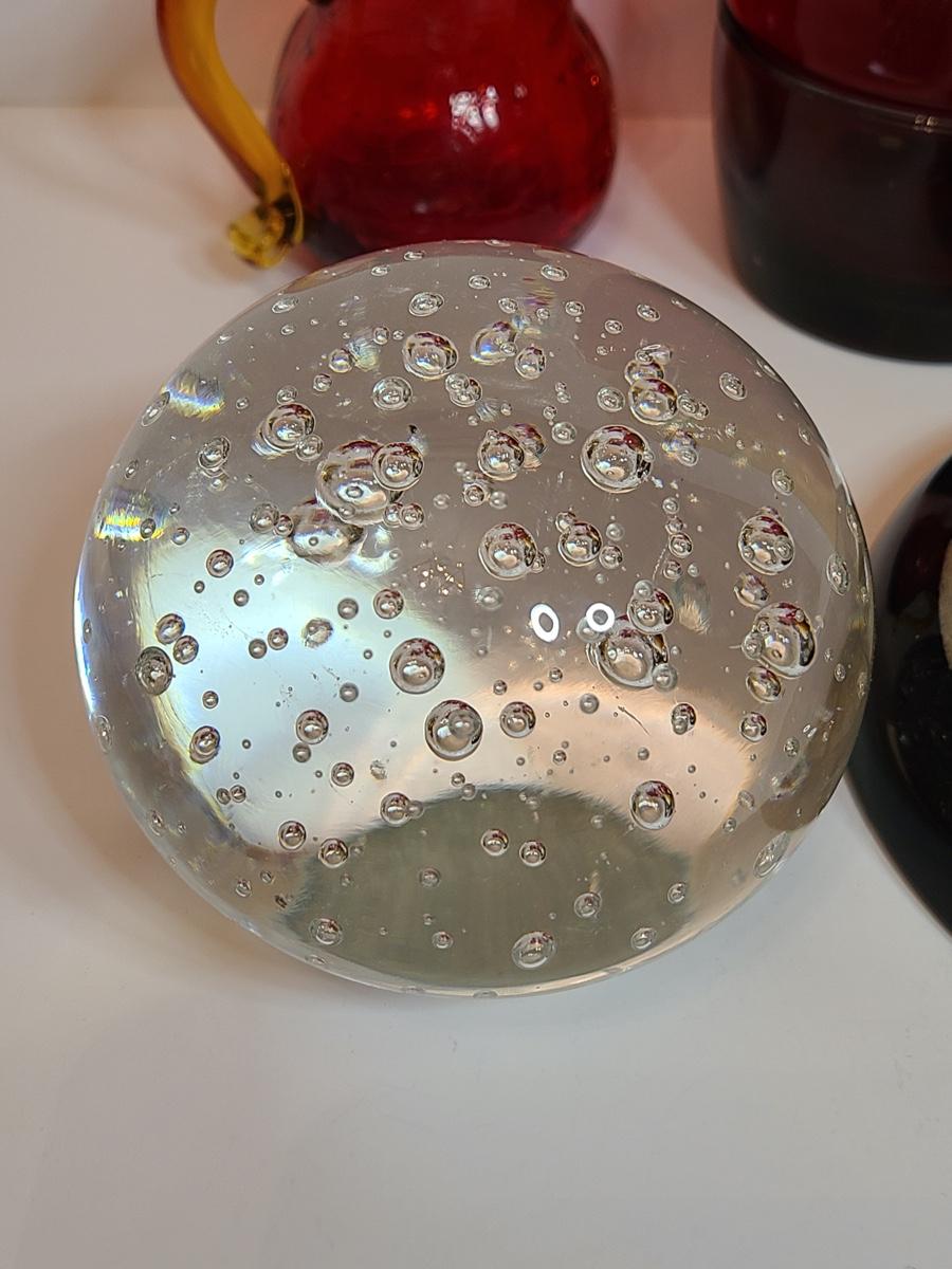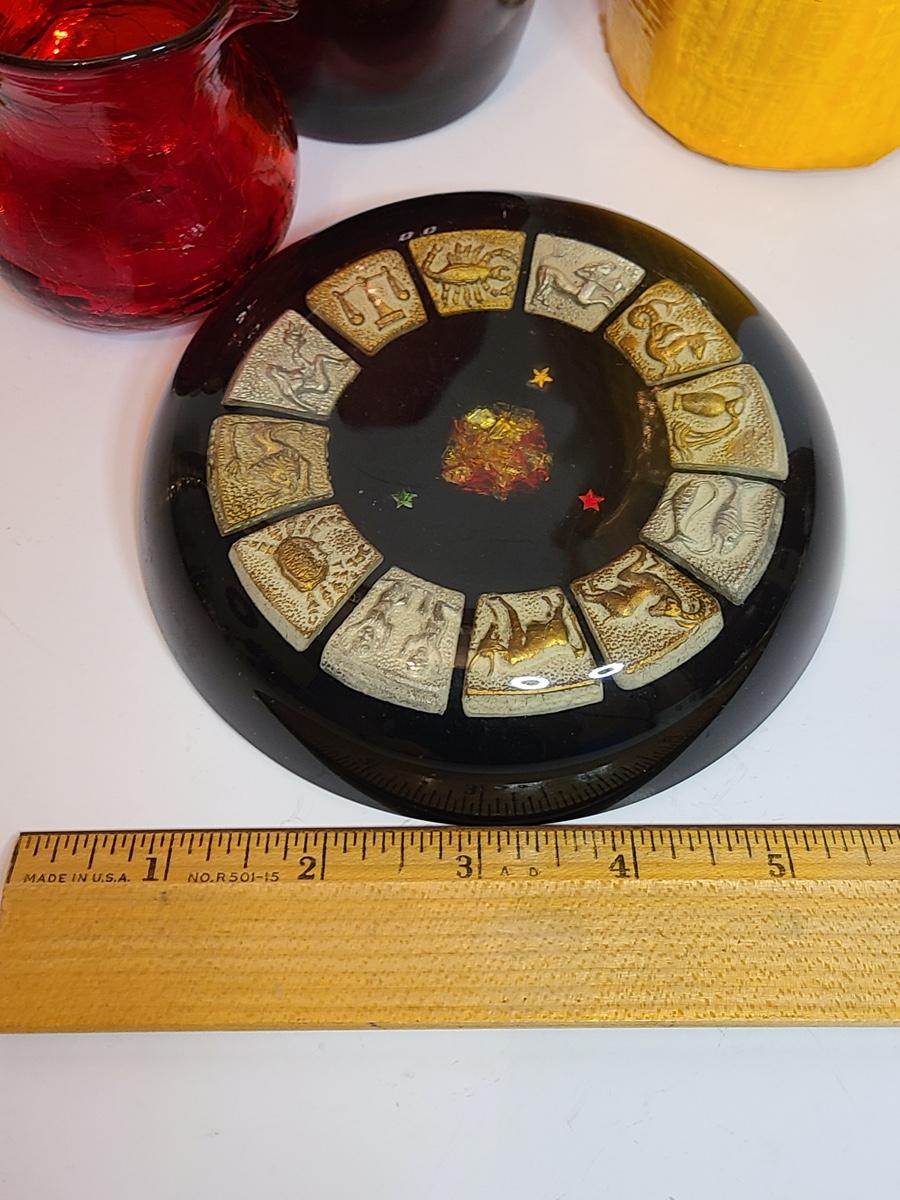 Vintage MCM home decor including a red glass candle globe with black base, a bubble clear paperweight, a zodiac resin keepsake, and large orange funky pillar candle! Please see all pictures as they are the best representation of the items. The pictures show condition, measurements if taken, and what is included in the lot. Due to the large amount that we photograph and the time frame, we are not always able to take measurements. All items unless noted, are pre-owned and have been used. If you purchased furniture, you must bring help. We do not allow one person to carry large furniture out on their own. Bring help, tools and a truck for the safety of our client’s homes, and your personal safety. Company policy. Thank you.