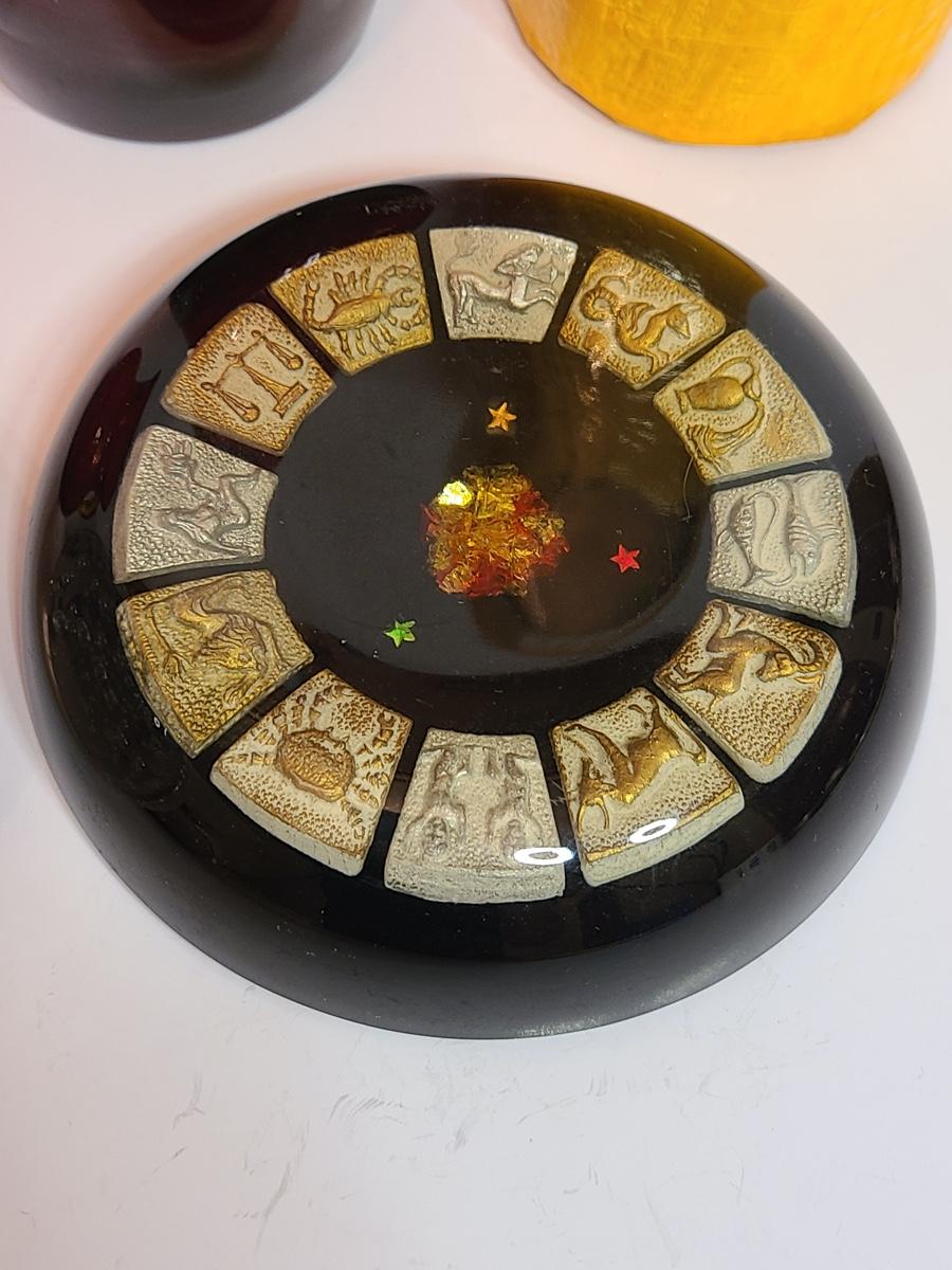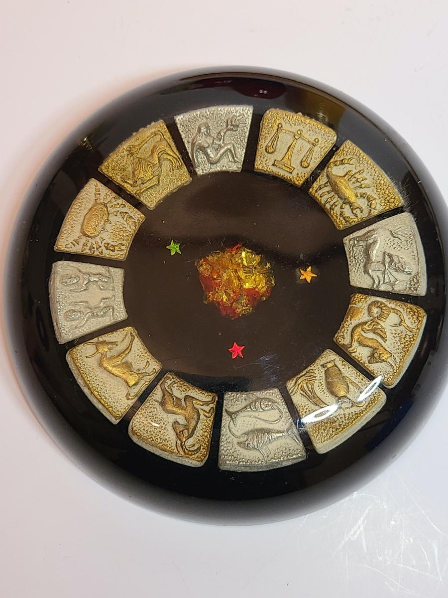 Lot 510: MCM/Vintage Bubble Paperweight, Zodiac Resin, Orange Candle and More.