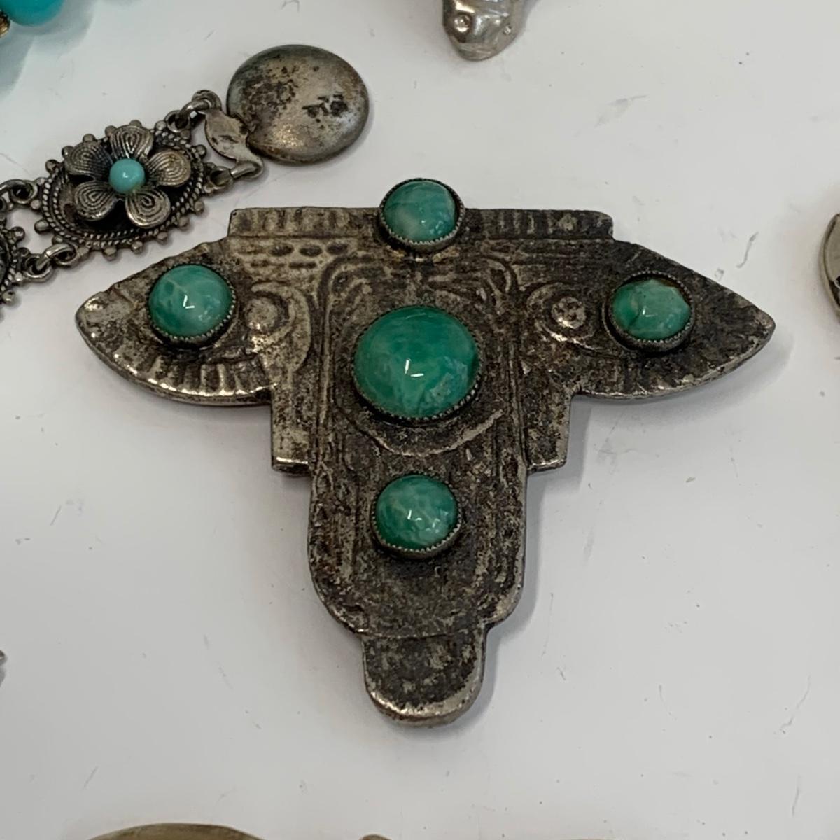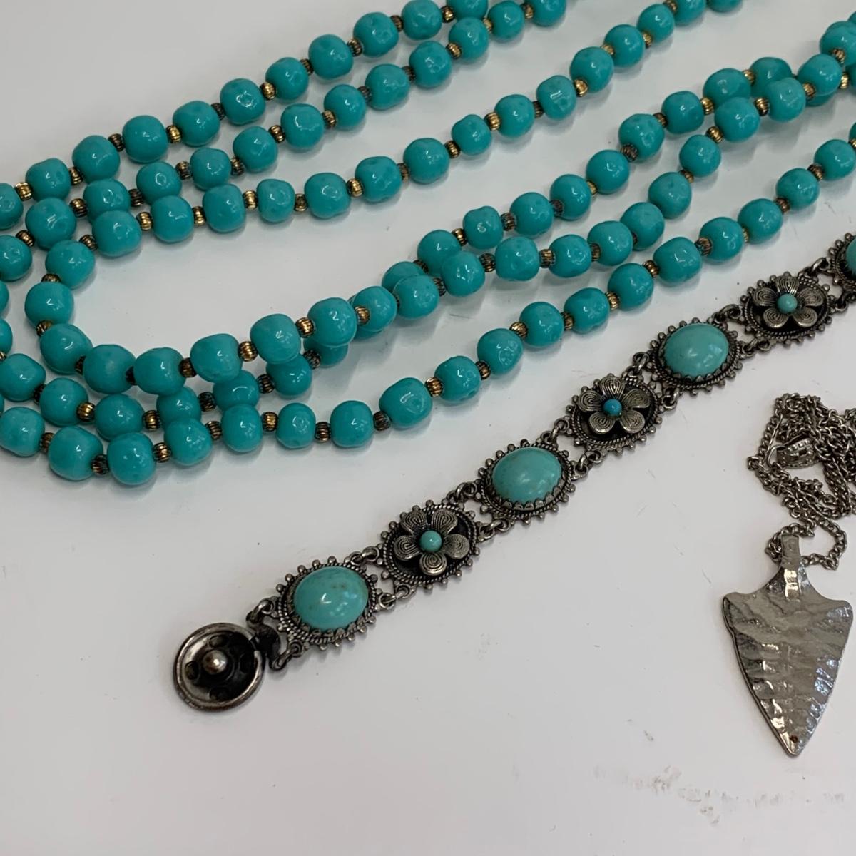 Lot 510: Turquoise Beaded Necklace, Bracelet, Vintage Metal Tin & More