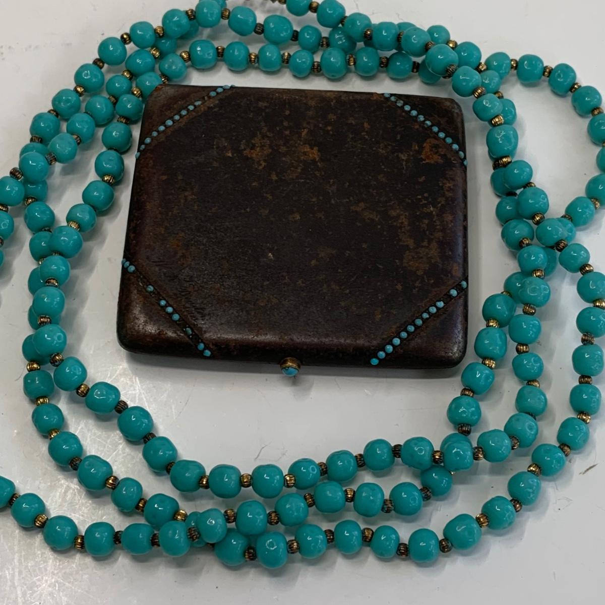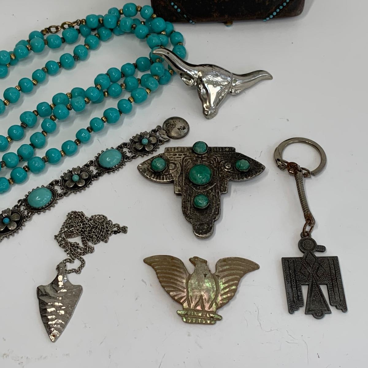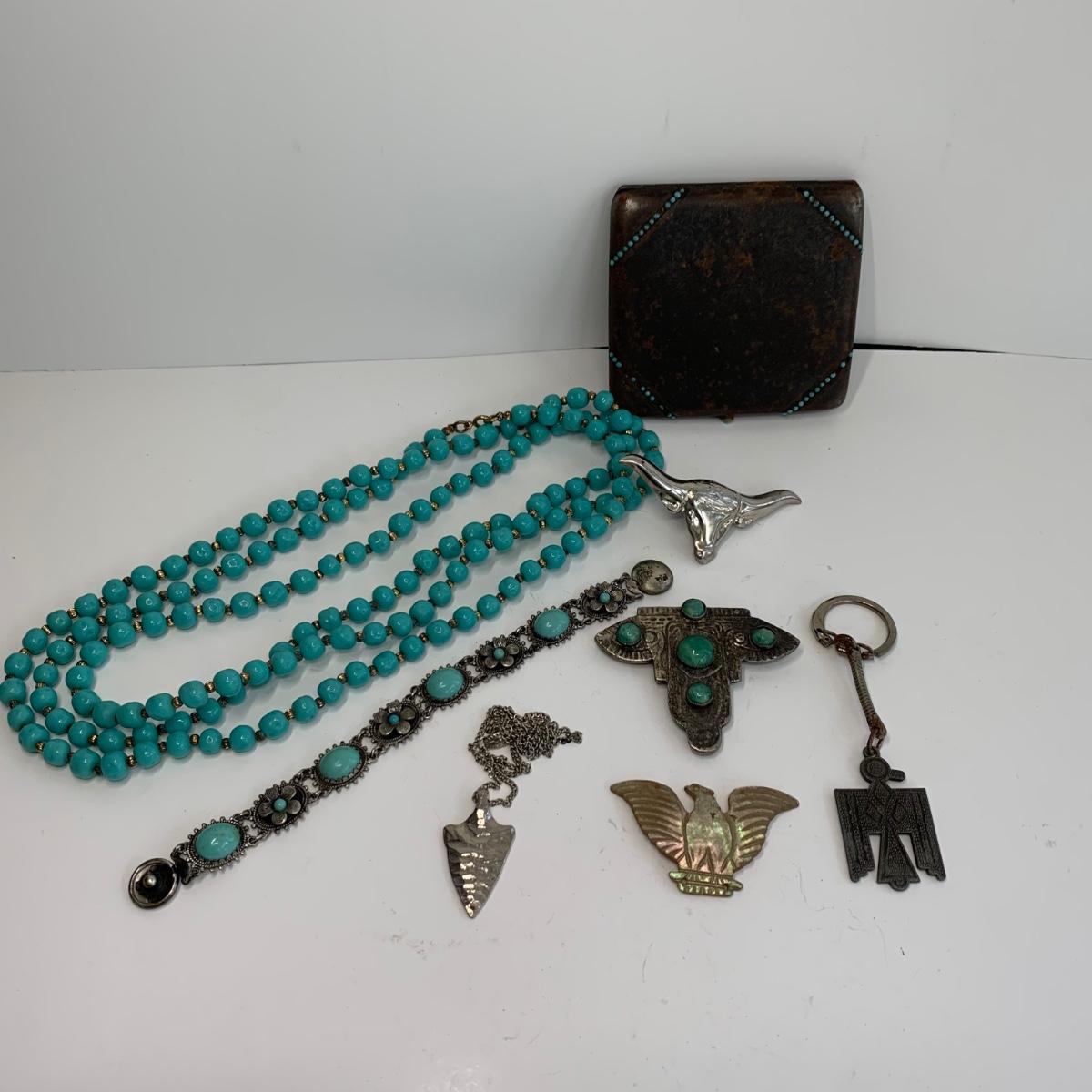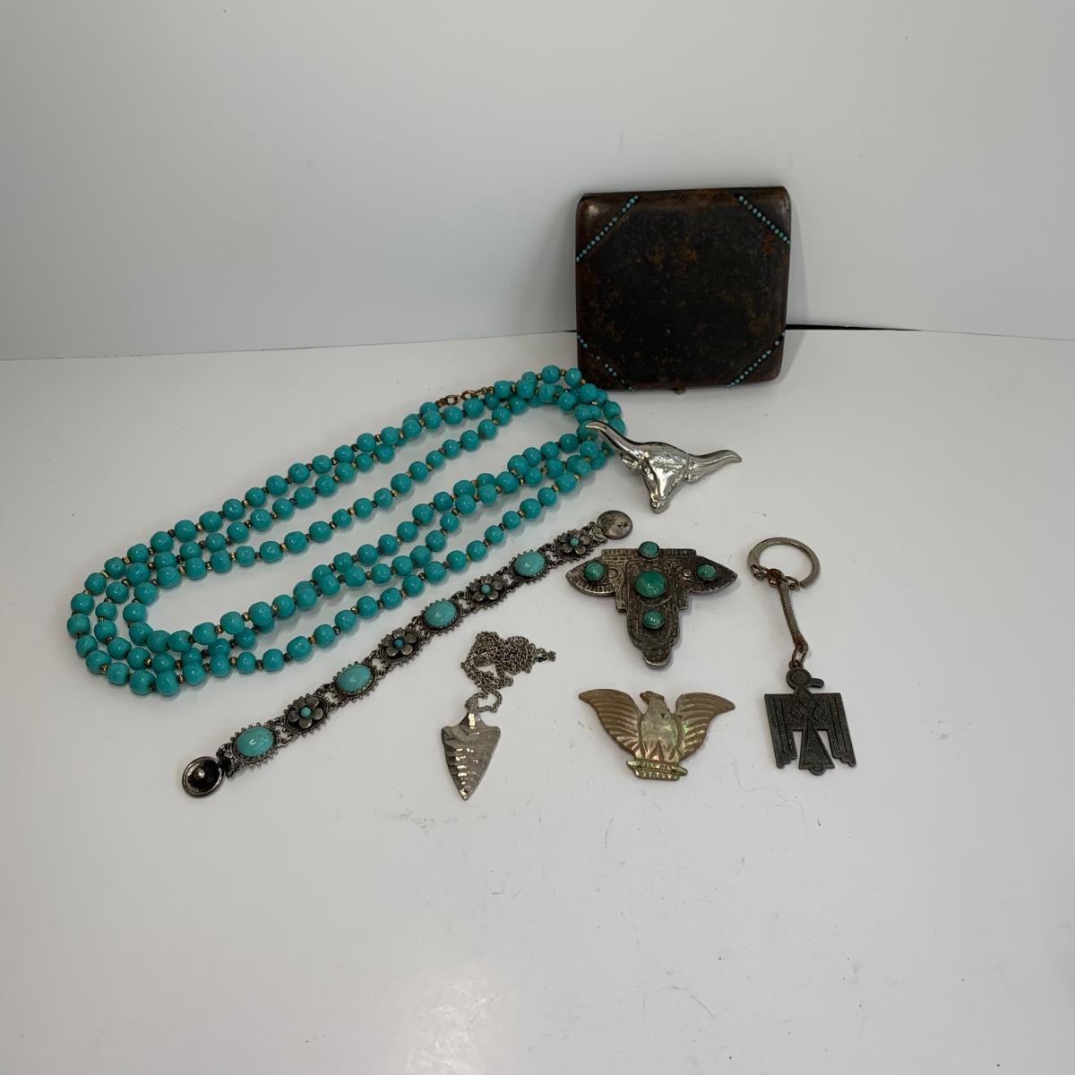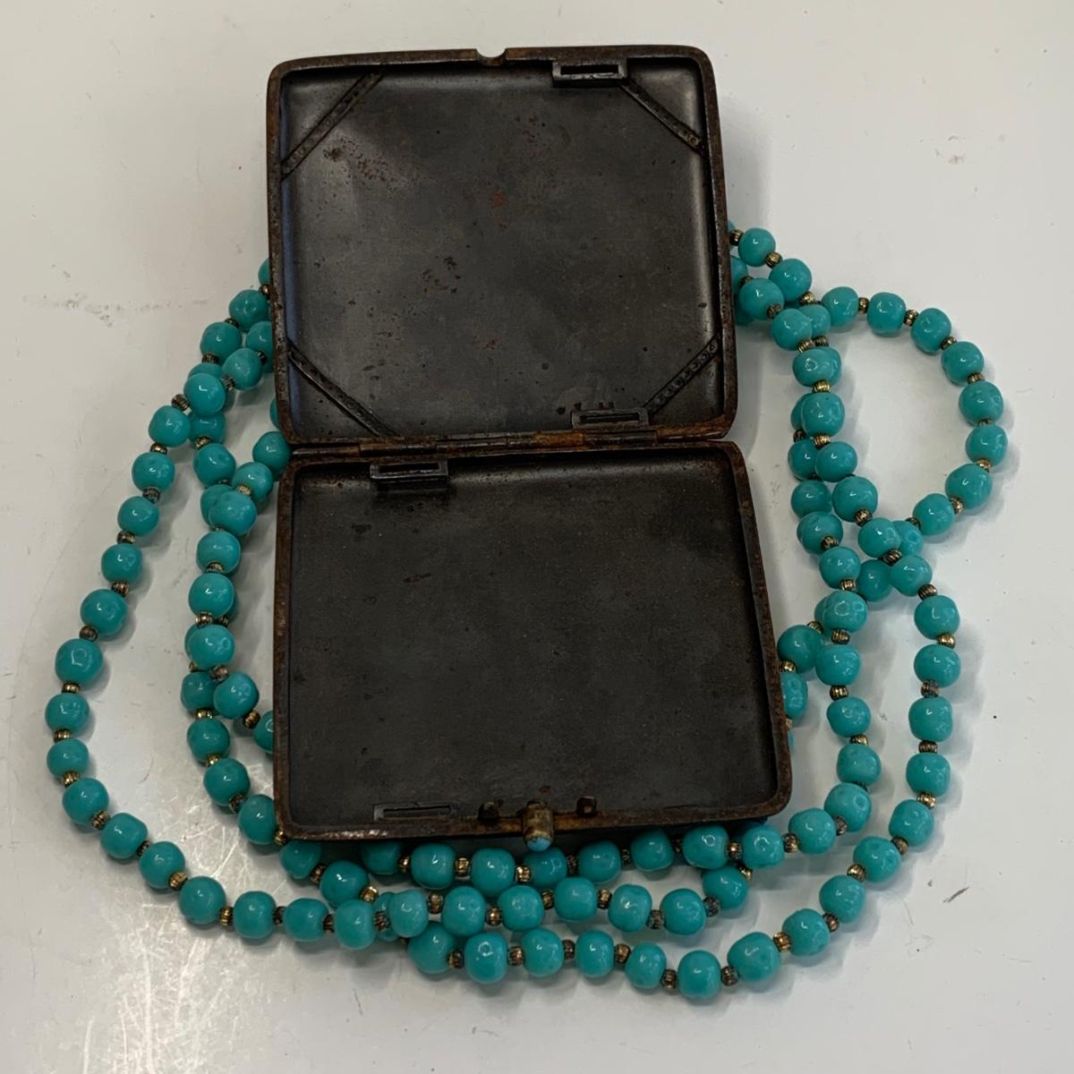 Lot  510: Turquoise Beaded Necklace, Bracelet, Vintage Metal Tin  & More