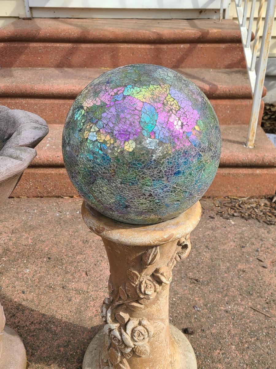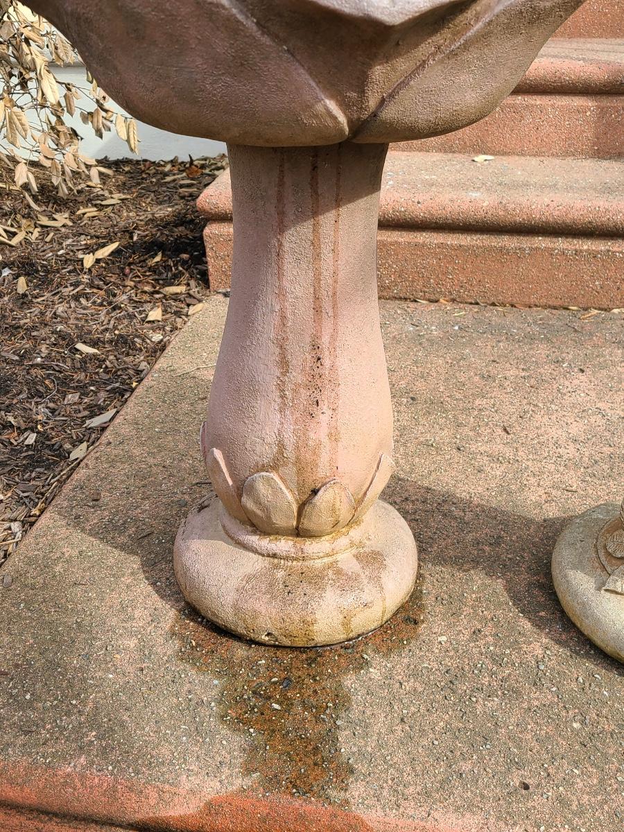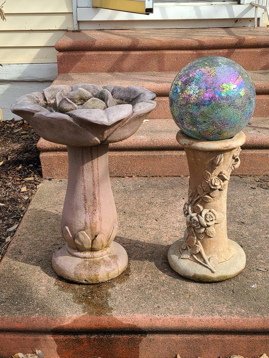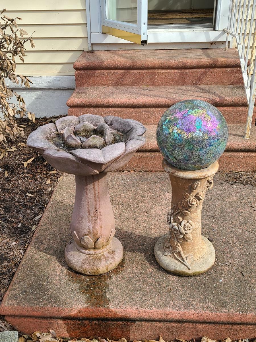 Resin Flower Bird Bath, and cement flower column stand with orb. Orb has damaged. Please see all pictures as they are the best representation of the items. The pictures show condition, measurements if taken, and what is included in the lot. Due to the large amount that we photograph and the time frame, we are not always able to take measurements. All items unless noted, are pre-owned and have been used. If you purchased furniture, you must bring help. We do not allow one person to carry large furniture out on their own. Bring help, tools and a truck for the safety of our client’s homes, and your personal safety. Any damages that result to the property including walls, and floors due to moving of the furniture will be charged to the buyer. Company policy. Thank you.