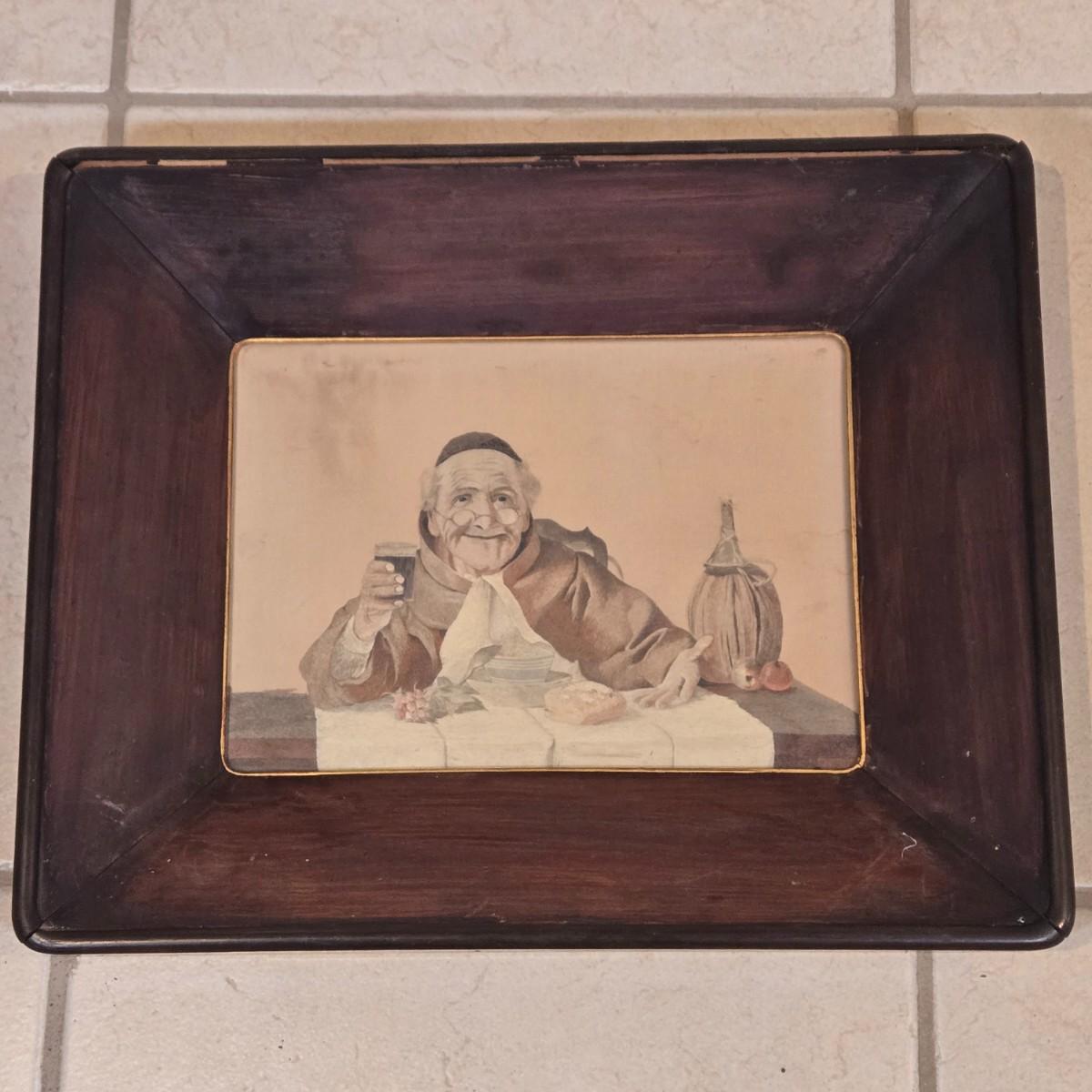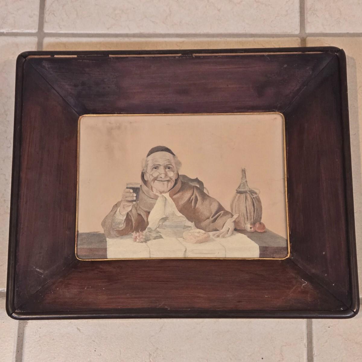 LOT 510B: Monk with a Glass of Wine aka The Drunk Monk Framed Artwork