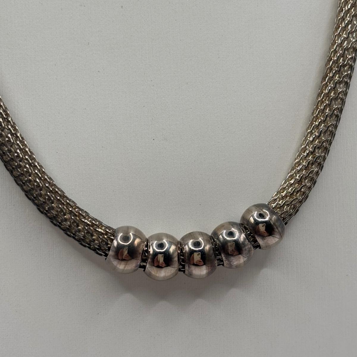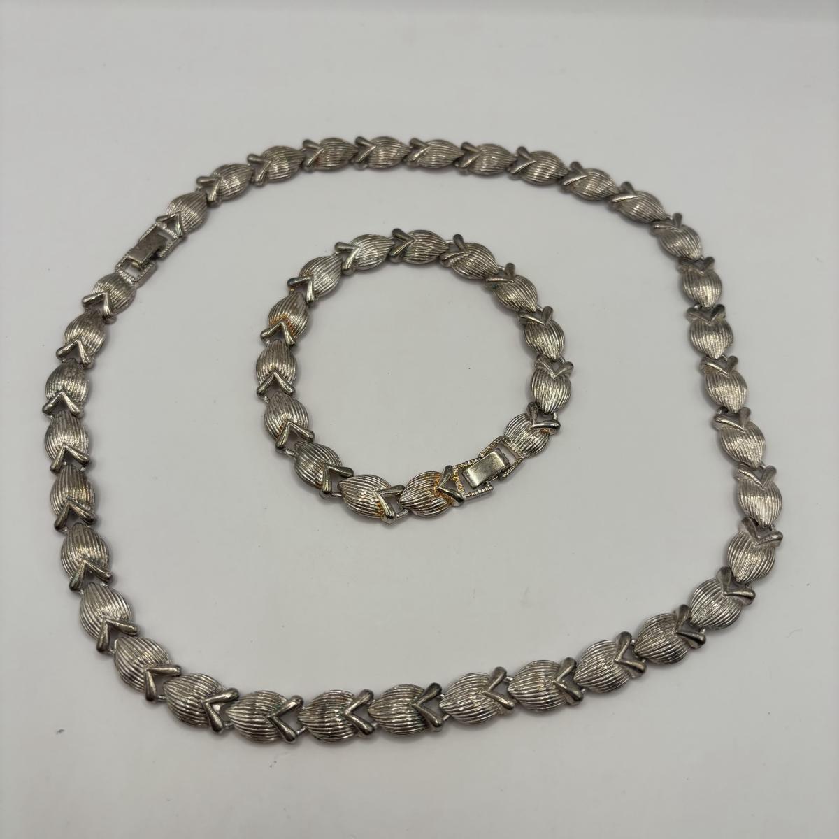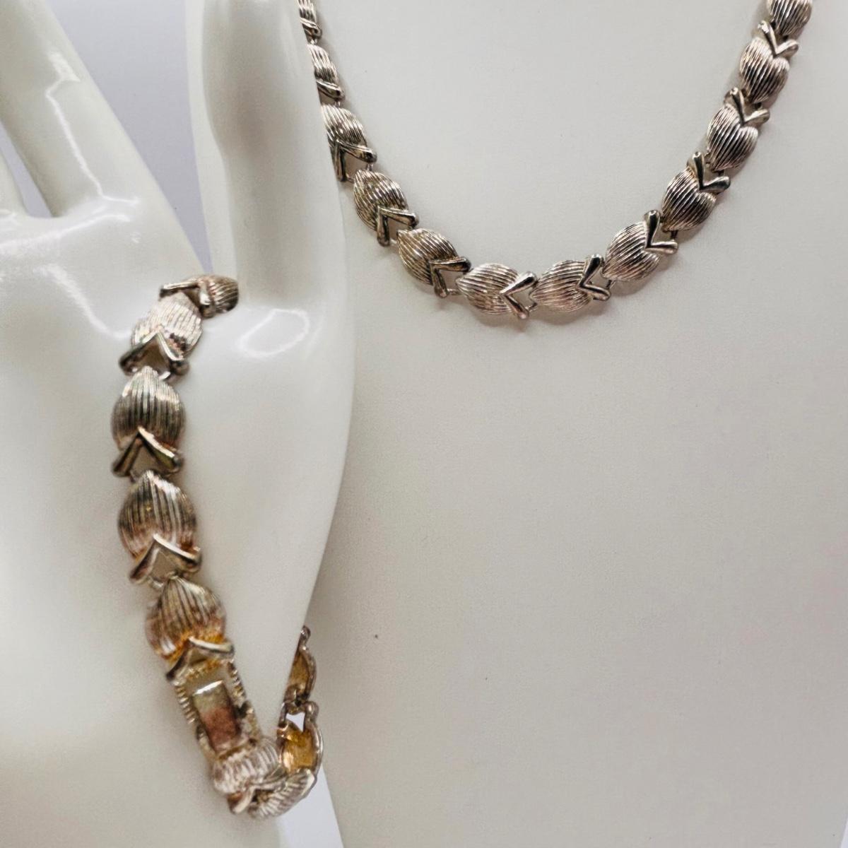 Lot 510J: Silvertone Teardrop Polished Stone Necklace w/Earrings, & Silvertone Necklace w/Bracelet & More