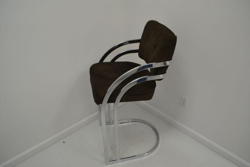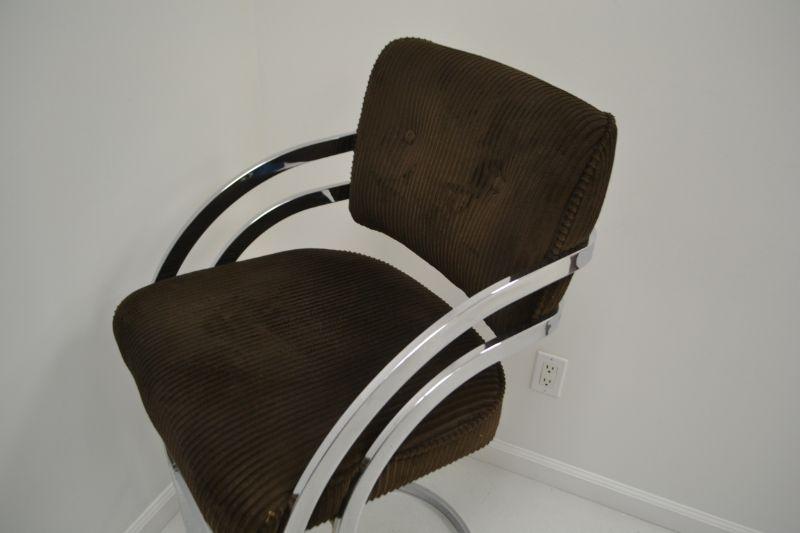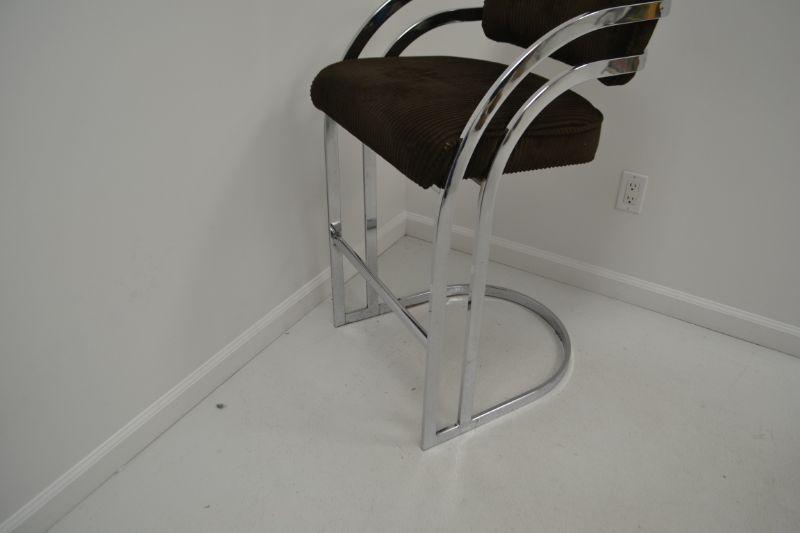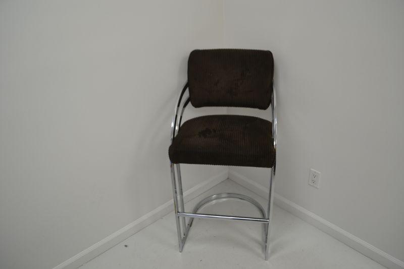 LOT 511 MCM CHROME AND BROWN CORDUROY STOOL