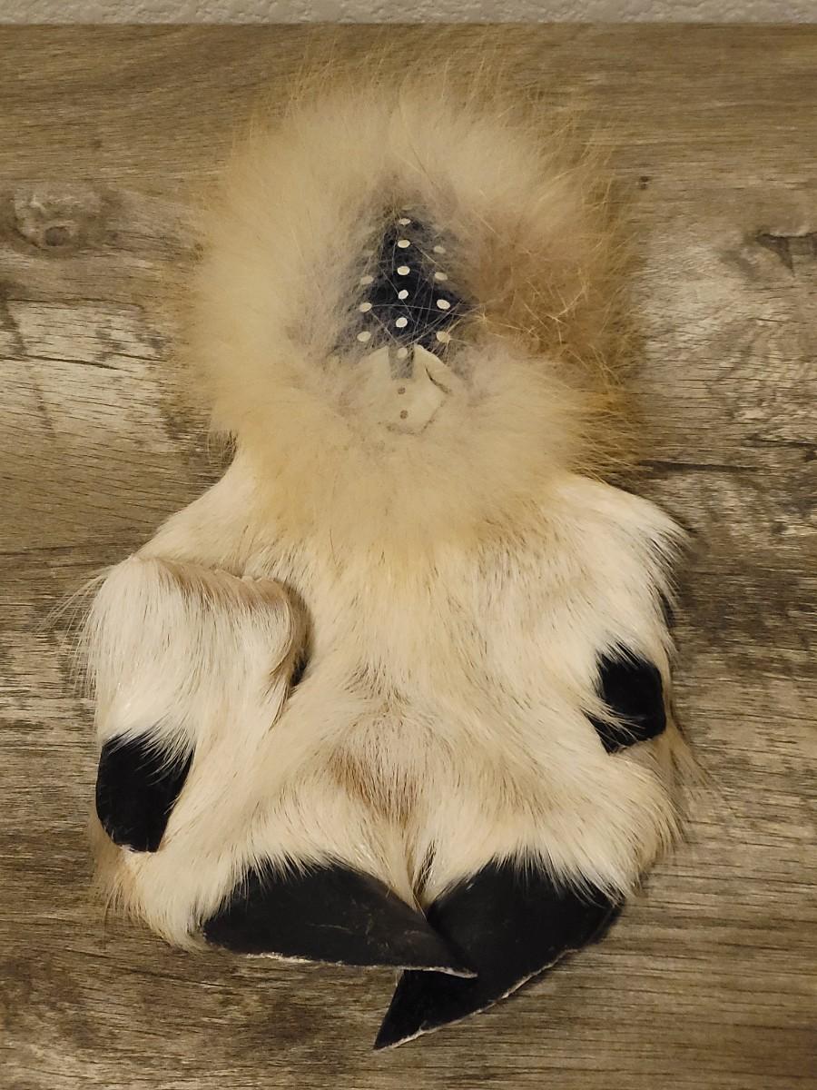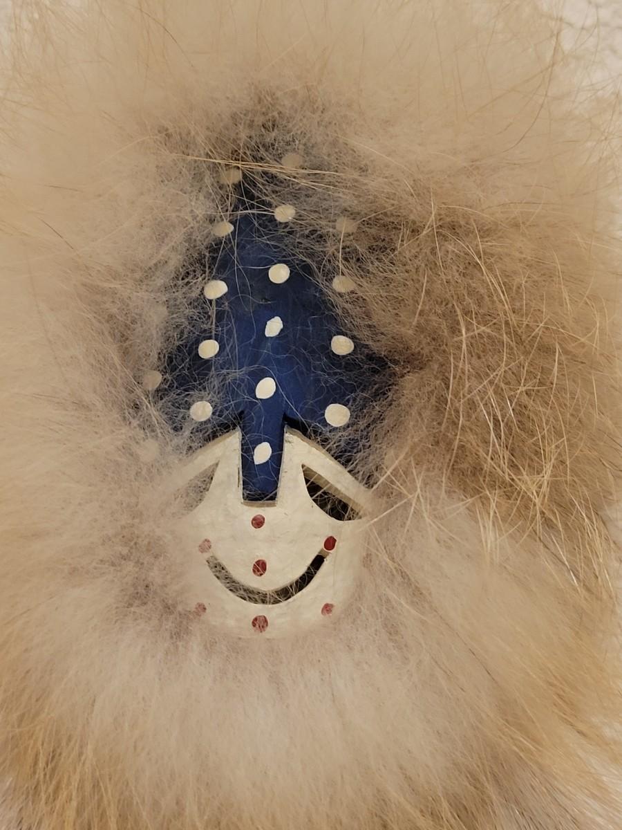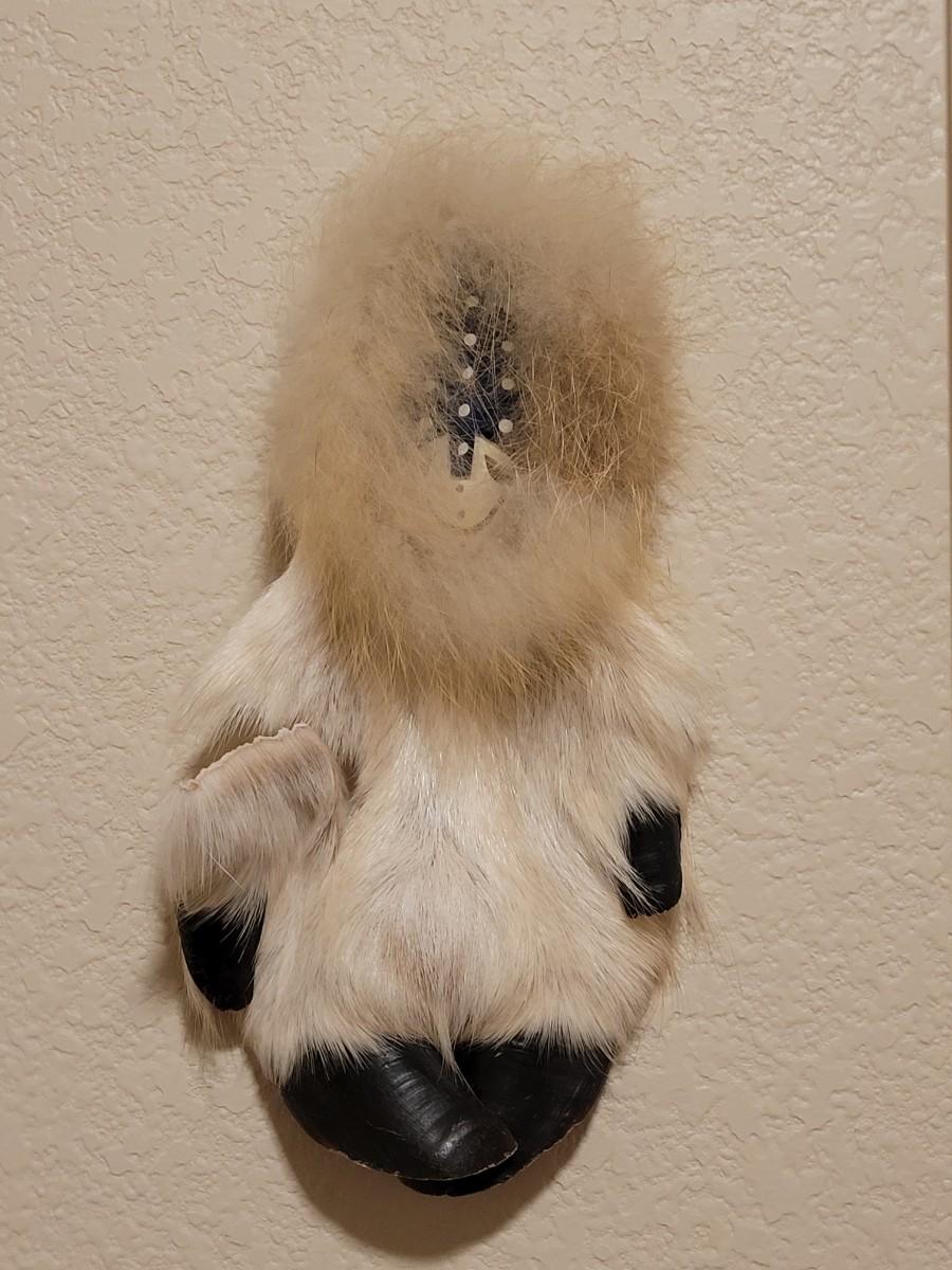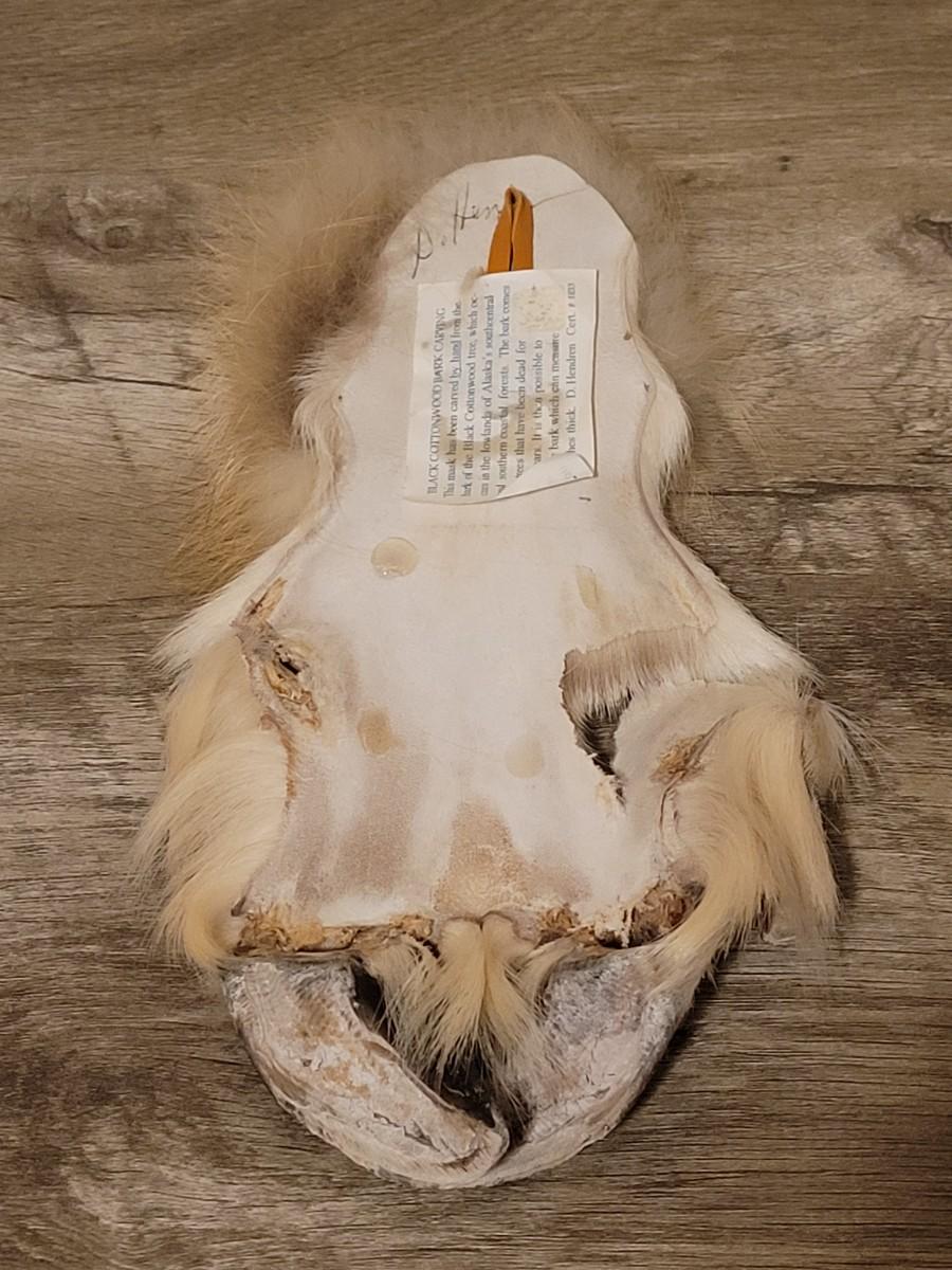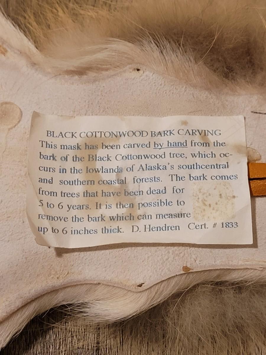 Lot 511: Handcarved Alaskan Black Cottonwood Bark Carving by DAVE HENDREN with Reindeer & Other Real Fur