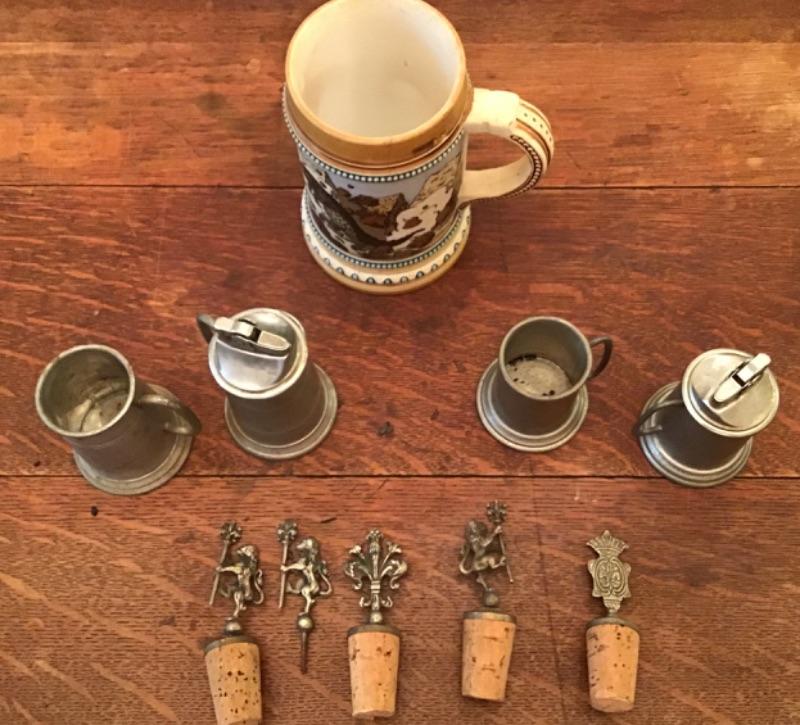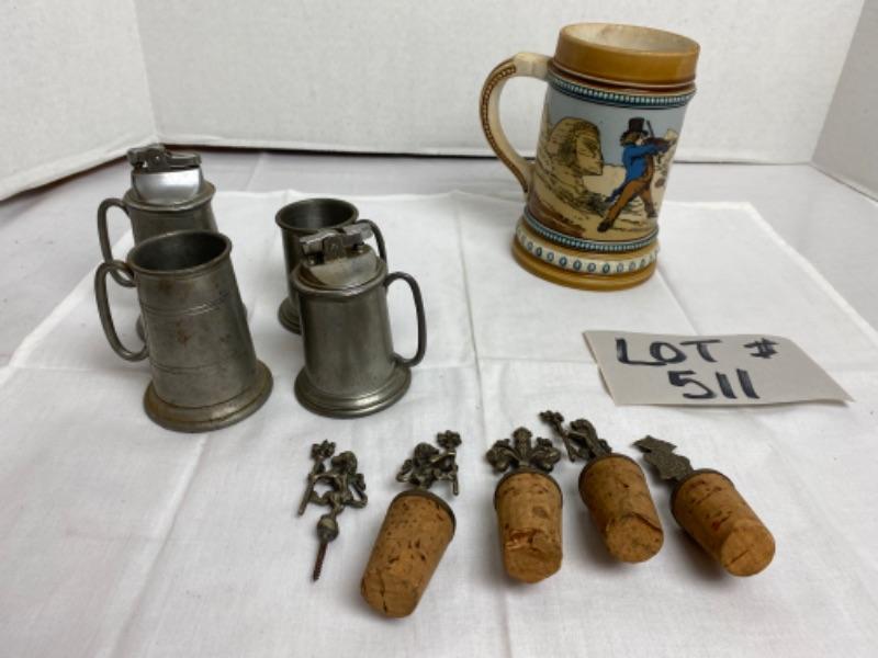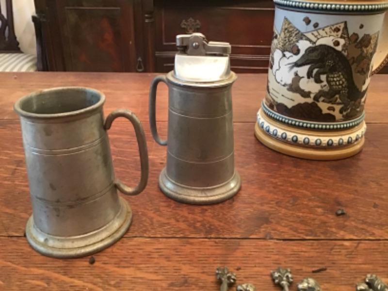 LOT # 511 Vintage Mettlach Beer Stein and Pewter Lot