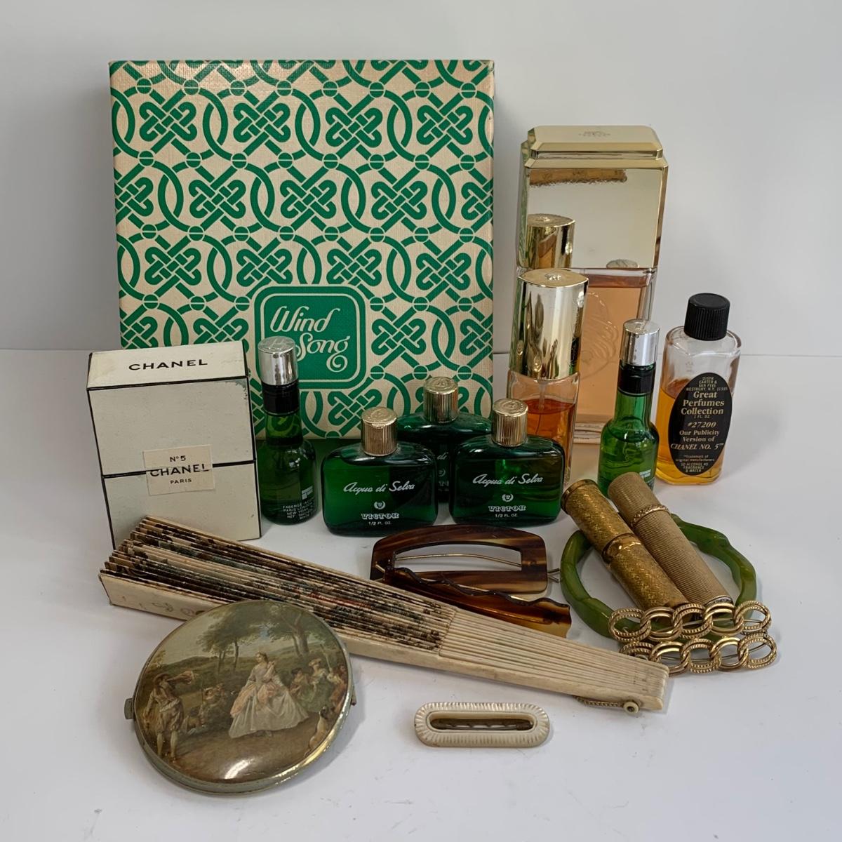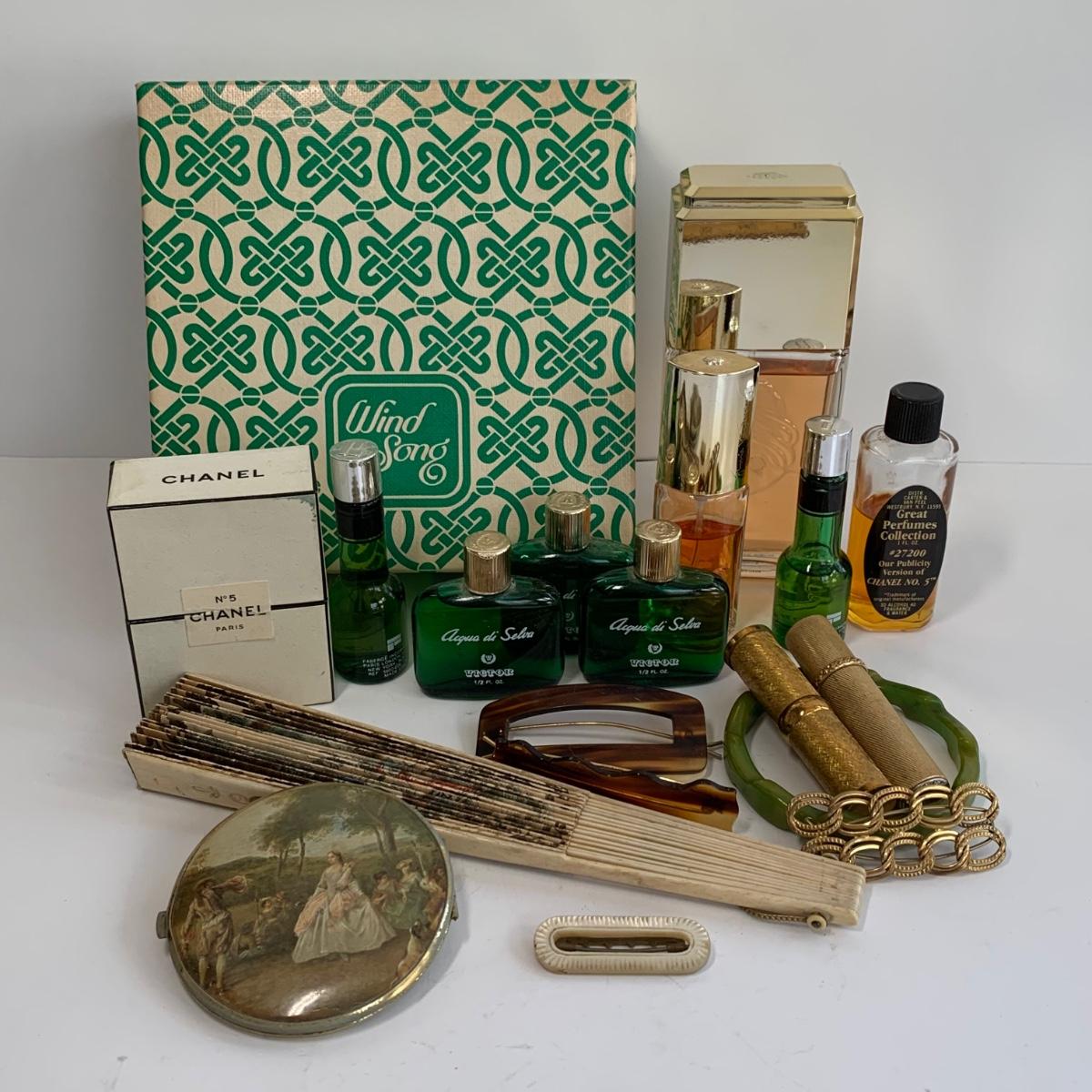 Lot 512: Vintage Collection of Perfumes, Cologne, Lip Stick Cases, Barrettes & More